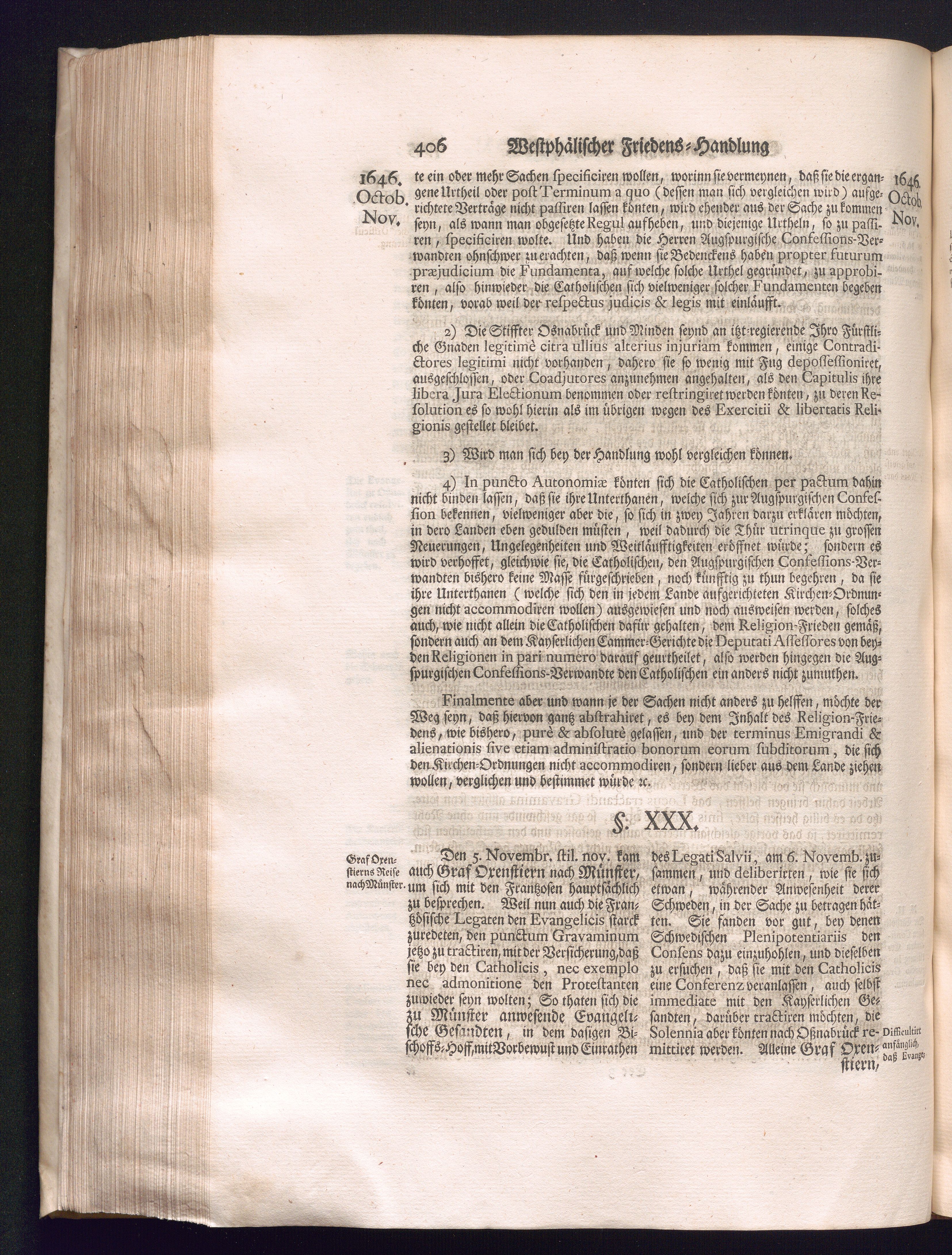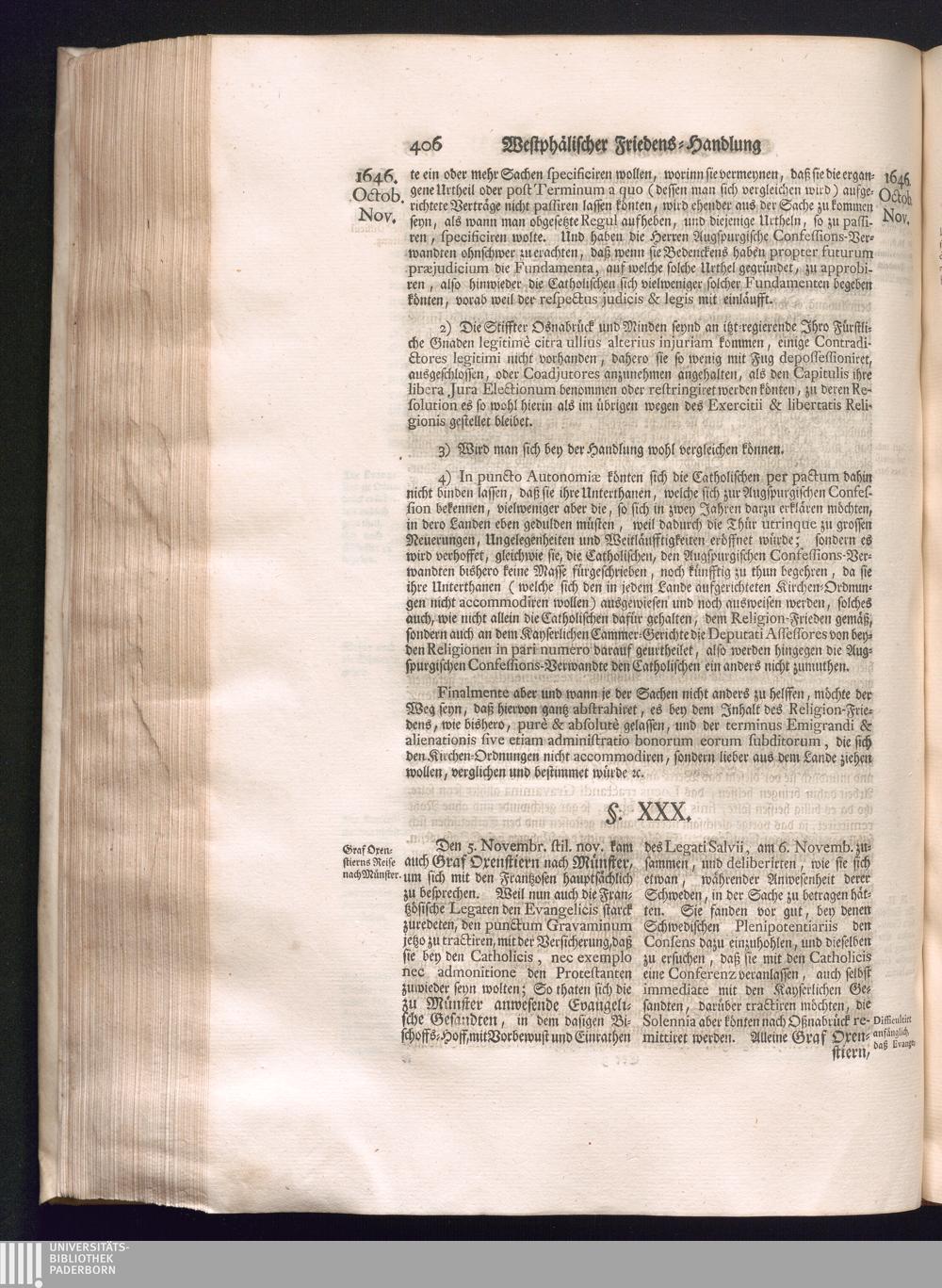 Dritter Theil (1735) Worinnen enthalten, was vom Monath April, biß zu Ende des Jahrs 1646. zwischen Jhro Römisch-Kayserlichen Majestät, dann den Beyden Cronen Franckreich und Schweden, ingleichen des Heiligen Römischen Reichs Chur Fürsten, Fürsten und Ständen, zu Oßnabrück und Münster gehandelt worden