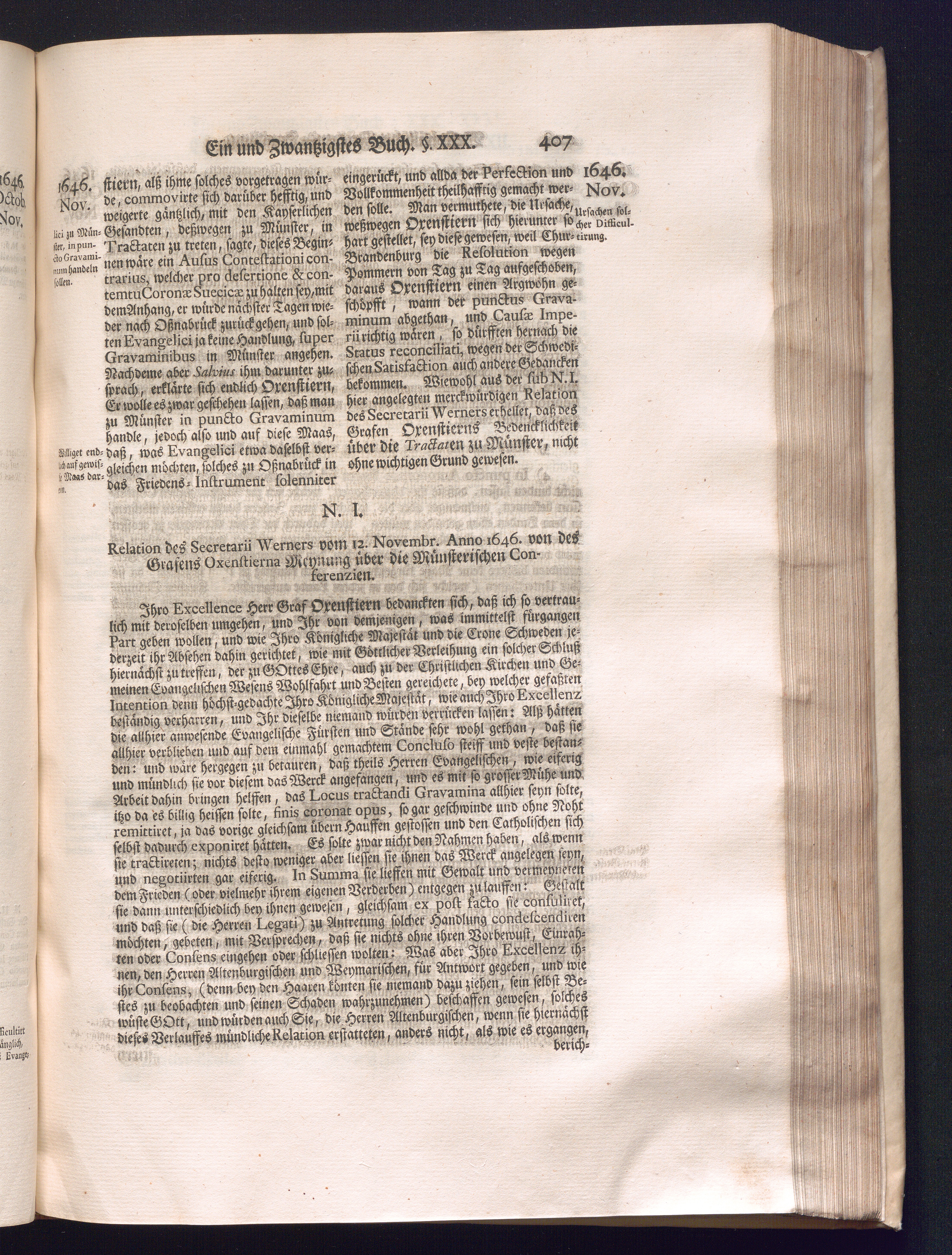 Dritter Theil (1735) Worinnen enthalten, was vom Monath April, biß zu Ende des Jahrs 1646. zwischen Jhro Römisch-Kayserlichen Majestät, dann den Beyden Cronen Franckreich und Schweden, ingleichen des Heiligen Römischen Reichs Chur Fürsten, Fürsten und Ständen, zu Oßnabrück und Münster gehandelt worden