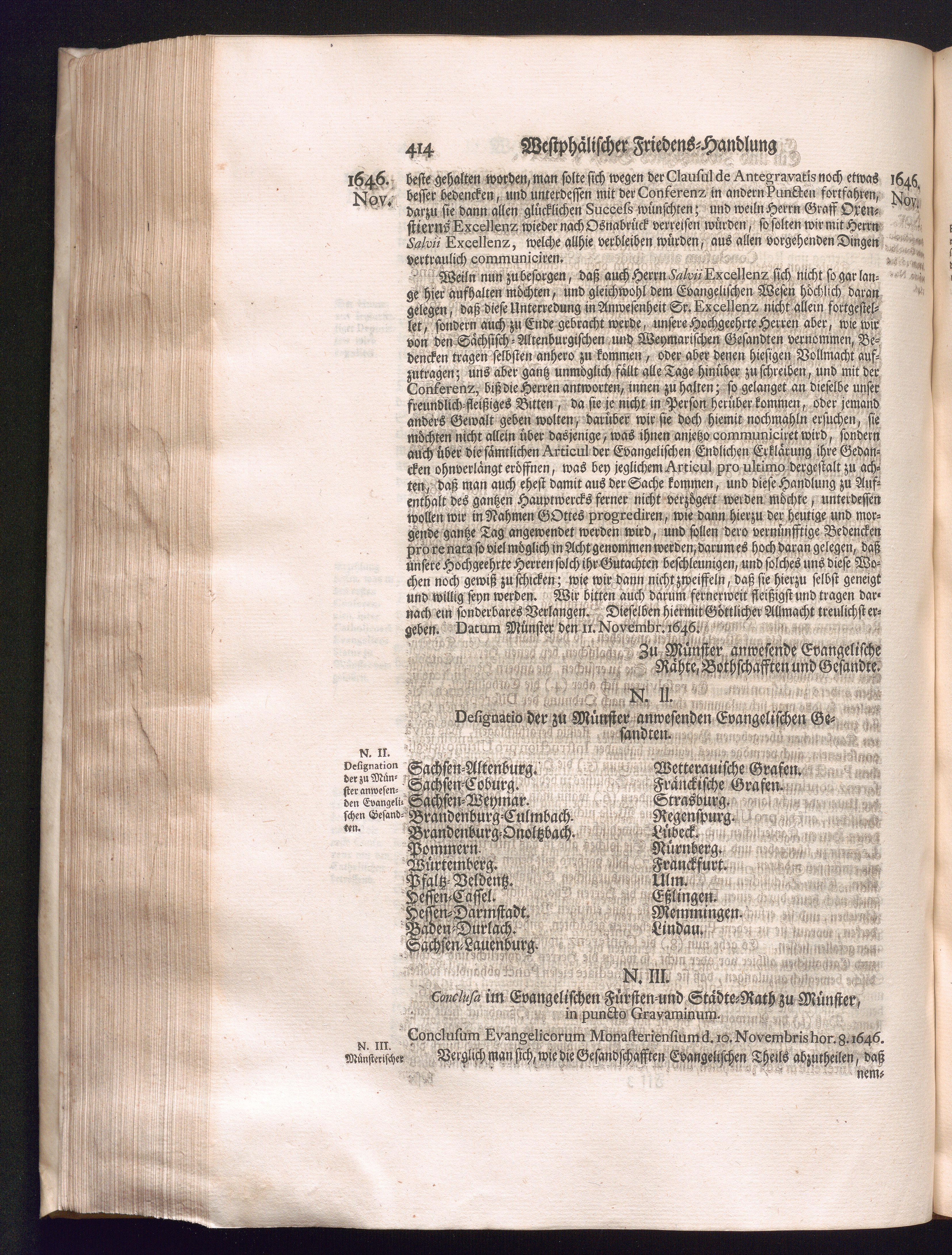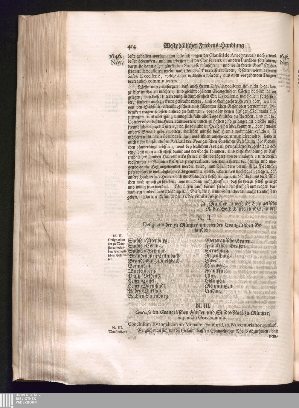 Dritter Theil (1735) Worinnen enthalten, was vom Monath April, biß zu Ende des Jahrs 1646. zwischen Jhro Römisch-Kayserlichen Majestät, dann den Beyden Cronen Franckreich und Schweden, ingleichen des Heiligen Römischen Reichs Chur Fürsten, Fürsten und Ständen, zu Oßnabrück und Münster gehandelt worden