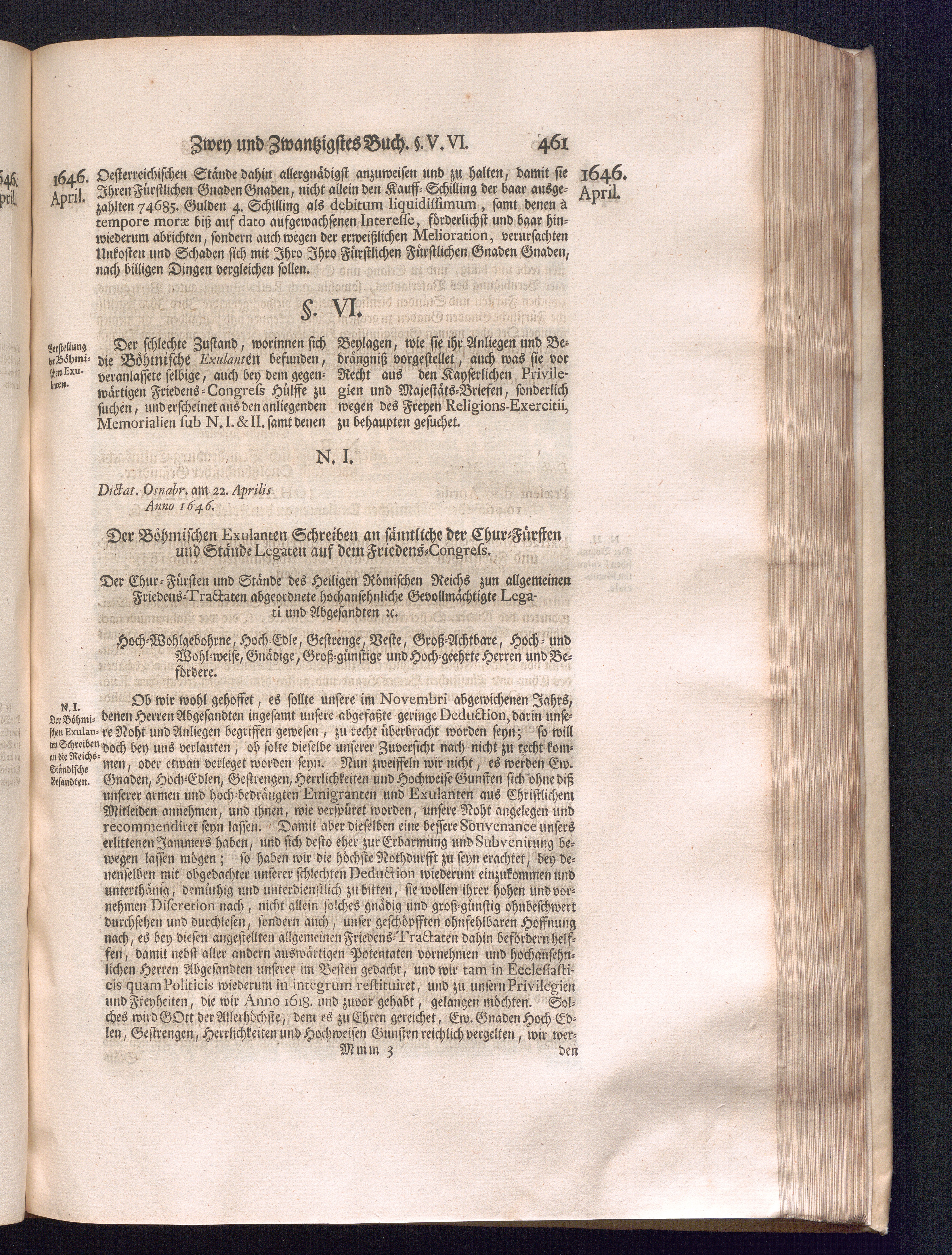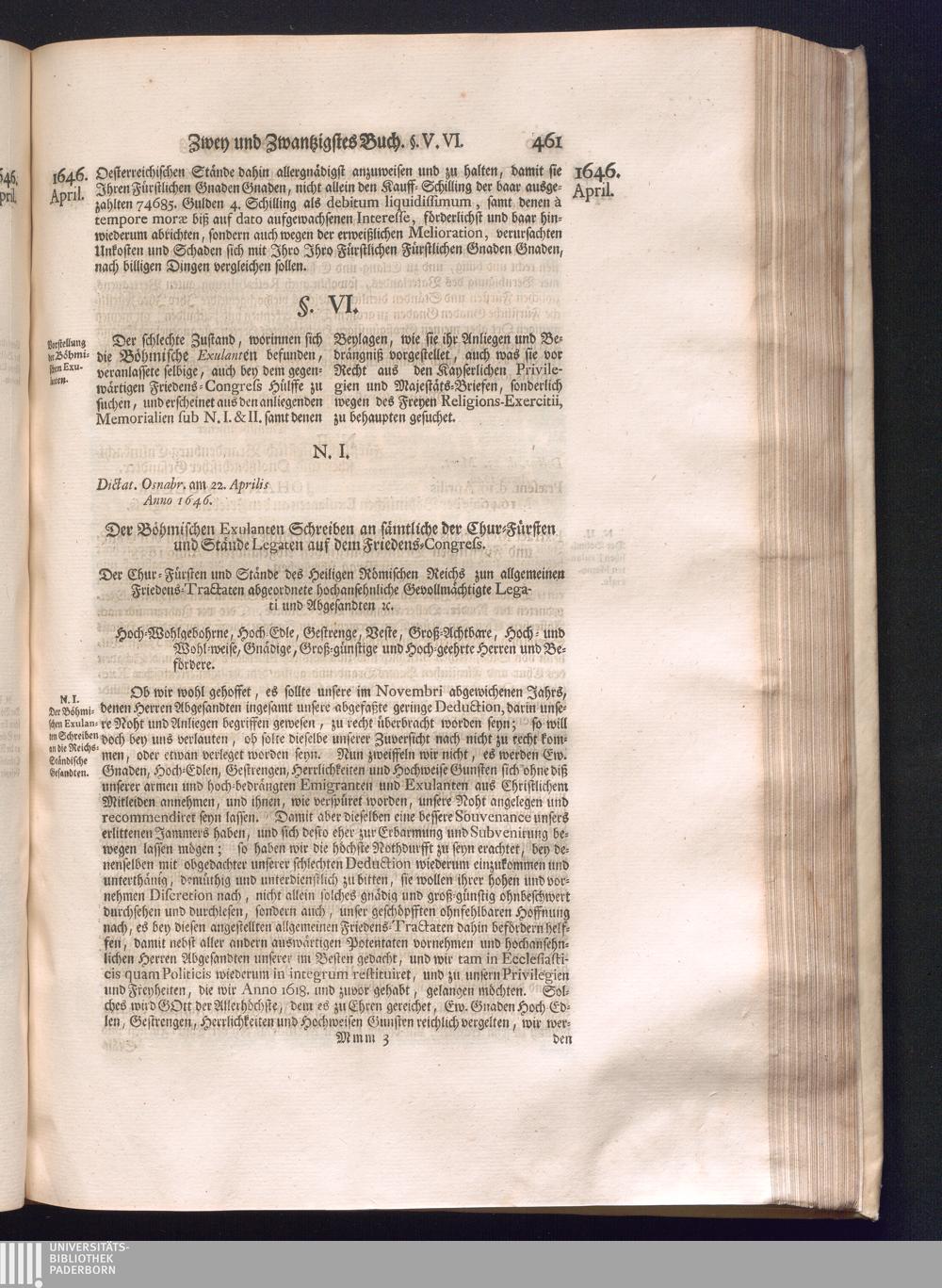 Dritter Theil (1735) Worinnen enthalten, was vom Monath April, biß zu Ende des Jahrs 1646. zwischen Jhro Römisch-Kayserlichen Majestät, dann den Beyden Cronen Franckreich und Schweden, ingleichen des Heiligen Römischen Reichs Chur Fürsten, Fürsten und Ständen, zu Oßnabrück und Münster gehandelt worden