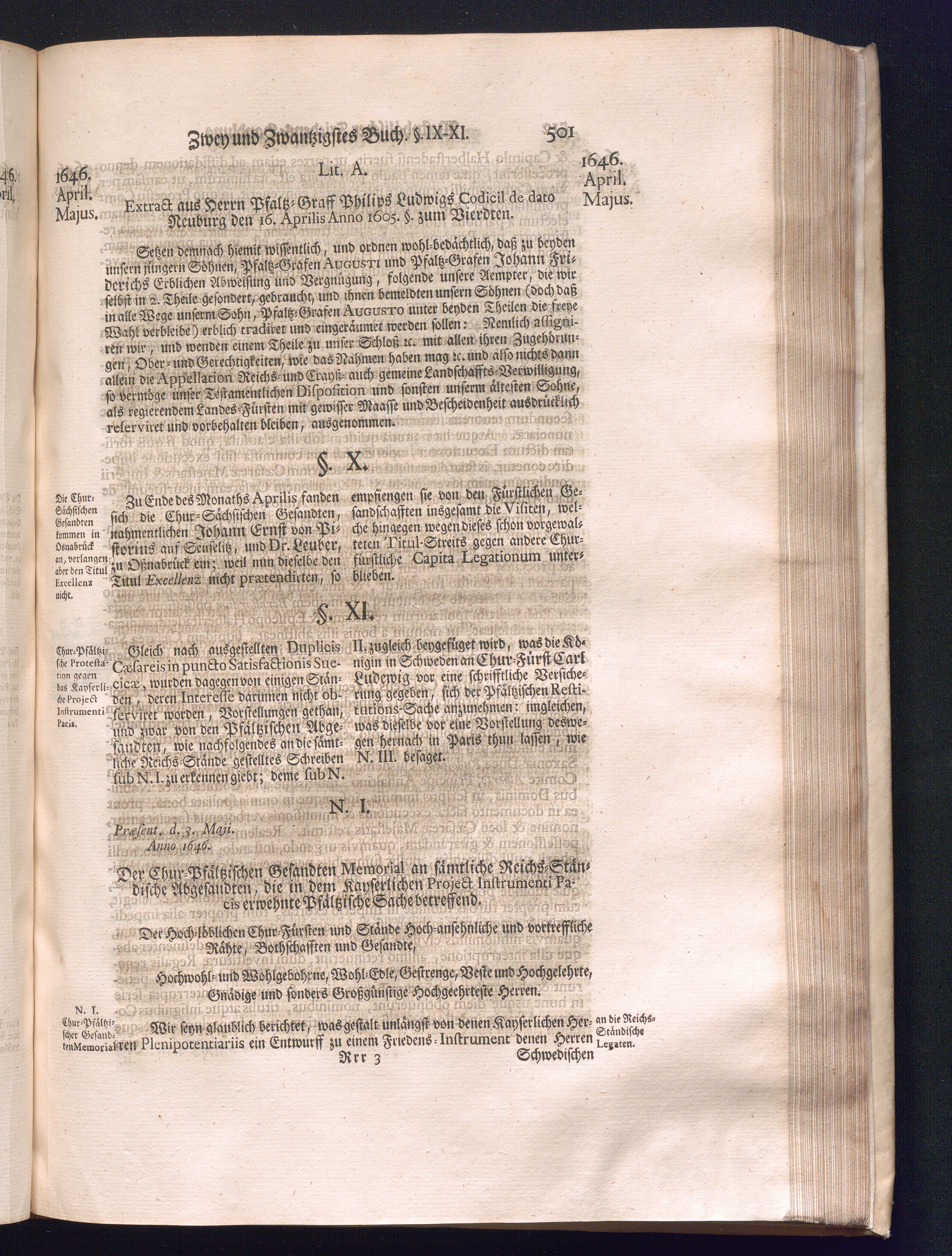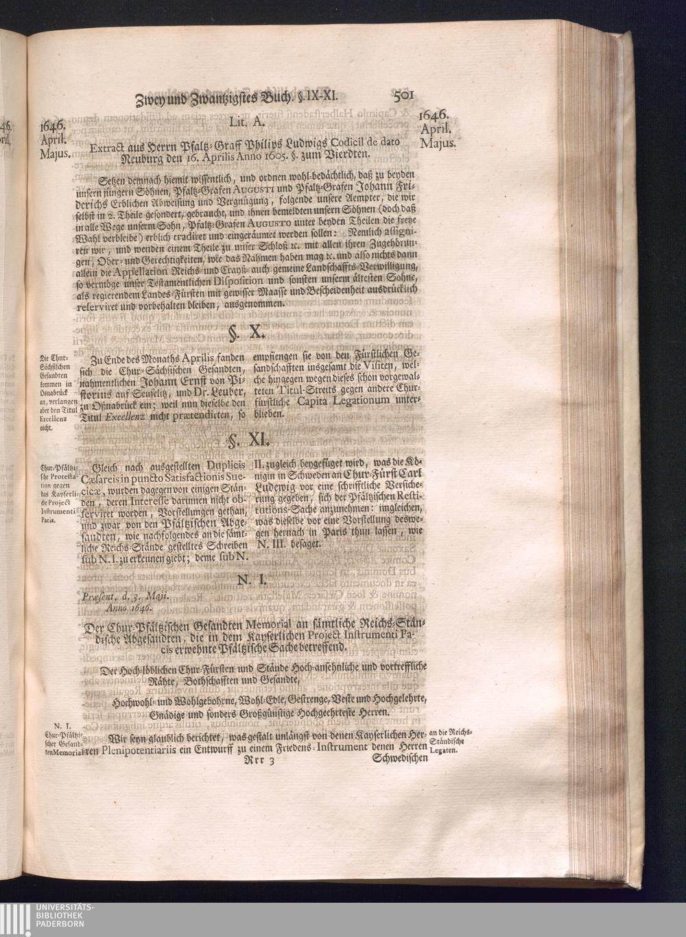 Dritter Theil (1735) Worinnen enthalten, was vom Monath April, biß zu Ende des Jahrs 1646. zwischen Jhro Römisch-Kayserlichen Majestät, dann den Beyden Cronen Franckreich und Schweden, ingleichen des Heiligen Römischen Reichs Chur Fürsten, Fürsten und Ständen, zu Oßnabrück und Münster gehandelt worden