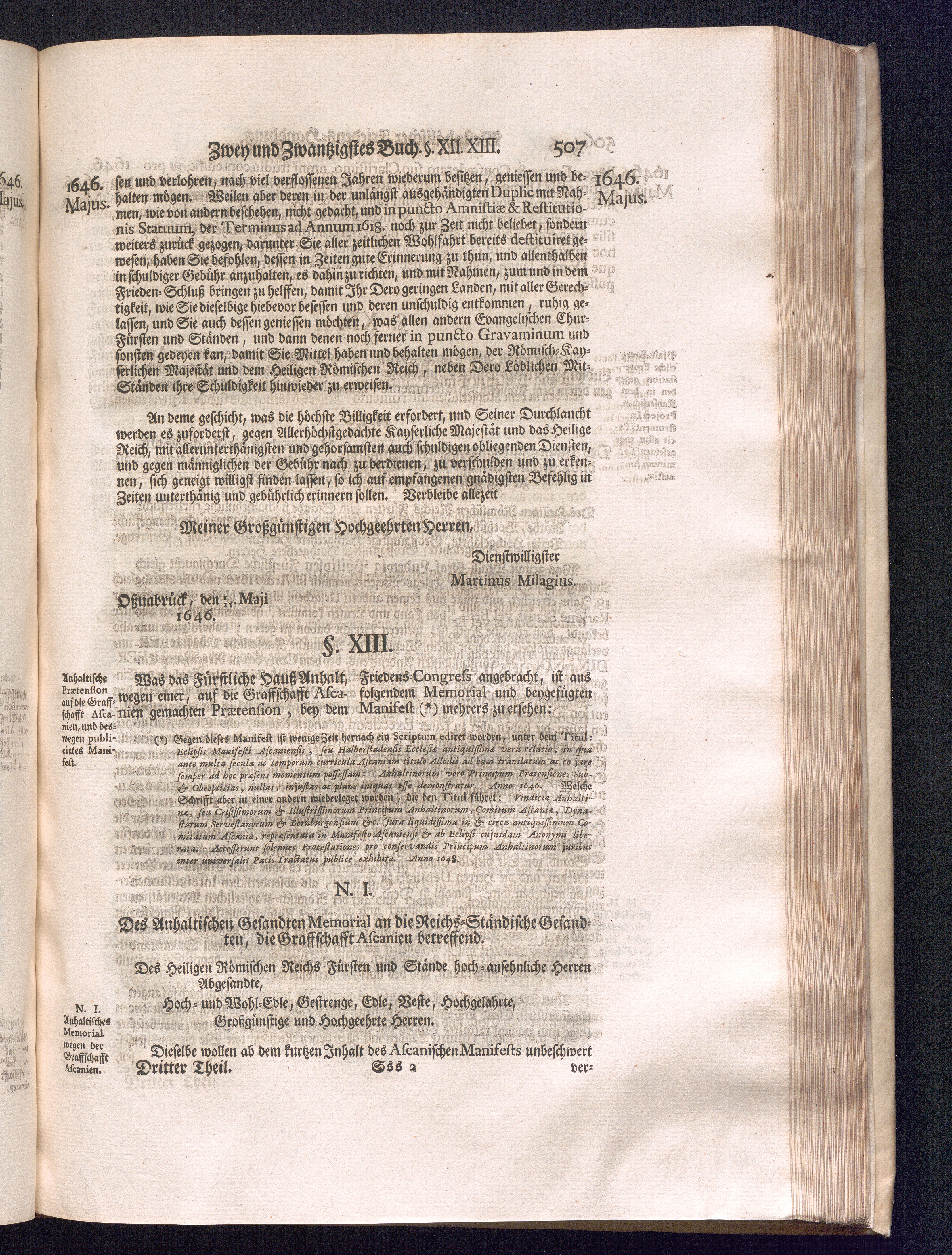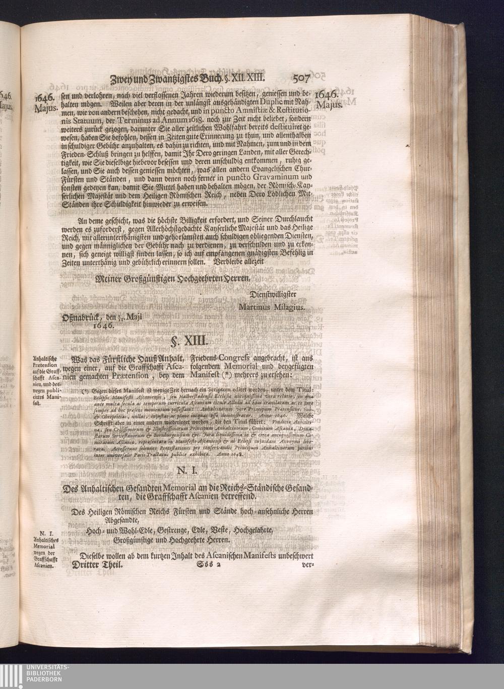 Dritter Theil (1735) Worinnen enthalten, was vom Monath April, biß zu Ende des Jahrs 1646. zwischen Jhro Römisch-Kayserlichen Majestät, dann den Beyden Cronen Franckreich und Schweden, ingleichen des Heiligen Römischen Reichs Chur Fürsten, Fürsten und Ständen, zu Oßnabrück und Münster gehandelt worden