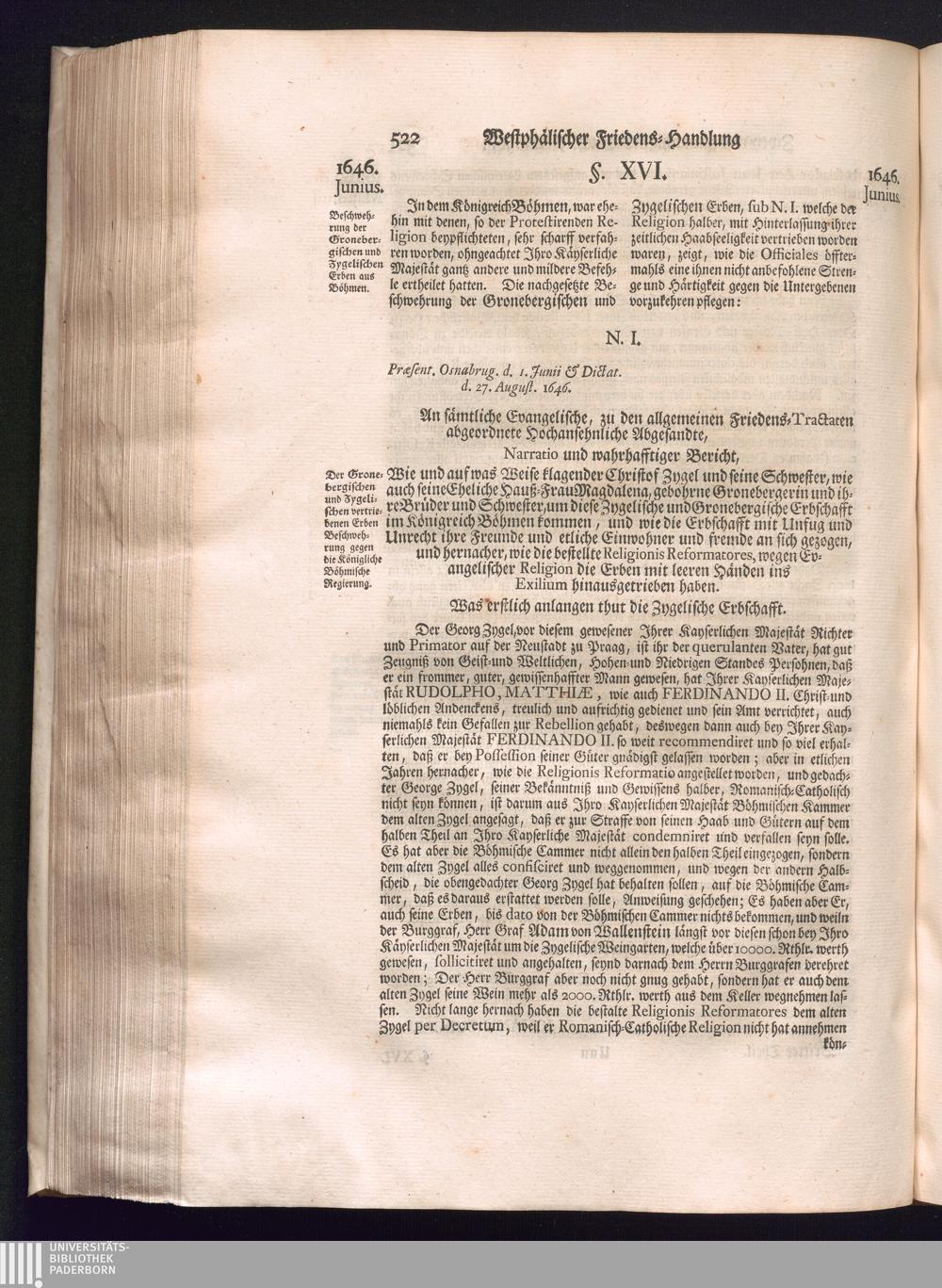 Dritter Theil (1735) Worinnen enthalten, was vom Monath April, biß zu Ende des Jahrs 1646. zwischen Jhro Römisch-Kayserlichen Majestät, dann den Beyden Cronen Franckreich und Schweden, ingleichen des Heiligen Römischen Reichs Chur Fürsten, Fürsten und Ständen, zu Oßnabrück und Münster gehandelt worden