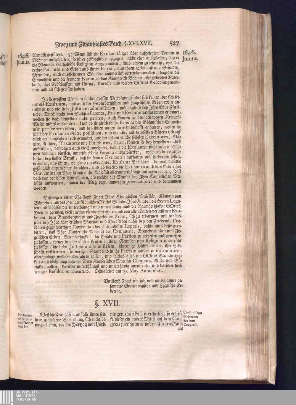 Dritter Theil (1735) Worinnen enthalten, was vom Monath April, biß zu Ende des Jahrs 1646. zwischen Jhro Römisch-Kayserlichen Majestät, dann den Beyden Cronen Franckreich und Schweden, ingleichen des Heiligen Römischen Reichs Chur Fürsten, Fürsten und Ständen, zu Oßnabrück und Münster gehandelt worden