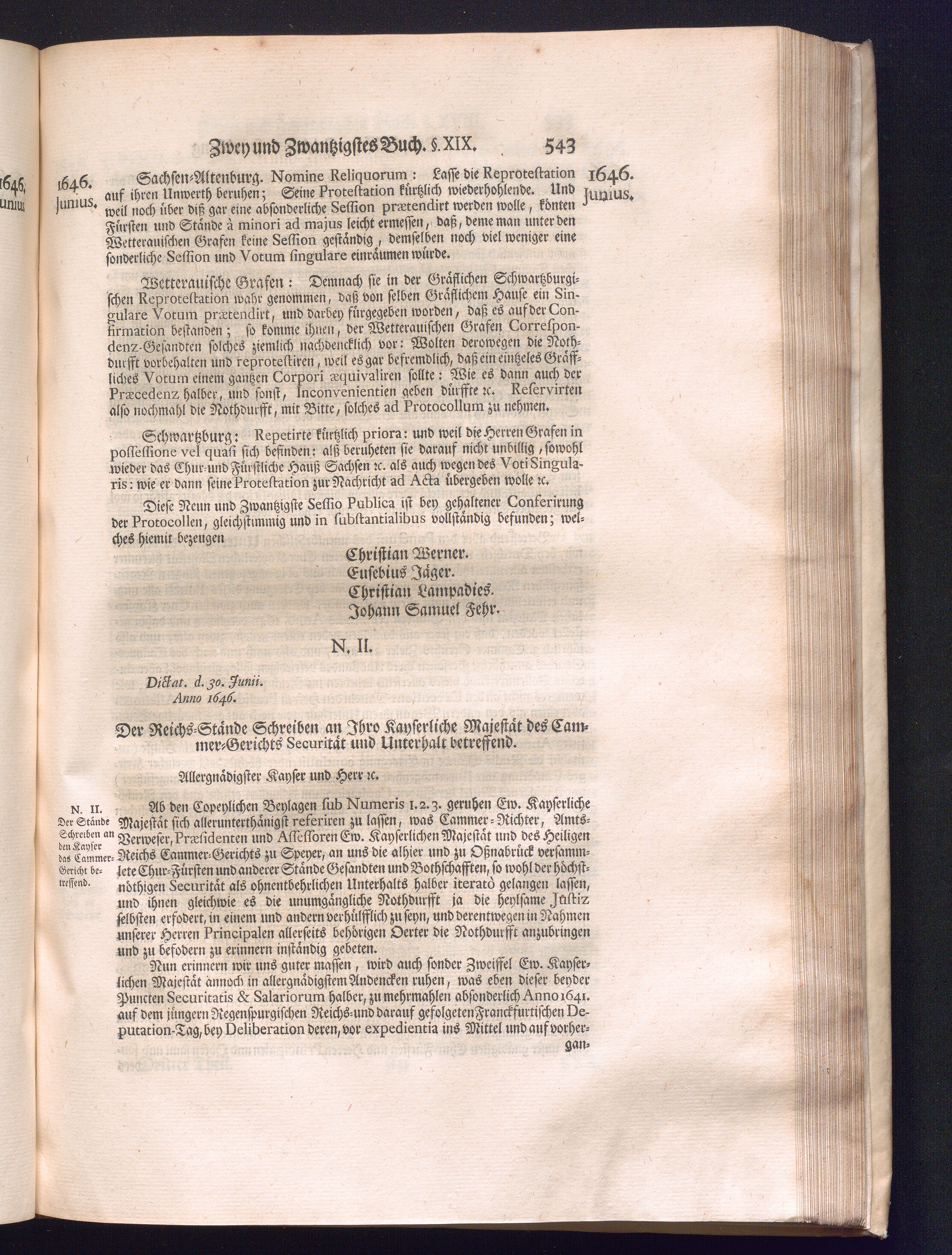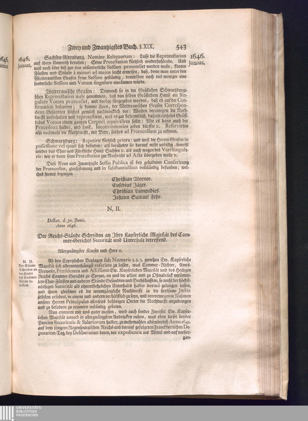 Dritter Theil (1735) Worinnen enthalten, was vom Monath April, biß zu Ende des Jahrs 1646. zwischen Jhro Römisch-Kayserlichen Majestät, dann den Beyden Cronen Franckreich und Schweden, ingleichen des Heiligen Römischen Reichs Chur Fürsten, Fürsten und Ständen, zu Oßnabrück und Münster gehandelt worden