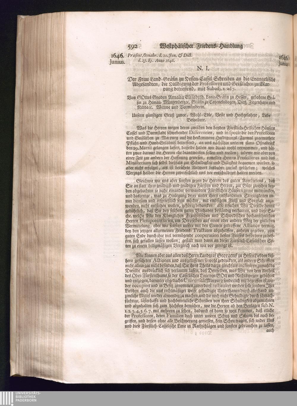 Dritter Theil (1735) Worinnen enthalten, was vom Monath April, biß zu Ende des Jahrs 1646. zwischen Jhro Römisch-Kayserlichen Majestät, dann den Beyden Cronen Franckreich und Schweden, ingleichen des Heiligen Römischen Reichs Chur Fürsten, Fürsten und Ständen, zu Oßnabrück und Münster gehandelt worden