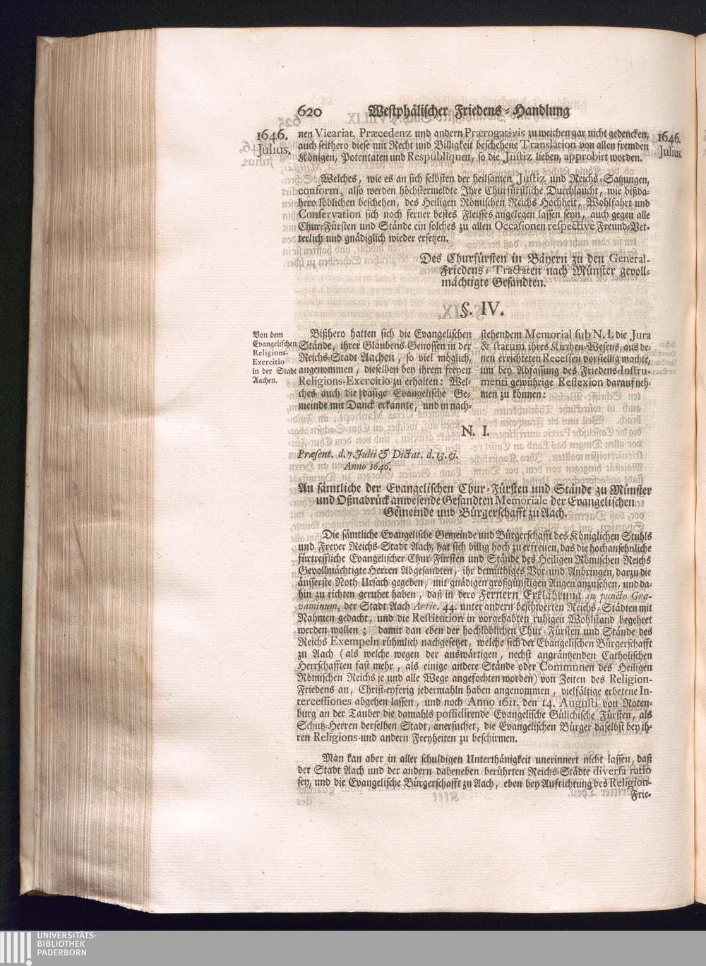 Dritter Theil (1735) Worinnen enthalten, was vom Monath April, biß zu Ende des Jahrs 1646. zwischen Jhro Römisch-Kayserlichen Majestät, dann den Beyden Cronen Franckreich und Schweden, ingleichen des Heiligen Römischen Reichs Chur Fürsten, Fürsten und Ständen, zu Oßnabrück und Münster gehandelt worden