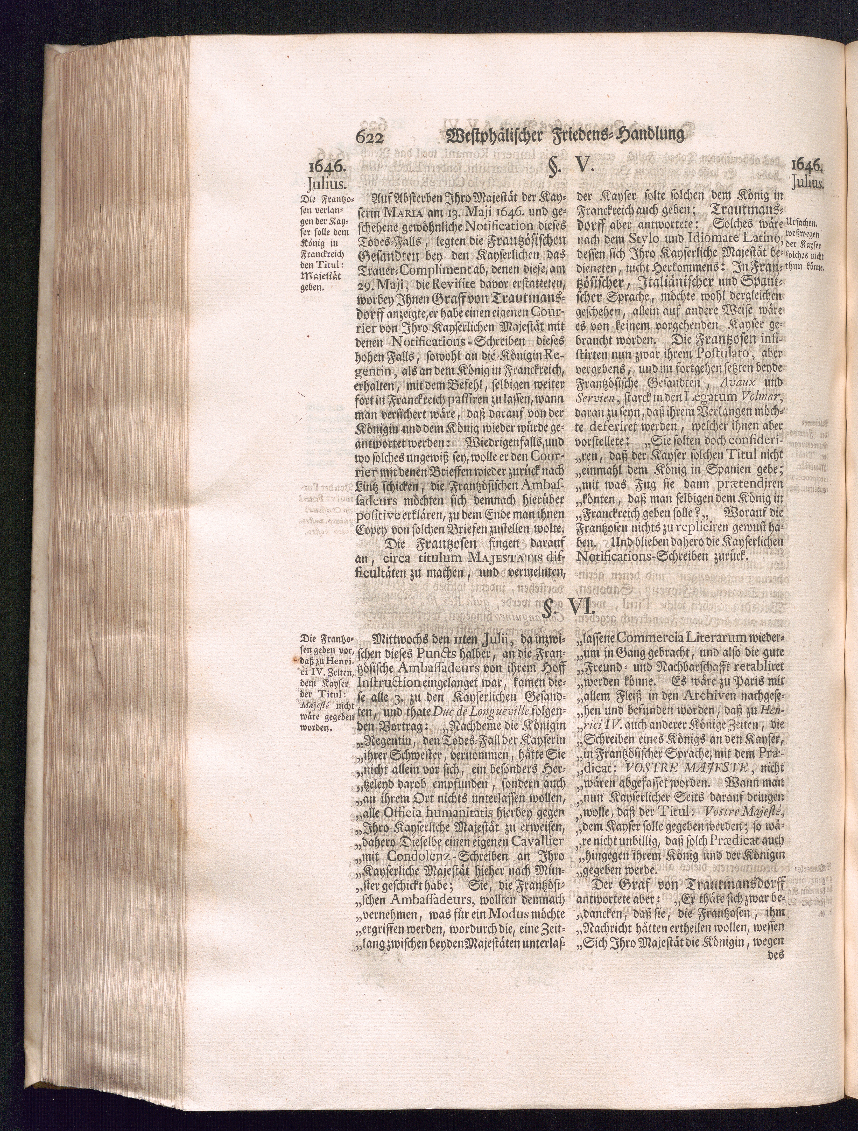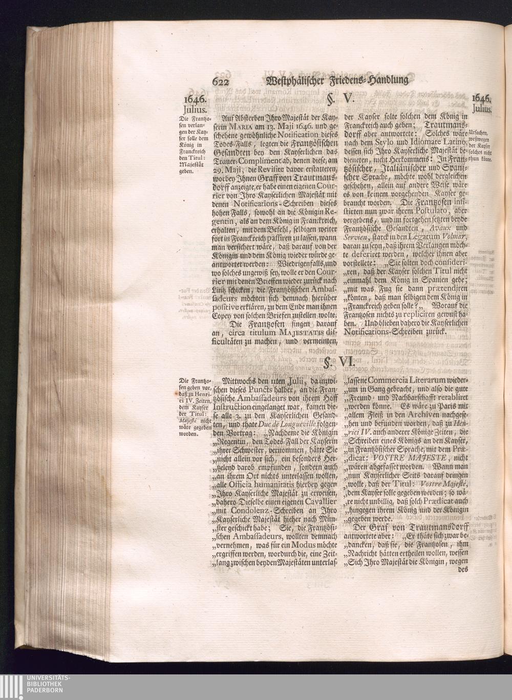 Dritter Theil (1735) Worinnen enthalten, was vom Monath April, biß zu Ende des Jahrs 1646. zwischen Jhro Römisch-Kayserlichen Majestät, dann den Beyden Cronen Franckreich und Schweden, ingleichen des Heiligen Römischen Reichs Chur Fürsten, Fürsten und Ständen, zu Oßnabrück und Münster gehandelt worden