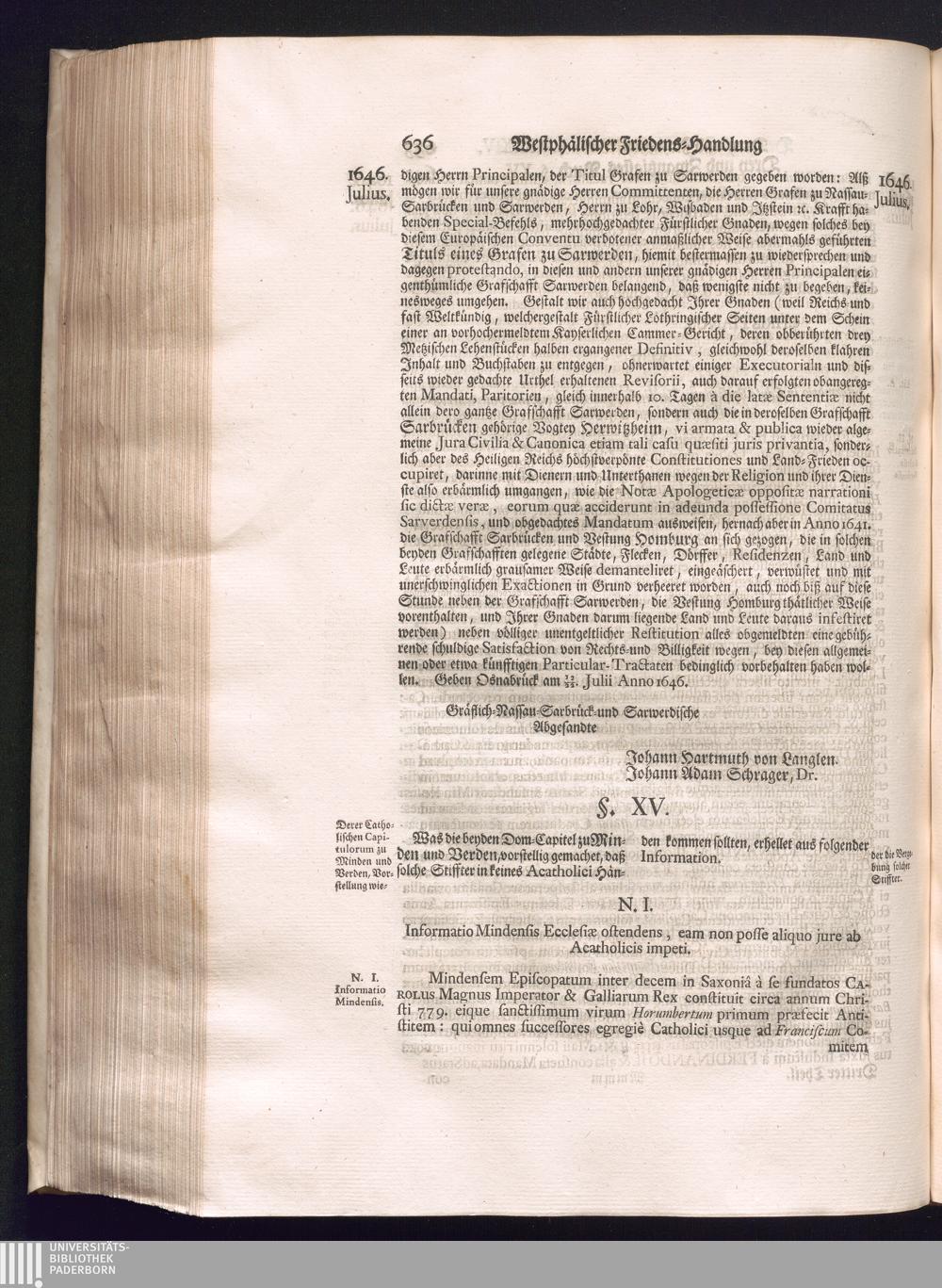 Dritter Theil (1735) Worinnen enthalten, was vom Monath April, biß zu Ende des Jahrs 1646. zwischen Jhro Römisch-Kayserlichen Majestät, dann den Beyden Cronen Franckreich und Schweden, ingleichen des Heiligen Römischen Reichs Chur Fürsten, Fürsten und Ständen, zu Oßnabrück und Münster gehandelt worden