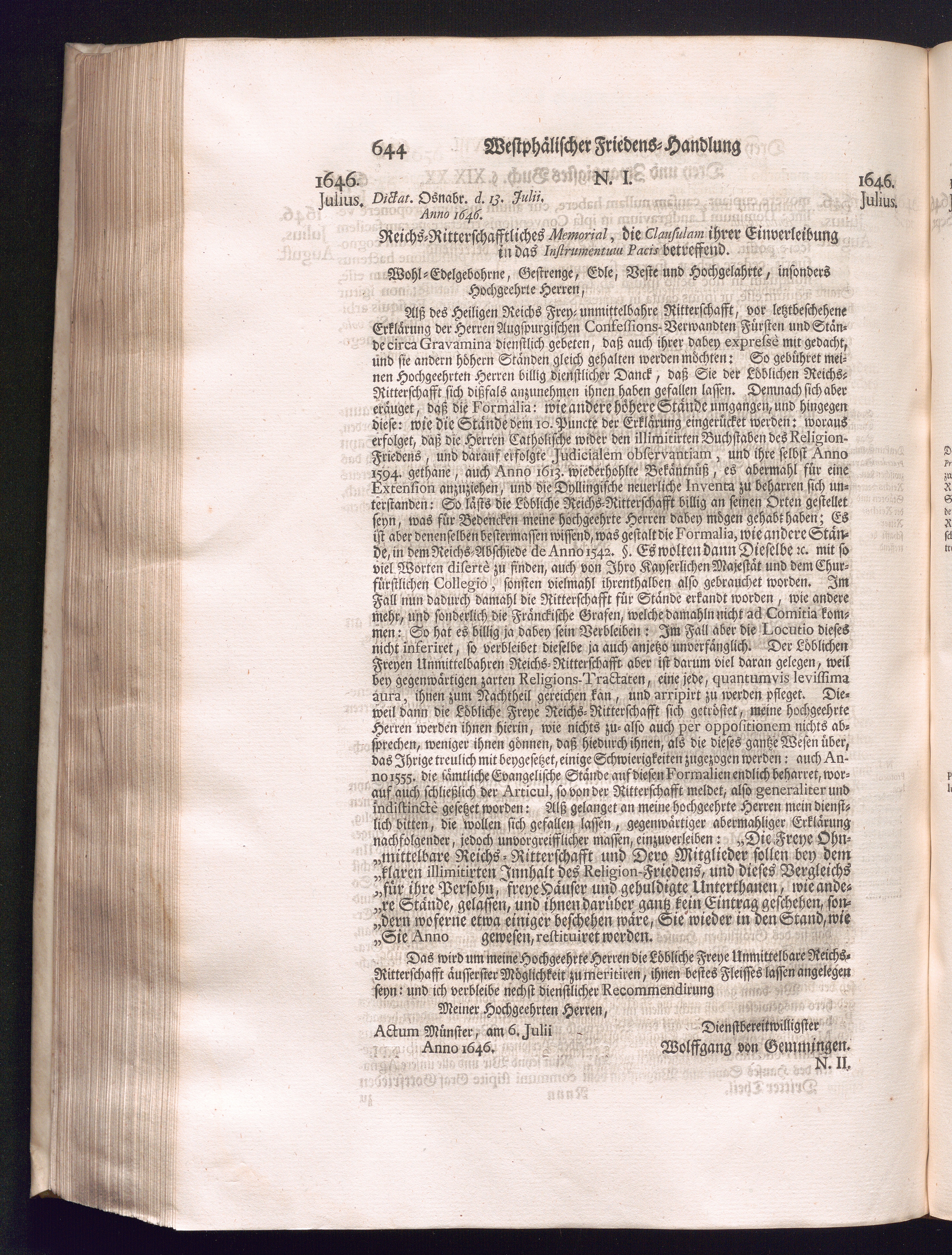 Dritter Theil (1735) Worinnen enthalten, was vom Monath April, biß zu Ende des Jahrs 1646. zwischen Jhro Römisch-Kayserlichen Majestät, dann den Beyden Cronen Franckreich und Schweden, ingleichen des Heiligen Römischen Reichs Chur Fürsten, Fürsten und Ständen, zu Oßnabrück und Münster gehandelt worden