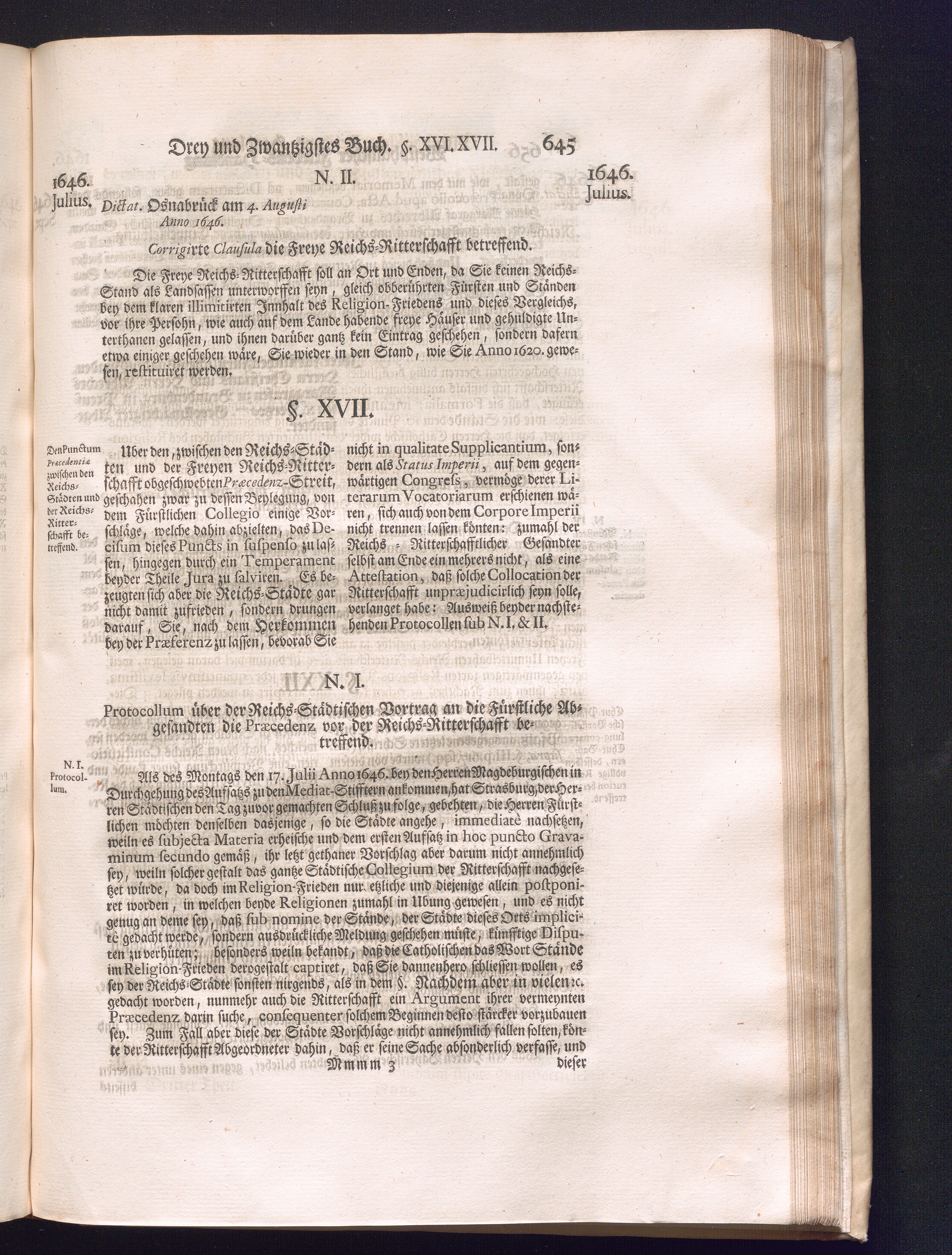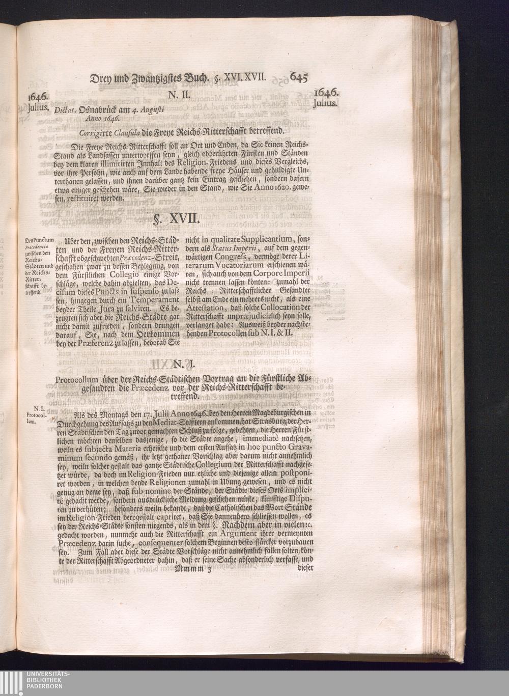 Dritter Theil (1735) Worinnen enthalten, was vom Monath April, biß zu Ende des Jahrs 1646. zwischen Jhro Römisch-Kayserlichen Majestät, dann den Beyden Cronen Franckreich und Schweden, ingleichen des Heiligen Römischen Reichs Chur Fürsten, Fürsten und Ständen, zu Oßnabrück und Münster gehandelt worden