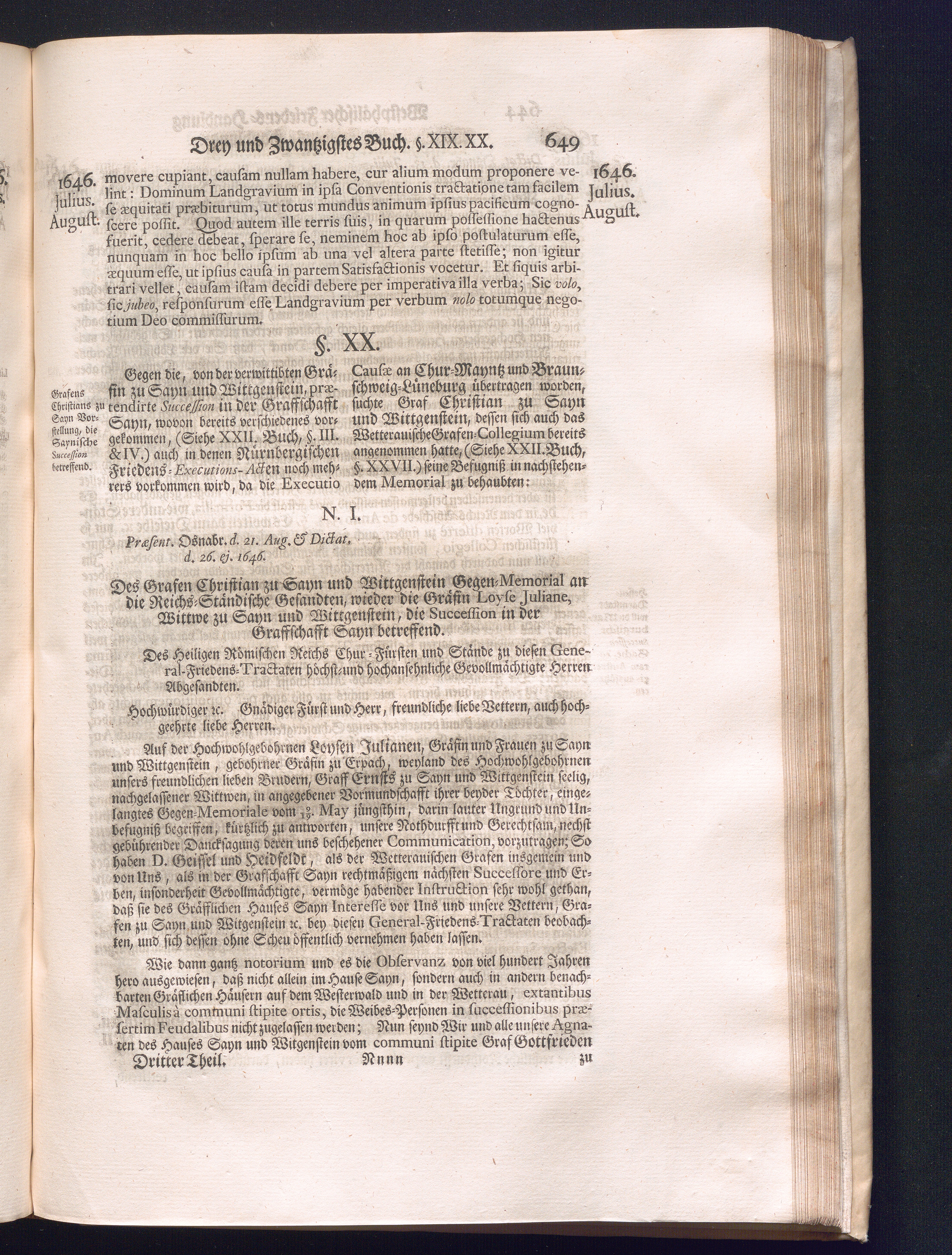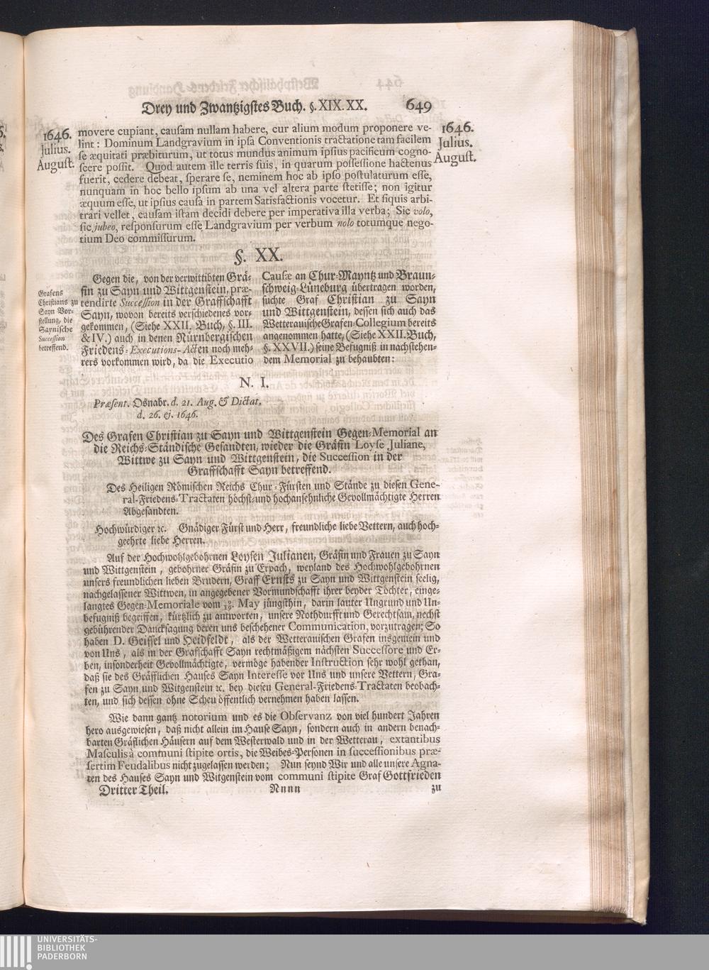 Dritter Theil (1735) Worinnen enthalten, was vom Monath April, biß zu Ende des Jahrs 1646. zwischen Jhro Römisch-Kayserlichen Majestät, dann den Beyden Cronen Franckreich und Schweden, ingleichen des Heiligen Römischen Reichs Chur Fürsten, Fürsten und Ständen, zu Oßnabrück und Münster gehandelt worden
