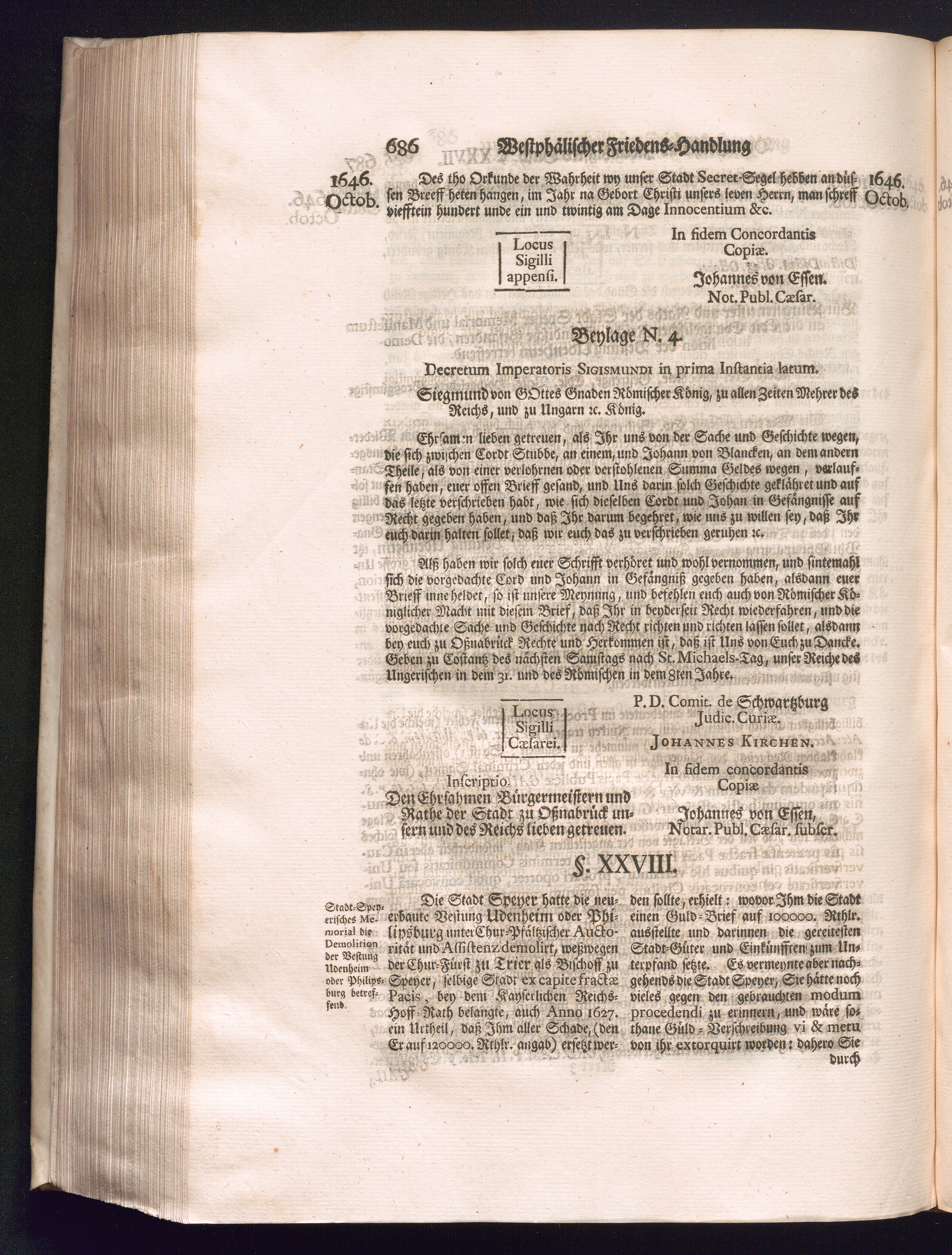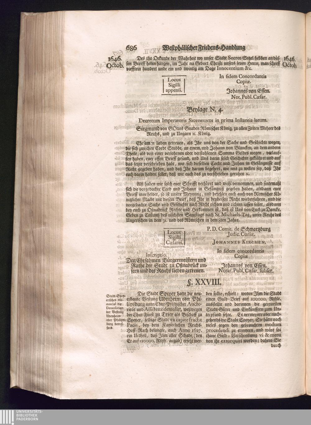 Dritter Theil (1735) Worinnen enthalten, was vom Monath April, biß zu Ende des Jahrs 1646. zwischen Jhro Römisch-Kayserlichen Majestät, dann den Beyden Cronen Franckreich und Schweden, ingleichen des Heiligen Römischen Reichs Chur Fürsten, Fürsten und Ständen, zu Oßnabrück und Münster gehandelt worden