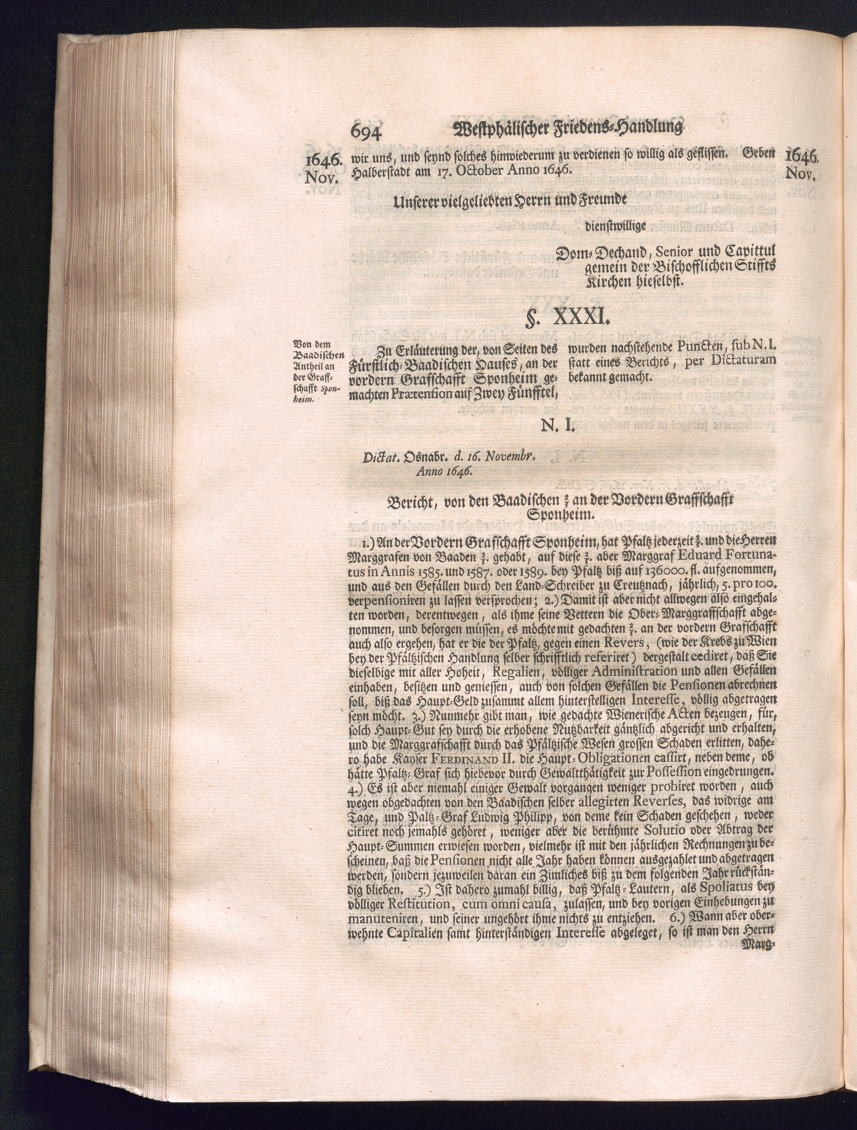 Dritter Theil (1735) Worinnen enthalten, was vom Monath April, biß zu Ende des Jahrs 1646. zwischen Jhro Römisch-Kayserlichen Majestät, dann den Beyden Cronen Franckreich und Schweden, ingleichen des Heiligen Römischen Reichs Chur Fürsten, Fürsten und Ständen, zu Oßnabrück und Münster gehandelt worden