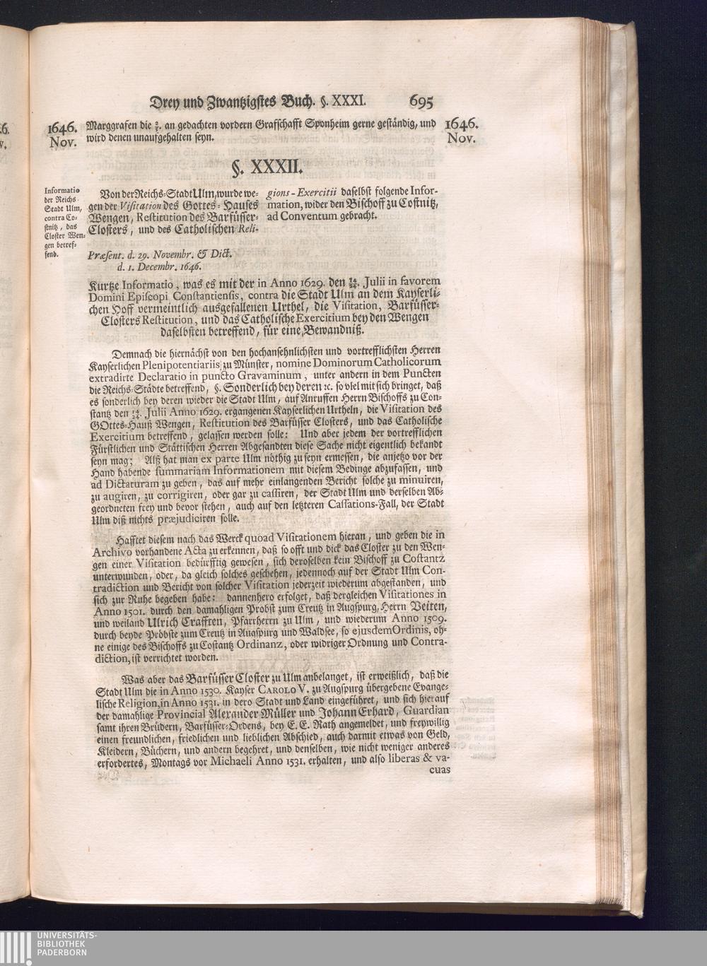 Dritter Theil (1735) Worinnen enthalten, was vom Monath April, biß zu Ende des Jahrs 1646. zwischen Jhro Römisch-Kayserlichen Majestät, dann den Beyden Cronen Franckreich und Schweden, ingleichen des Heiligen Römischen Reichs Chur Fürsten, Fürsten und Ständen, zu Oßnabrück und Münster gehandelt worden