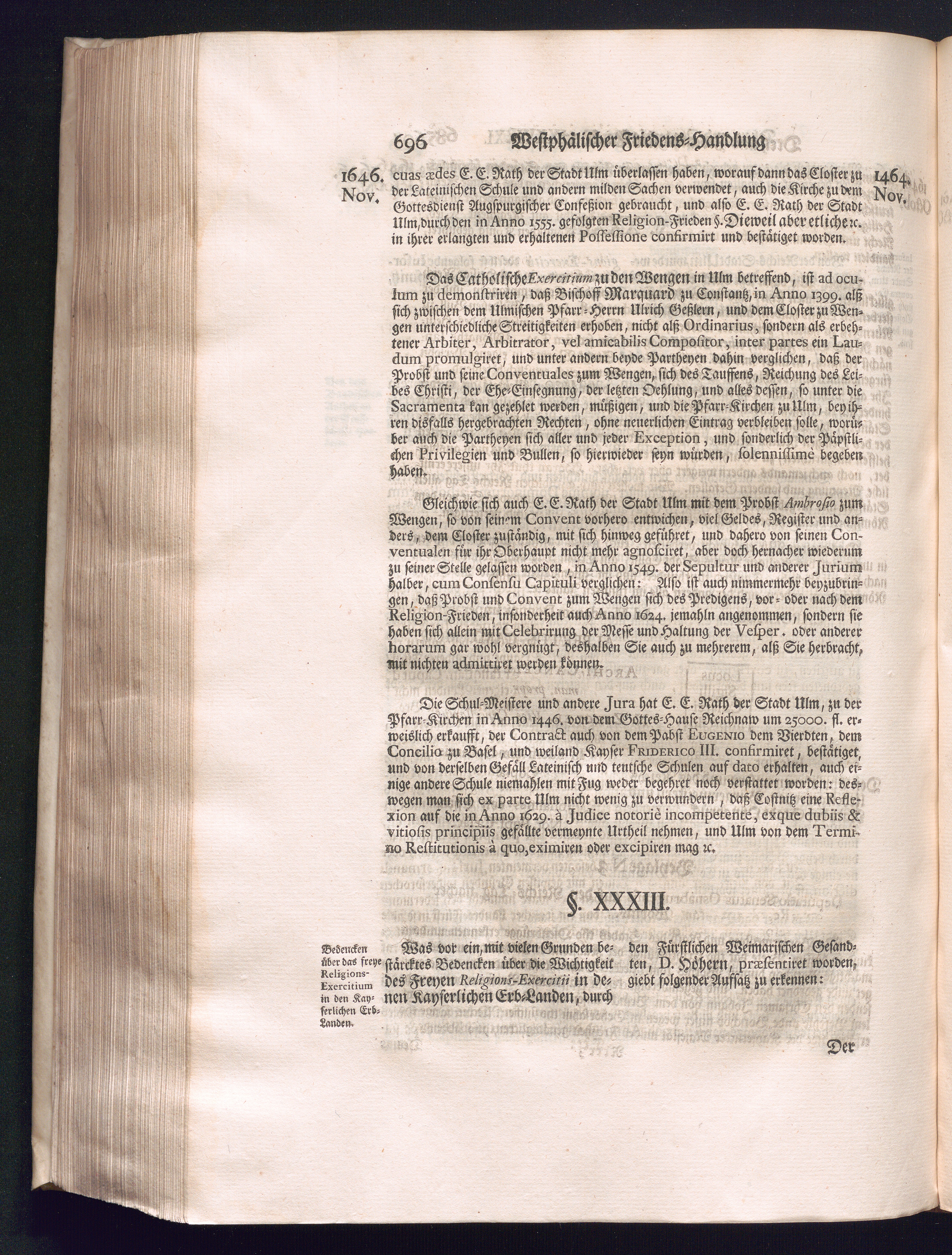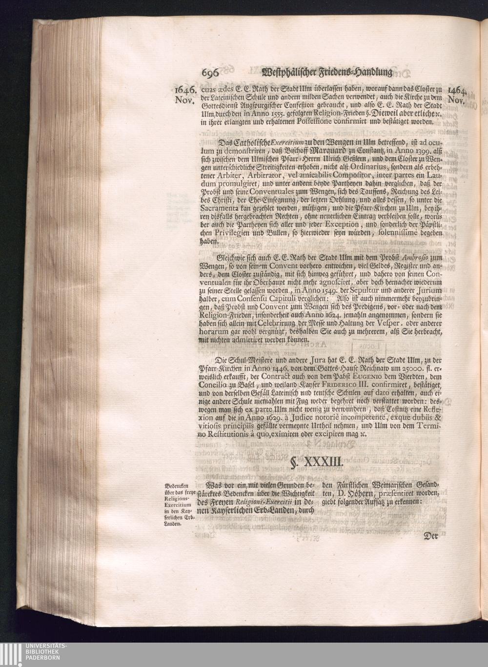 Dritter Theil (1735) Worinnen enthalten, was vom Monath April, biß zu Ende des Jahrs 1646. zwischen Jhro Römisch-Kayserlichen Majestät, dann den Beyden Cronen Franckreich und Schweden, ingleichen des Heiligen Römischen Reichs Chur Fürsten, Fürsten und Ständen, zu Oßnabrück und Münster gehandelt worden