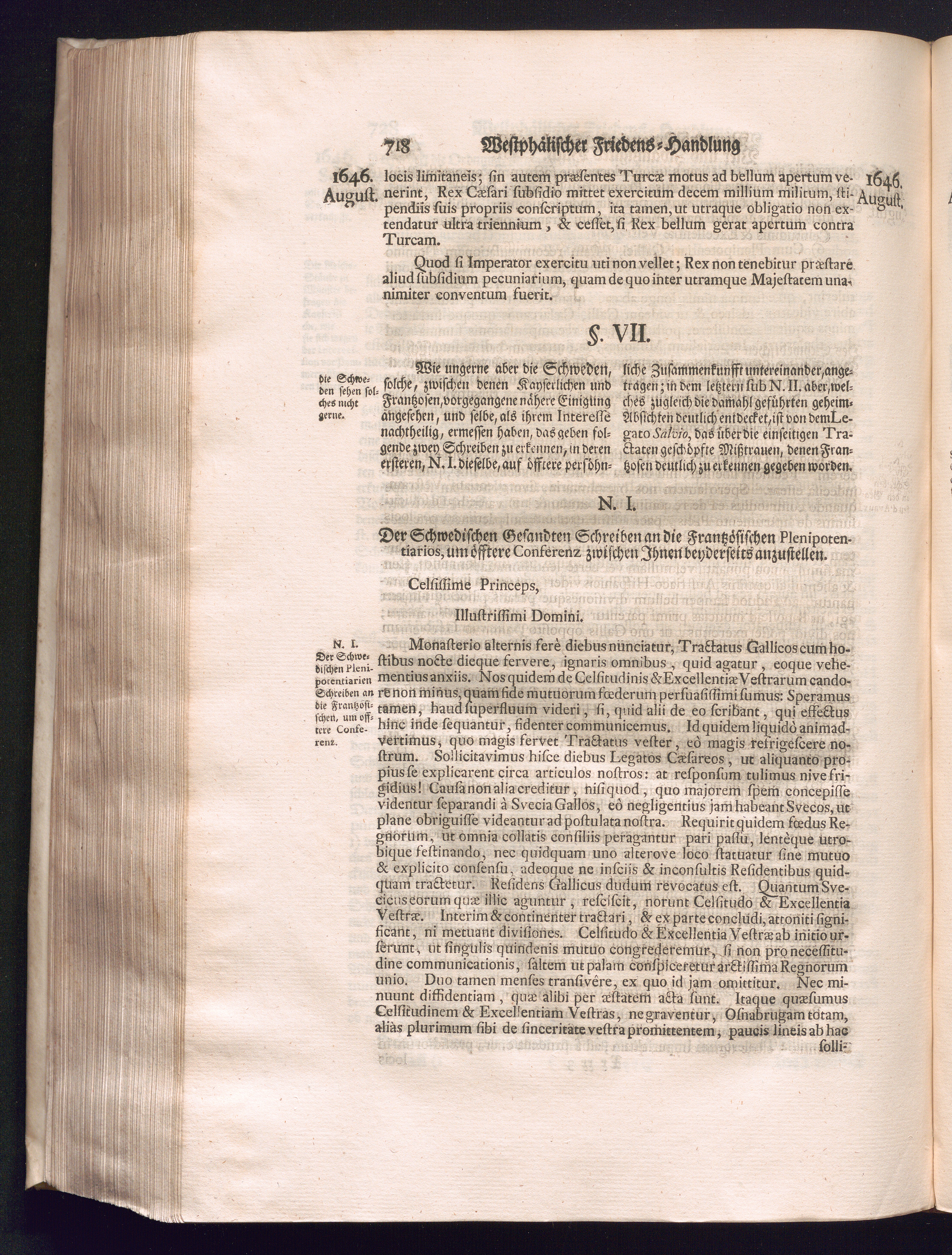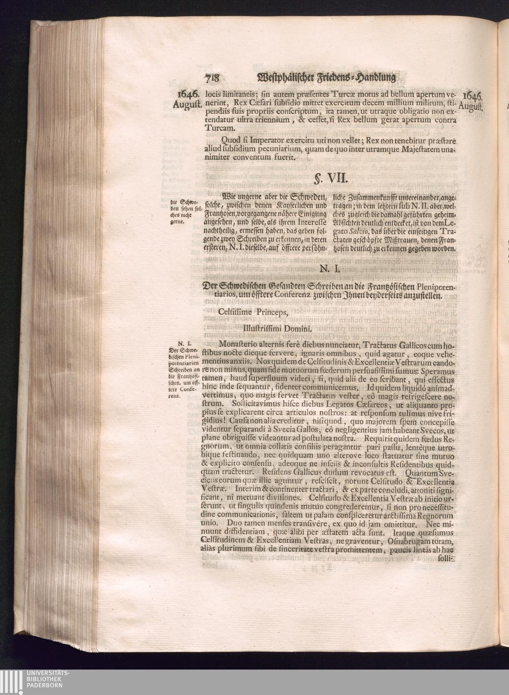 Dritter Theil (1735) Worinnen enthalten, was vom Monath April, biß zu Ende des Jahrs 1646. zwischen Jhro Römisch-Kayserlichen Majestät, dann den Beyden Cronen Franckreich und Schweden, ingleichen des Heiligen Römischen Reichs Chur Fürsten, Fürsten und Ständen, zu Oßnabrück und Münster gehandelt worden