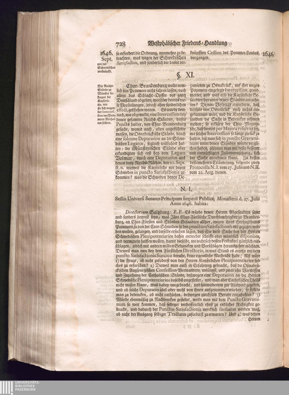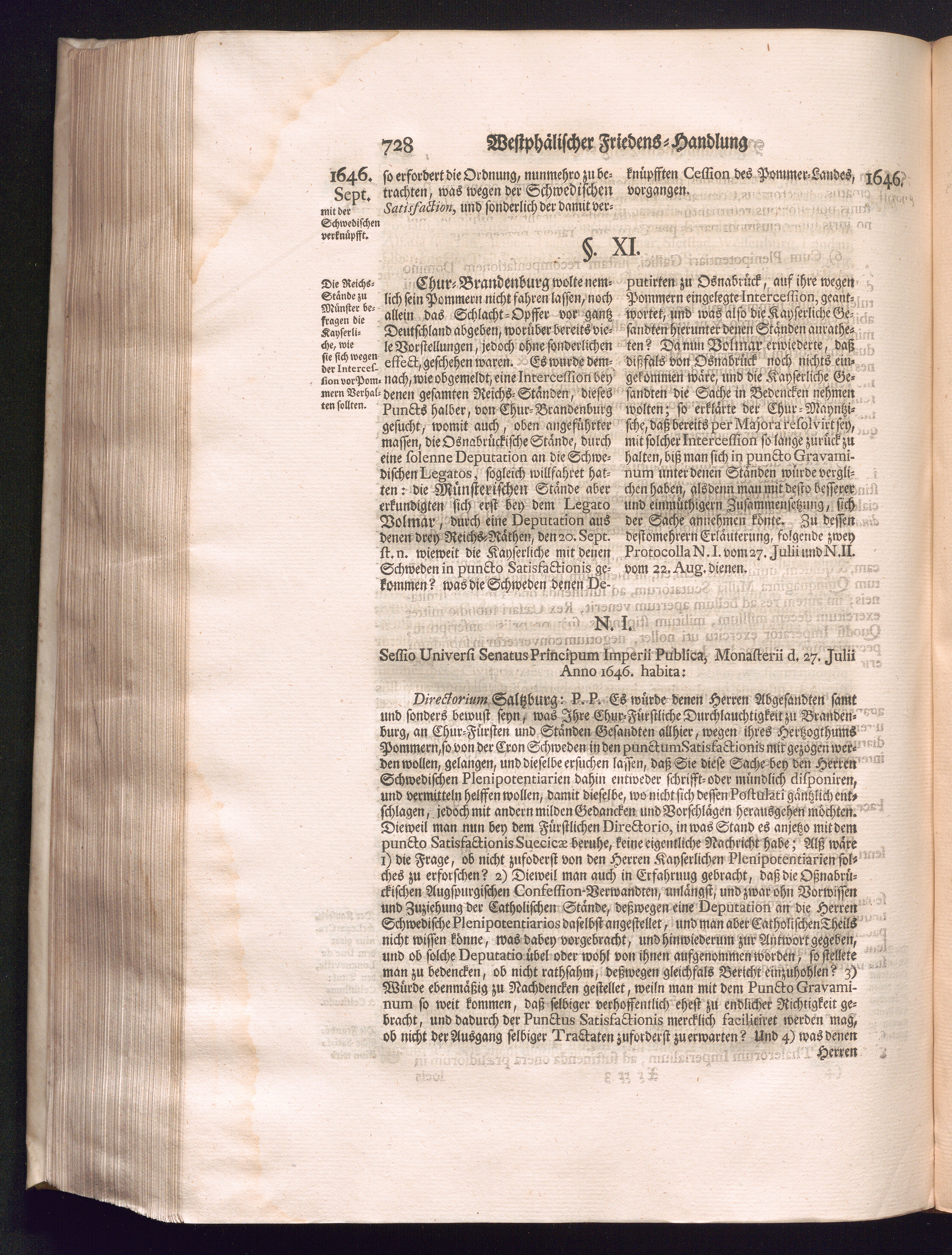 Dritter Theil (1735) Worinnen enthalten, was vom Monath April, biß zu Ende des Jahrs 1646. zwischen Jhro Römisch-Kayserlichen Majestät, dann den Beyden Cronen Franckreich und Schweden, ingleichen des Heiligen Römischen Reichs Chur Fürsten, Fürsten und Ständen, zu Oßnabrück und Münster gehandelt worden
