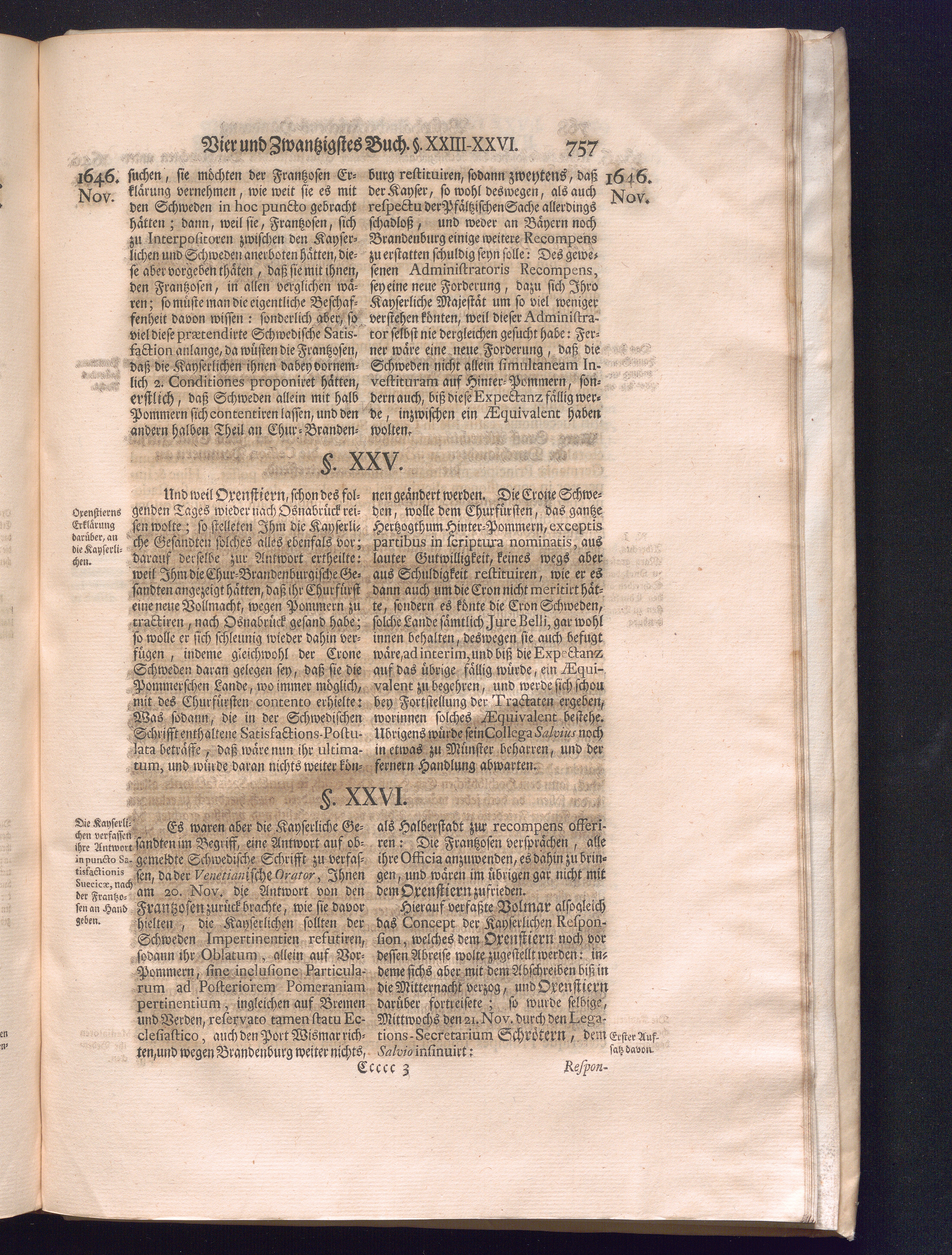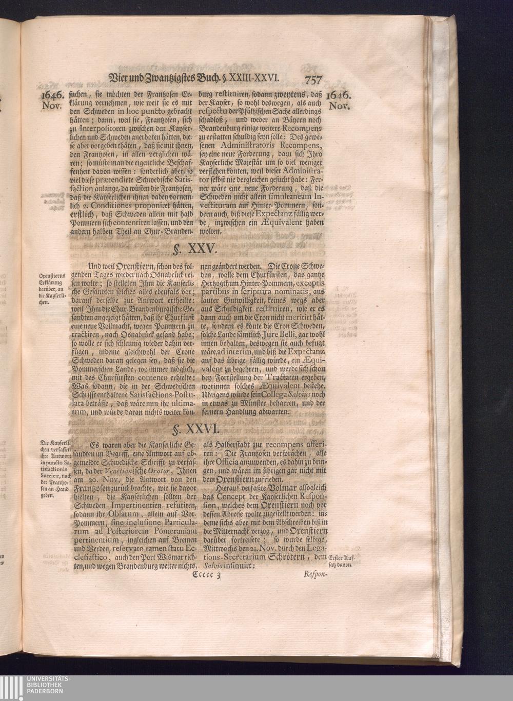 Dritter Theil (1735) Worinnen enthalten, was vom Monath April, biß zu Ende des Jahrs 1646. zwischen Jhro Römisch-Kayserlichen Majestät, dann den Beyden Cronen Franckreich und Schweden, ingleichen des Heiligen Römischen Reichs Chur Fürsten, Fürsten und Ständen, zu Oßnabrück und Münster gehandelt worden