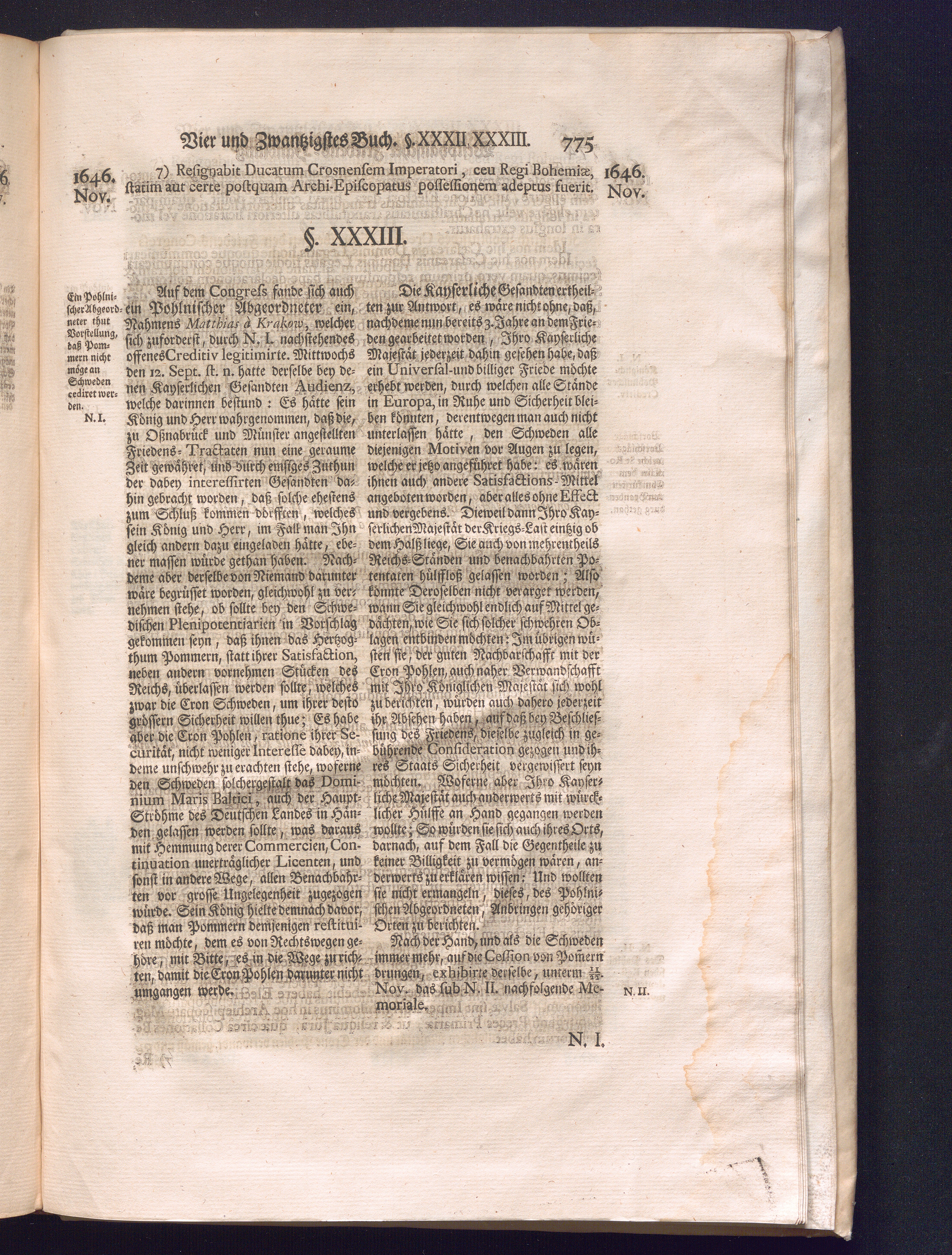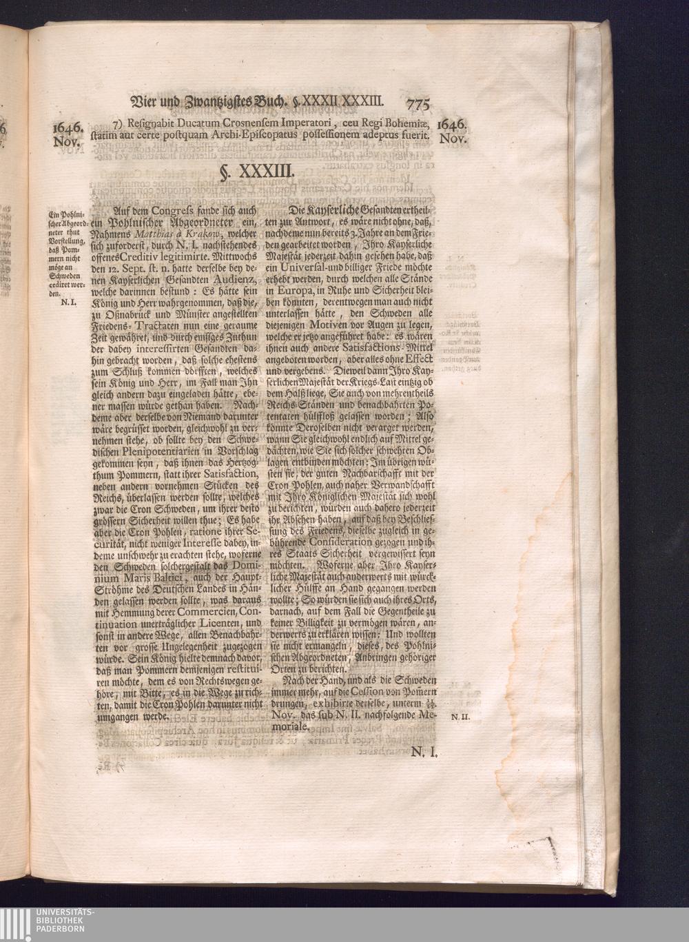 Dritter Theil (1735) Worinnen enthalten, was vom Monath April, biß zu Ende des Jahrs 1646. zwischen Jhro Römisch-Kayserlichen Majestät, dann den Beyden Cronen Franckreich und Schweden, ingleichen des Heiligen Römischen Reichs Chur Fürsten, Fürsten und Ständen, zu Oßnabrück und Münster gehandelt worden