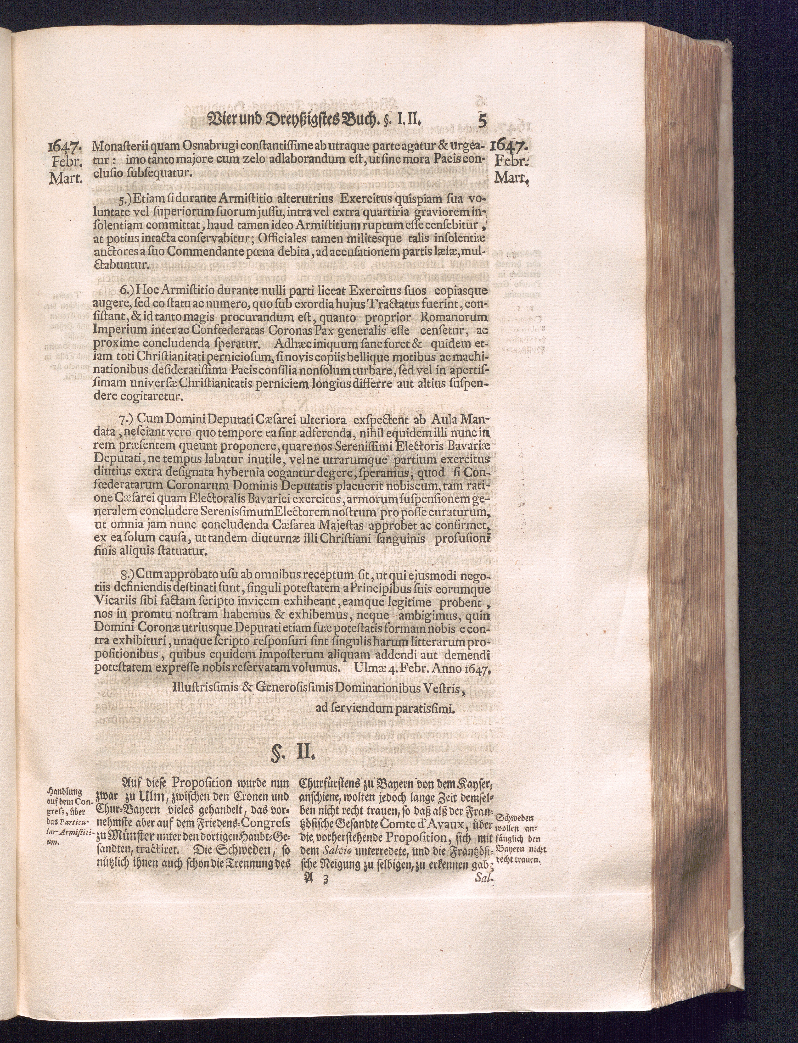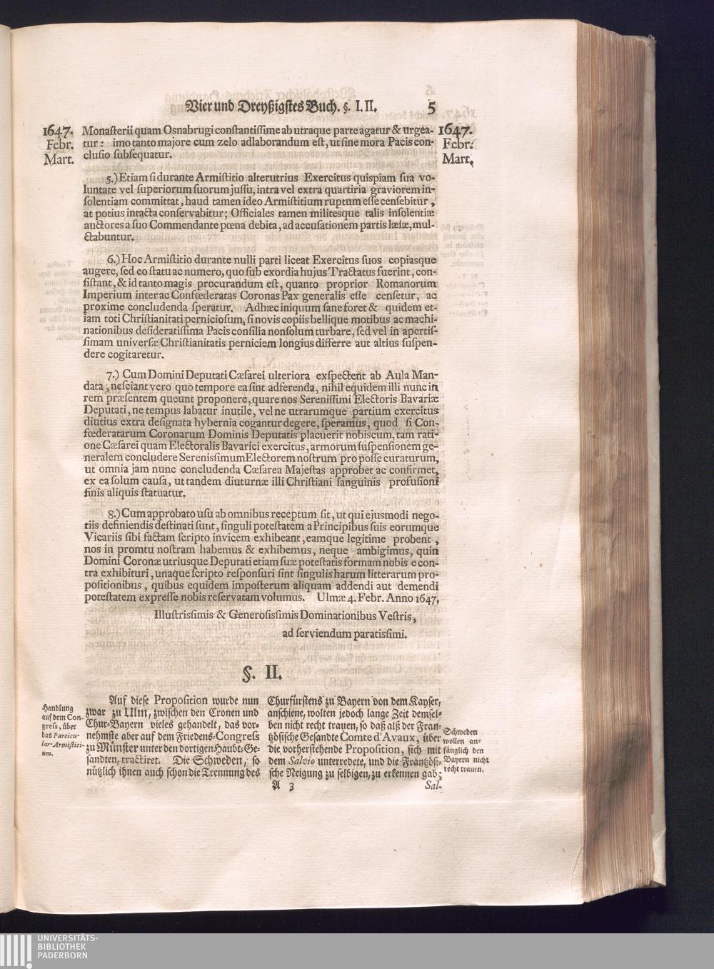 Fünffter Theil (1735) Worinnen enthalten, was vom Schluß des Jahrs 1647. biß in den Monath Junium des Jahrs 1648. zwischen Jhro Römisch-Kayserlichen Majestät, dann den Beyden Cronen Franckreich und Schweden, ingleichen des Heiligen Römischen Reichs Chur-Fürsten, Fürsten und Ständen, zu Oßnabrück und Münster gehandelt worden