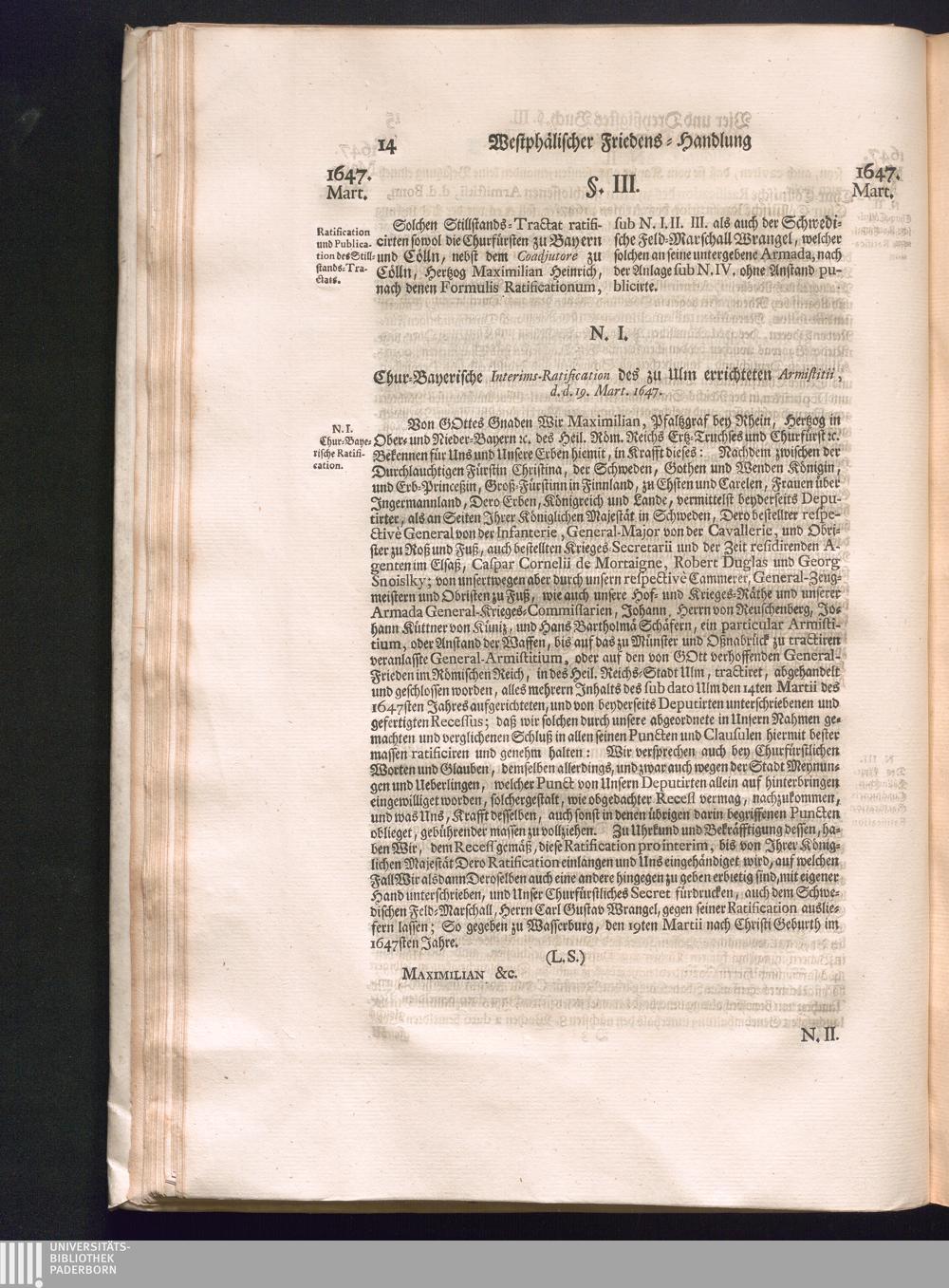 Fünffter Theil (1735) Worinnen enthalten, was vom Schluß des Jahrs 1647. biß in den Monath Junium des Jahrs 1648. zwischen Jhro Römisch-Kayserlichen Majestät, dann den Beyden Cronen Franckreich und Schweden, ingleichen des Heiligen Römischen Reichs Chur-Fürsten, Fürsten und Ständen, zu Oßnabrück und Münster gehandelt worden