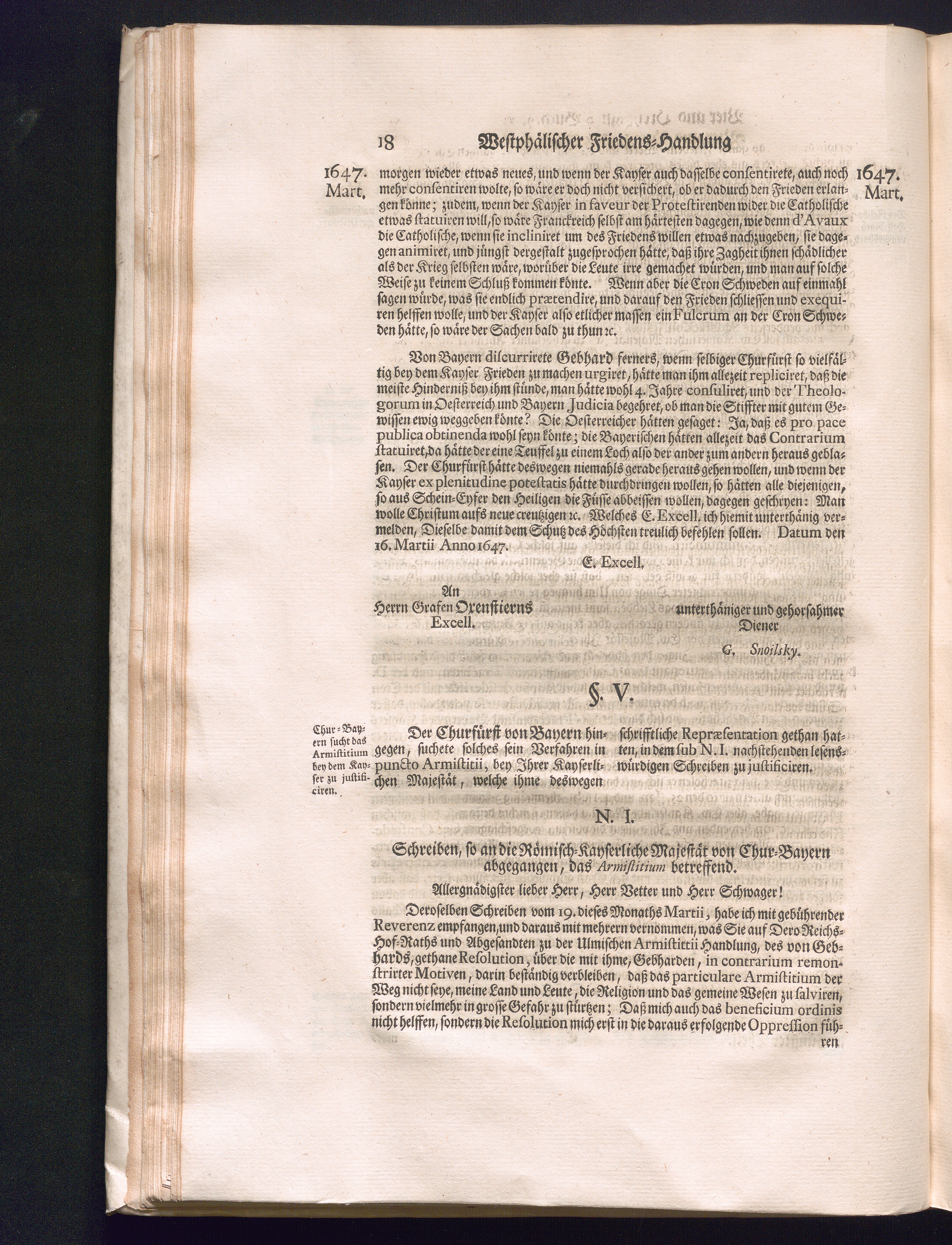 Fünffter Theil (1735) Worinnen enthalten, was vom Schluß des Jahrs 1647. biß in den Monath Junium des Jahrs 1648. zwischen Jhro Römisch-Kayserlichen Majestät, dann den Beyden Cronen Franckreich und Schweden, ingleichen des Heiligen Römischen Reichs Chur-Fürsten, Fürsten und Ständen, zu Oßnabrück und Münster gehandelt worden