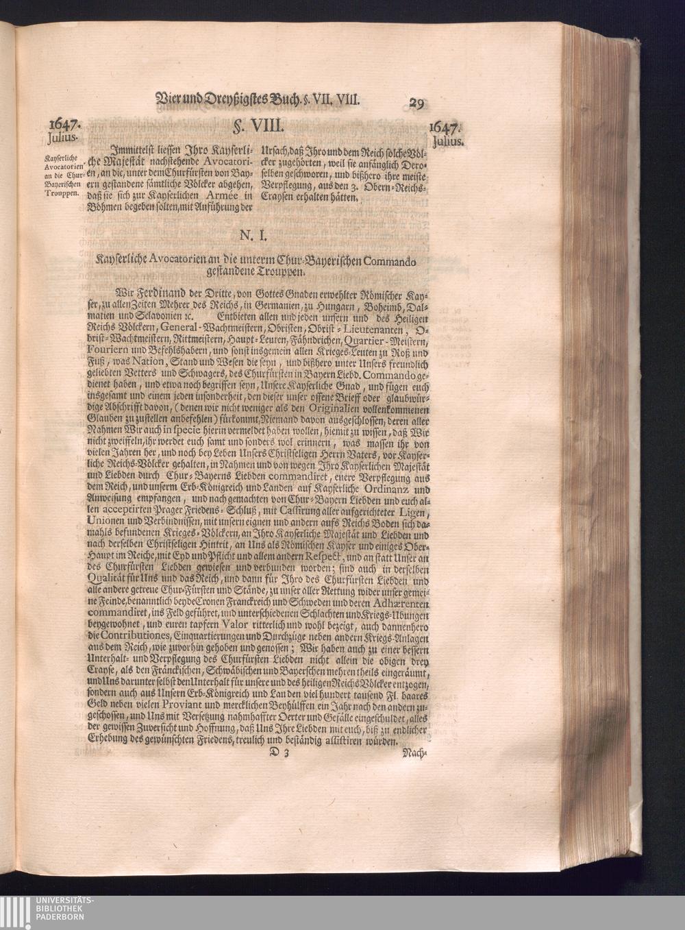 Fünffter Theil (1735) Worinnen enthalten, was vom Schluß des Jahrs 1647. biß in den Monath Junium des Jahrs 1648. zwischen Jhro Römisch-Kayserlichen Majestät, dann den Beyden Cronen Franckreich und Schweden, ingleichen des Heiligen Römischen Reichs Chur-Fürsten, Fürsten und Ständen, zu Oßnabrück und Münster gehandelt worden