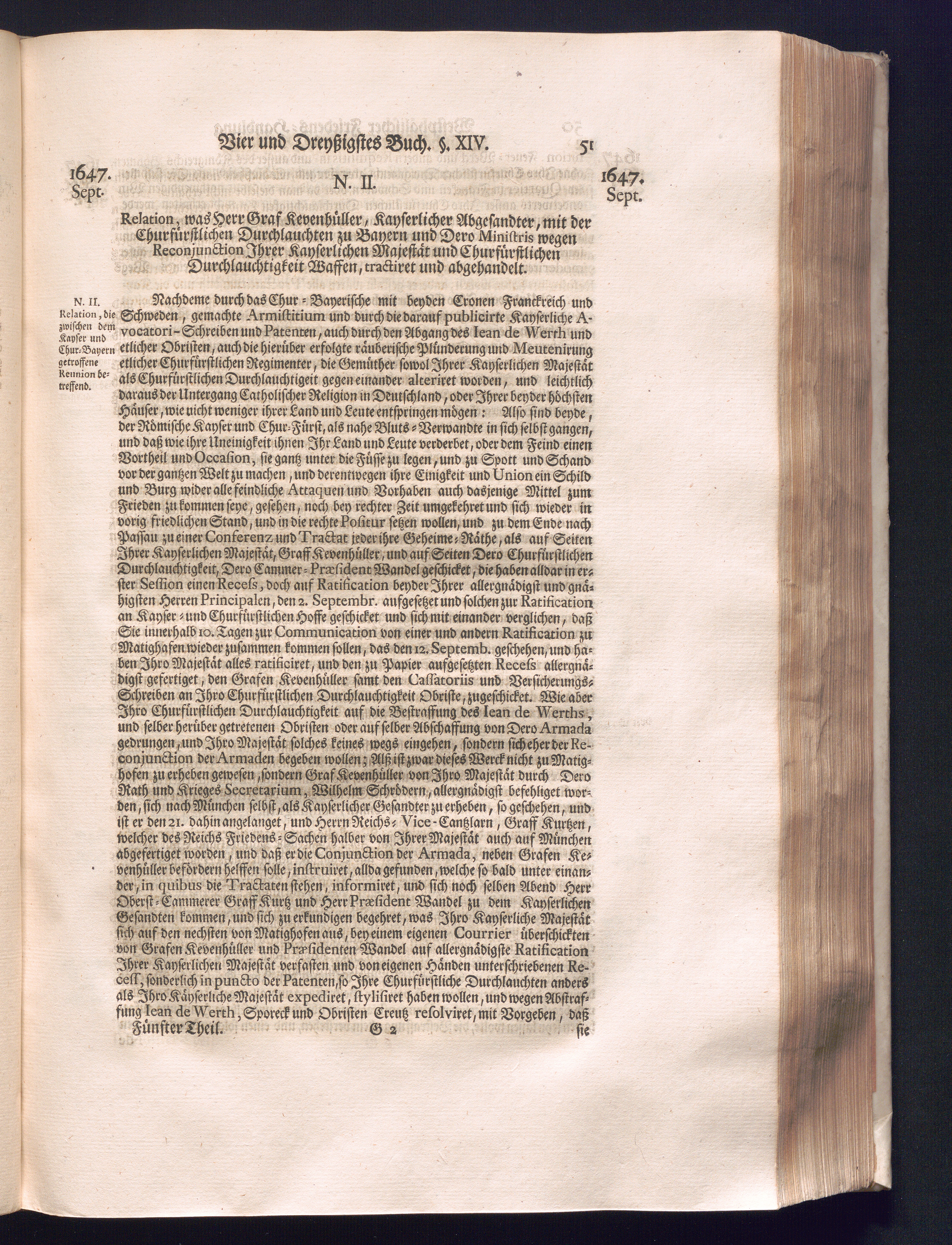 Fünffter Theil (1735) Worinnen enthalten, was vom Schluß des Jahrs 1647. biß in den Monath Junium des Jahrs 1648. zwischen Jhro Römisch-Kayserlichen Majestät, dann den Beyden Cronen Franckreich und Schweden, ingleichen des Heiligen Römischen Reichs Chur-Fürsten, Fürsten und Ständen, zu Oßnabrück und Münster gehandelt worden