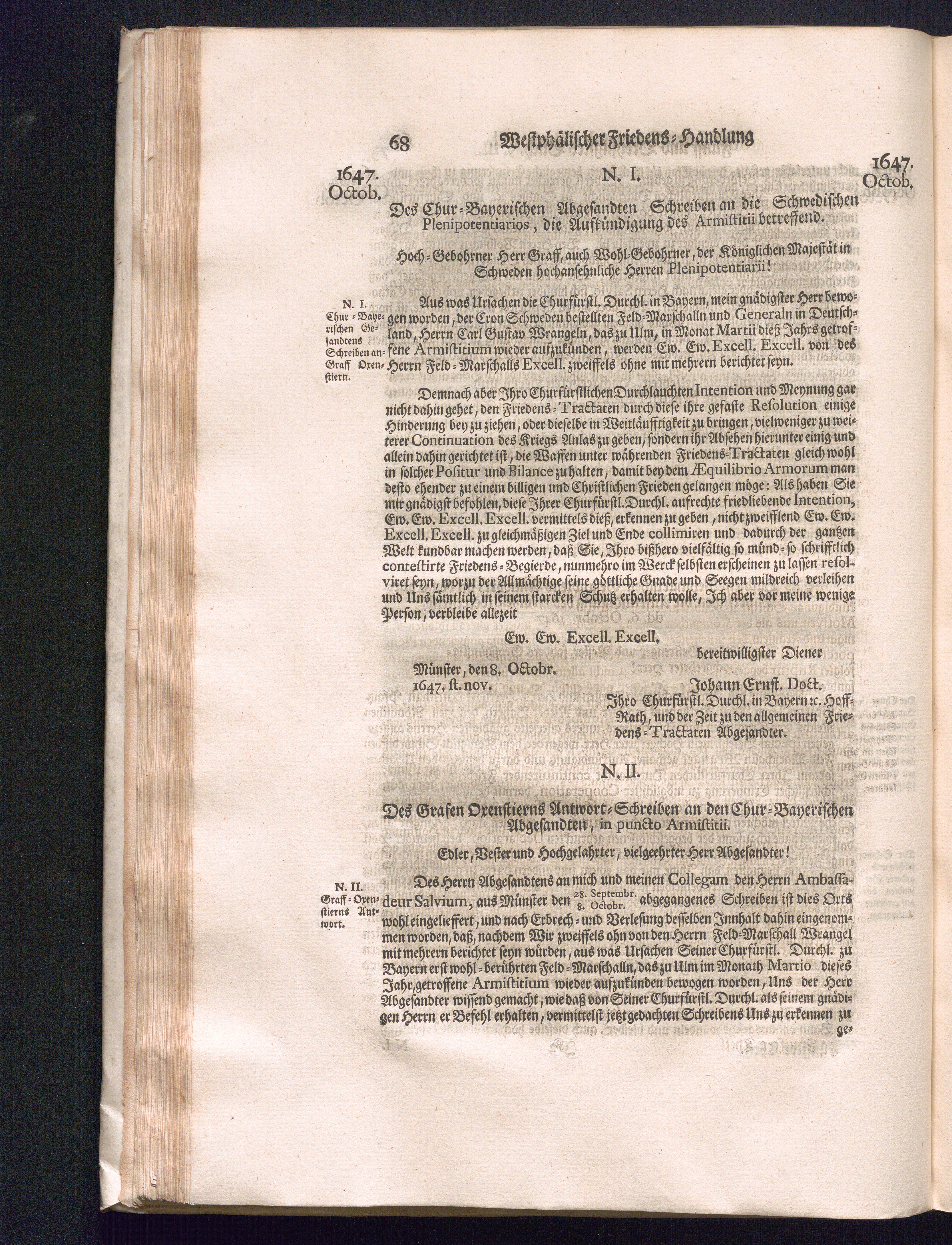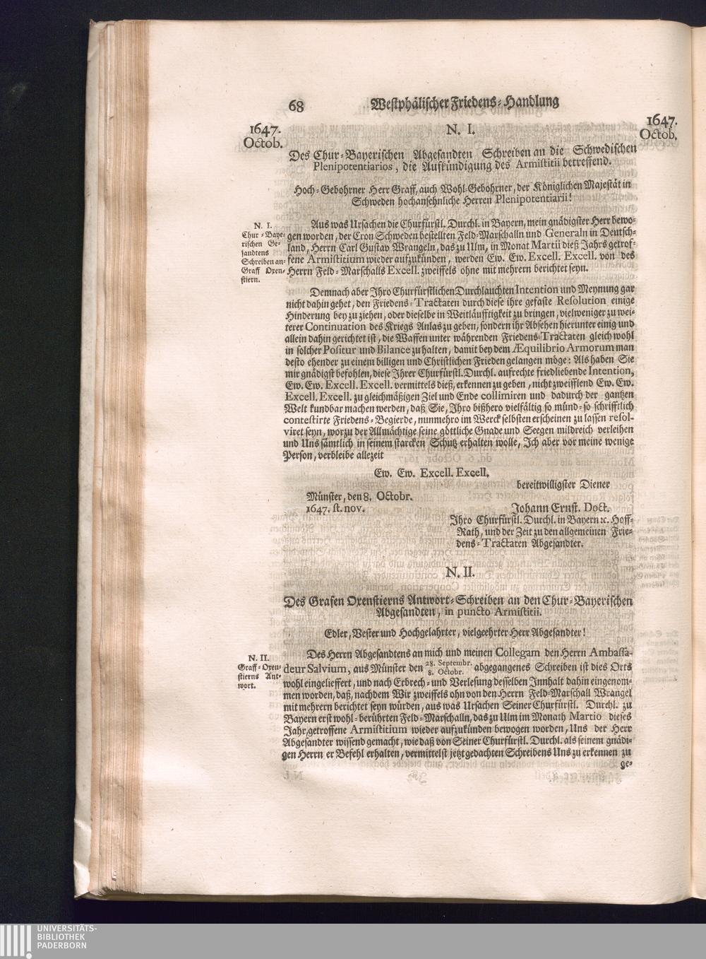 Fünffter Theil (1735) Worinnen enthalten, was vom Schluß des Jahrs 1647. biß in den Monath Junium des Jahrs 1648. zwischen Jhro Römisch-Kayserlichen Majestät, dann den Beyden Cronen Franckreich und Schweden, ingleichen des Heiligen Römischen Reichs Chur-Fürsten, Fürsten und Ständen, zu Oßnabrück und Münster gehandelt worden