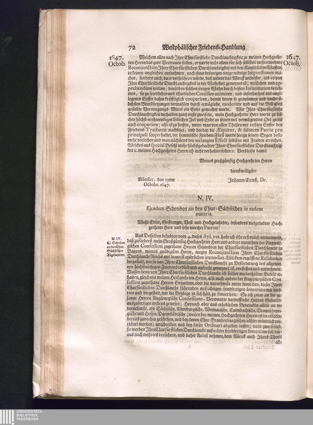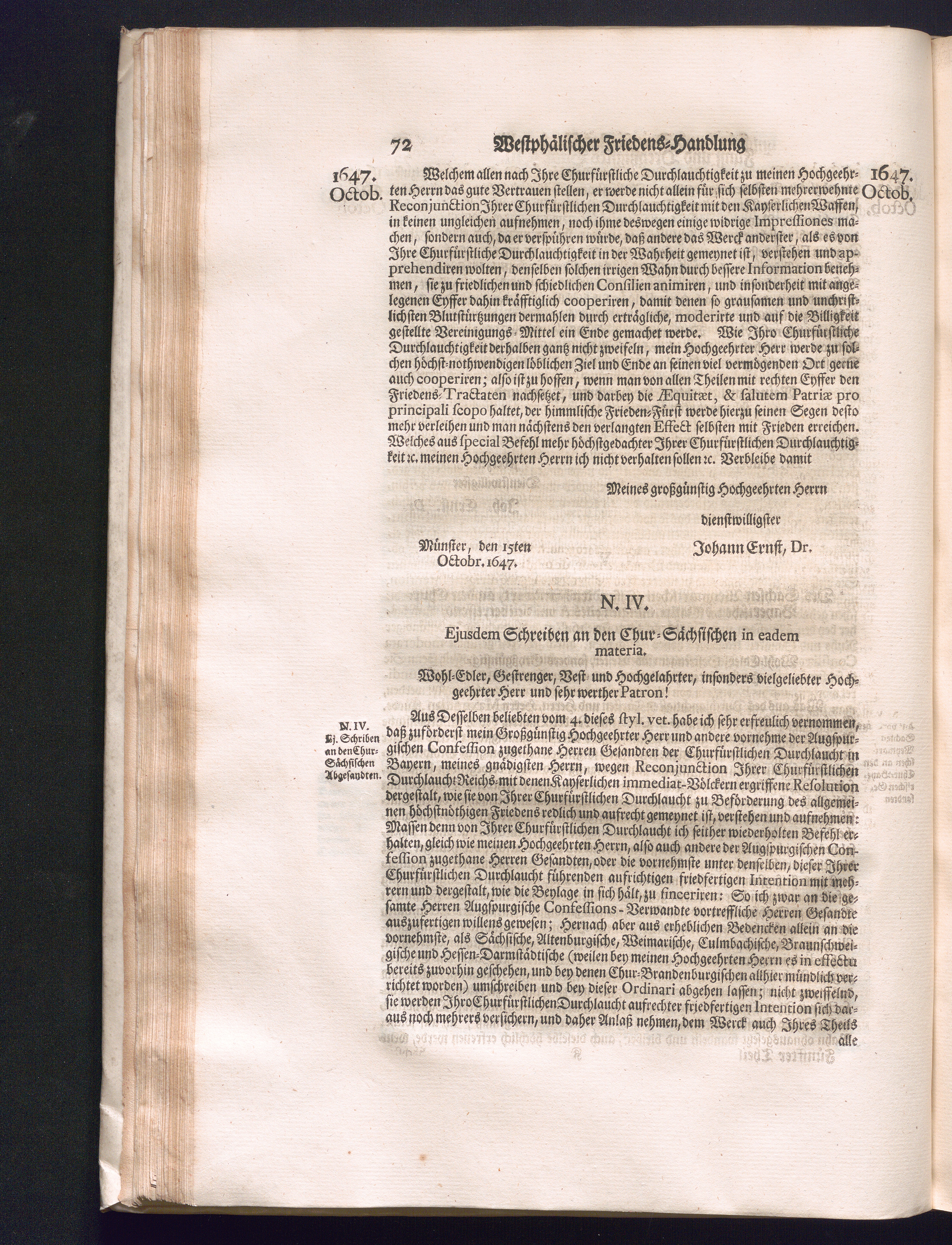 Fünffter Theil (1735) Worinnen enthalten, was vom Schluß des Jahrs 1647. biß in den Monath Junium des Jahrs 1648. zwischen Jhro Römisch-Kayserlichen Majestät, dann den Beyden Cronen Franckreich und Schweden, ingleichen des Heiligen Römischen Reichs Chur-Fürsten, Fürsten und Ständen, zu Oßnabrück und Münster gehandelt worden