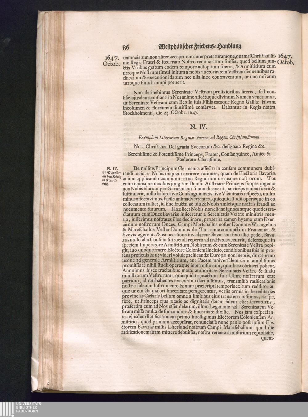 Fünffter Theil (1735) Worinnen enthalten, was vom Schluß des Jahrs 1647. biß in den Monath Junium des Jahrs 1648. zwischen Jhro Römisch-Kayserlichen Majestät, dann den Beyden Cronen Franckreich und Schweden, ingleichen des Heiligen Römischen Reichs Chur-Fürsten, Fürsten und Ständen, zu Oßnabrück und Münster gehandelt worden