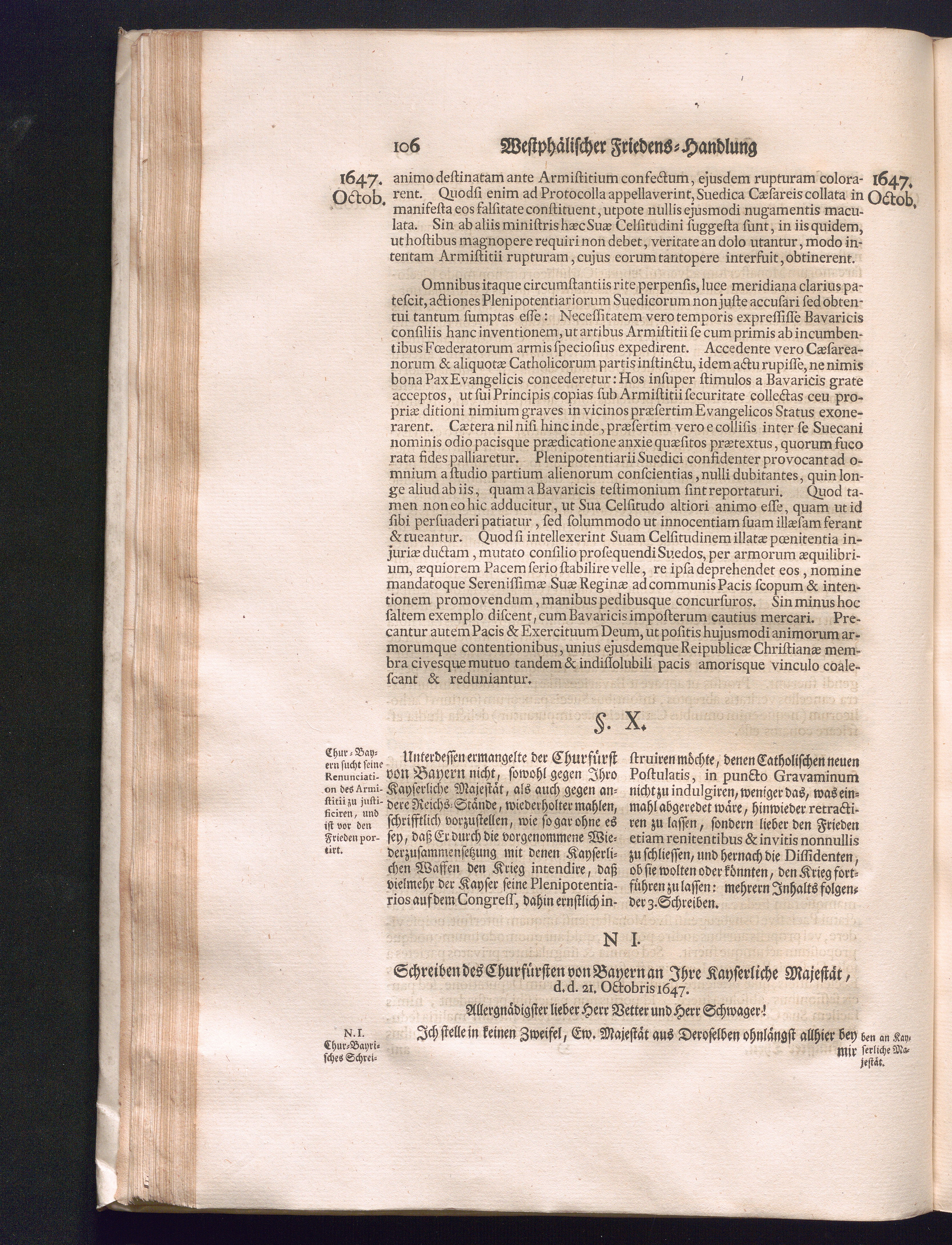 Fünffter Theil (1735) Worinnen enthalten, was vom Schluß des Jahrs 1647. biß in den Monath Junium des Jahrs 1648. zwischen Jhro Römisch-Kayserlichen Majestät, dann den Beyden Cronen Franckreich und Schweden, ingleichen des Heiligen Römischen Reichs Chur-Fürsten, Fürsten und Ständen, zu Oßnabrück und Münster gehandelt worden