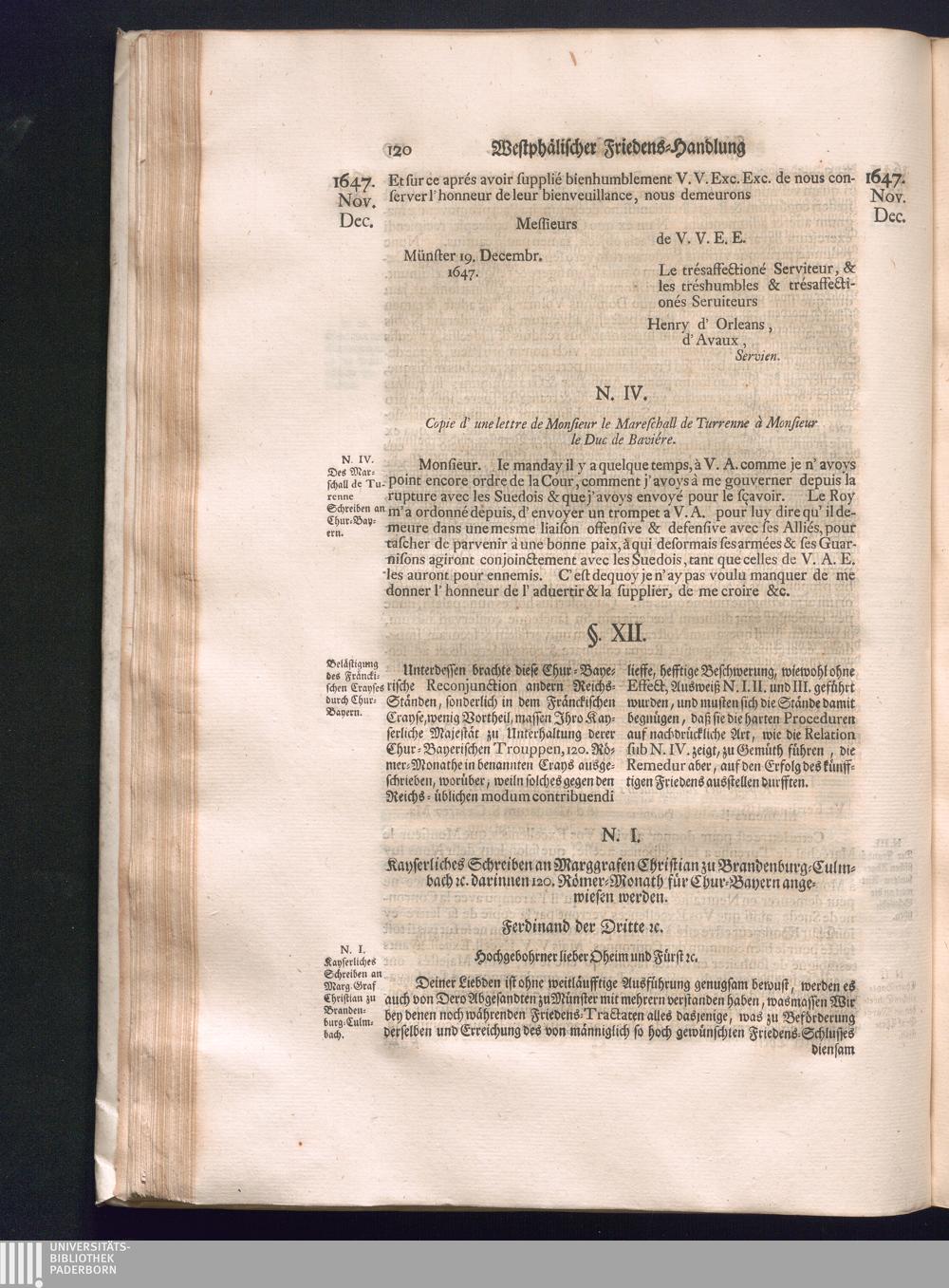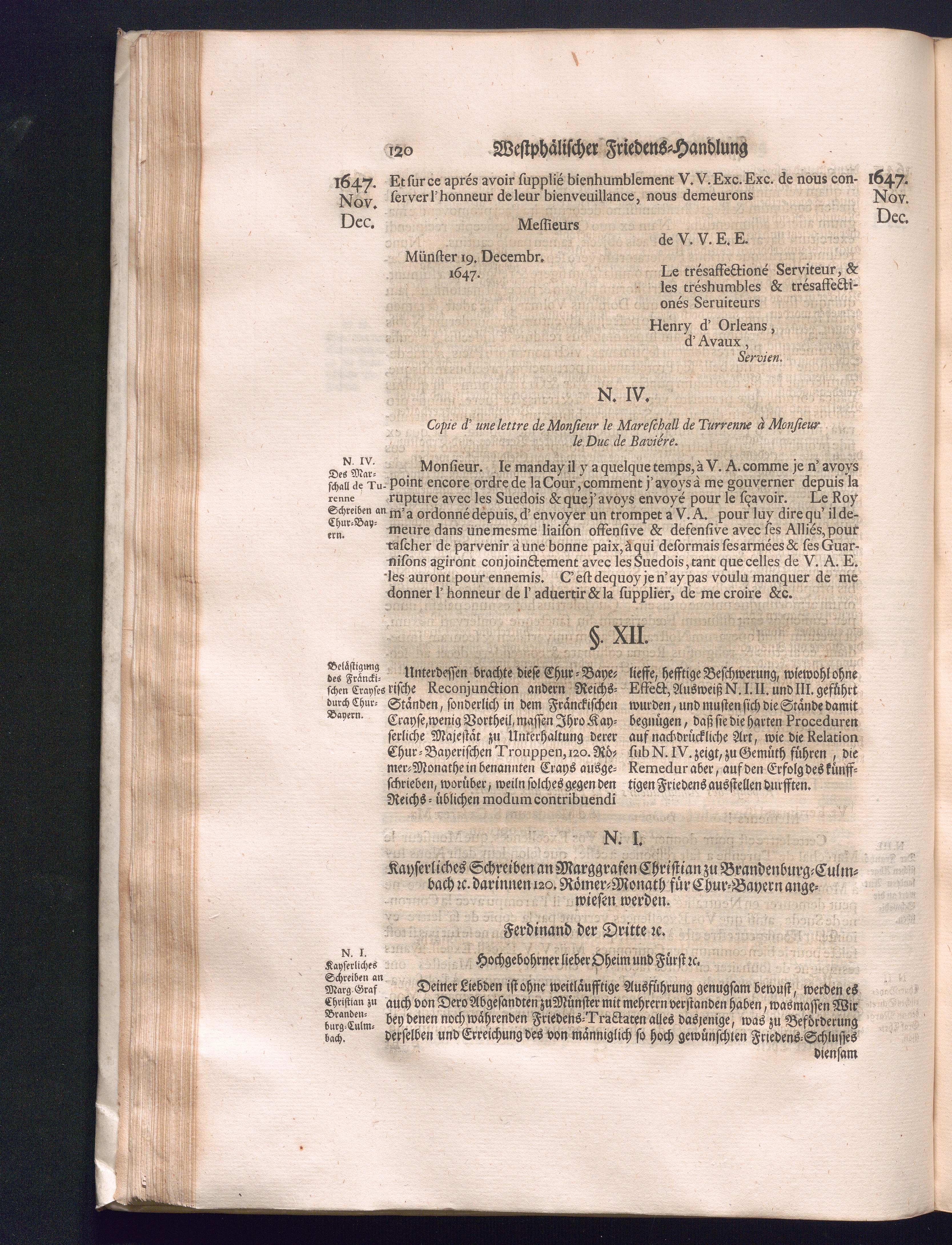 Fünffter Theil (1735) Worinnen enthalten, was vom Schluß des Jahrs 1647. biß in den Monath Junium des Jahrs 1648. zwischen Jhro Römisch-Kayserlichen Majestät, dann den Beyden Cronen Franckreich und Schweden, ingleichen des Heiligen Römischen Reichs Chur-Fürsten, Fürsten und Ständen, zu Oßnabrück und Münster gehandelt worden
