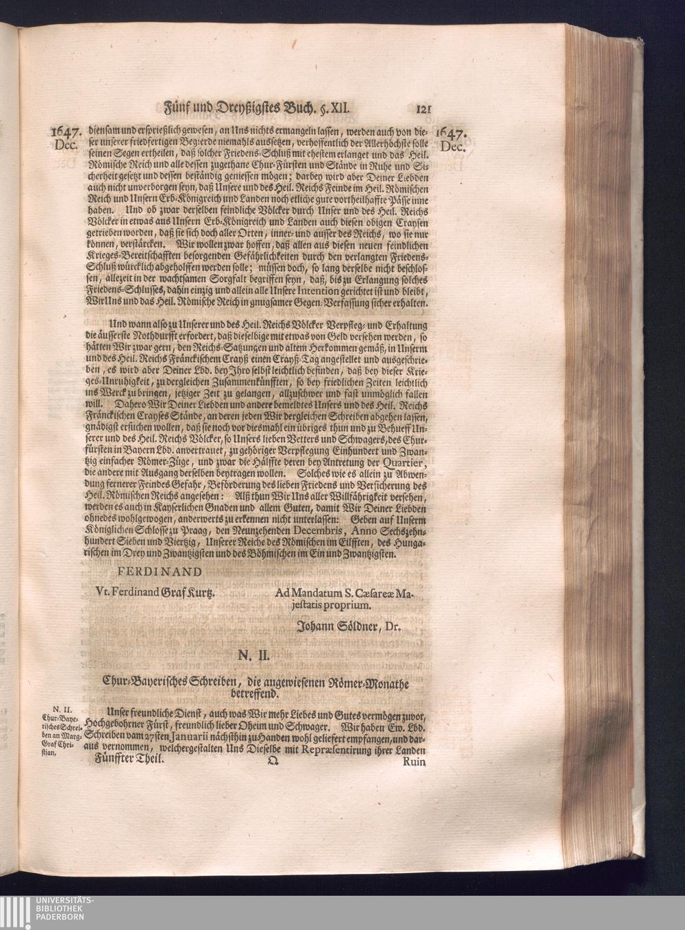 Fünffter Theil (1735) Worinnen enthalten, was vom Schluß des Jahrs 1647. biß in den Monath Junium des Jahrs 1648. zwischen Jhro Römisch-Kayserlichen Majestät, dann den Beyden Cronen Franckreich und Schweden, ingleichen des Heiligen Römischen Reichs Chur-Fürsten, Fürsten und Ständen, zu Oßnabrück und Münster gehandelt worden