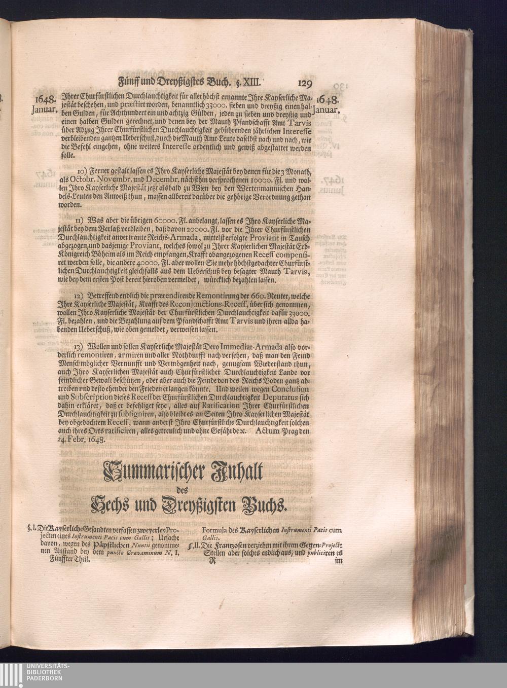 Fünffter Theil (1735) Worinnen enthalten, was vom Schluß des Jahrs 1647. biß in den Monath Junium des Jahrs 1648. zwischen Jhro Römisch-Kayserlichen Majestät, dann den Beyden Cronen Franckreich und Schweden, ingleichen des Heiligen Römischen Reichs Chur-Fürsten, Fürsten und Ständen, zu Oßnabrück und Münster gehandelt worden