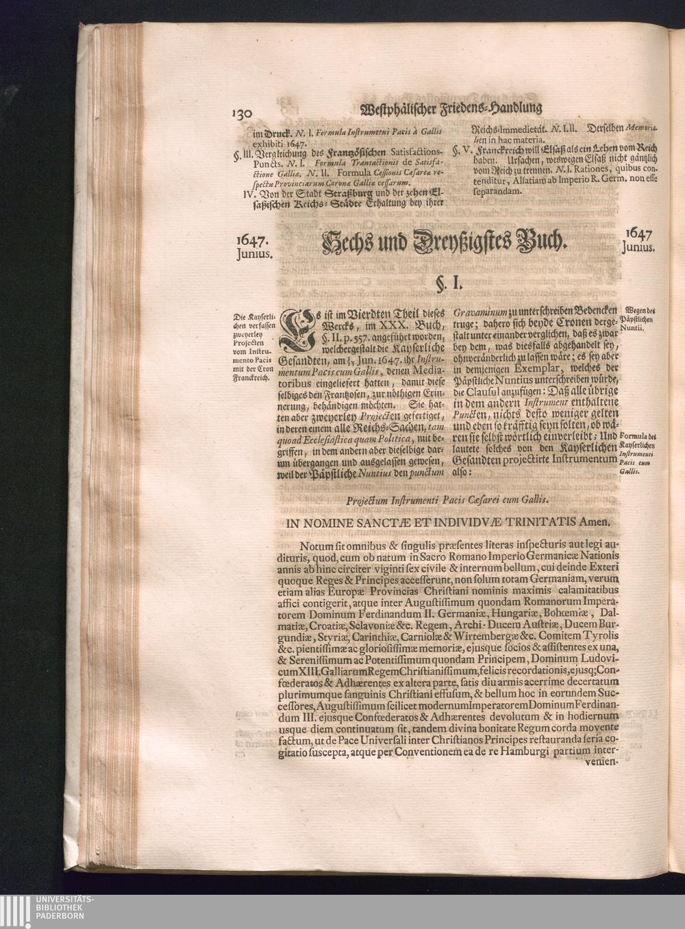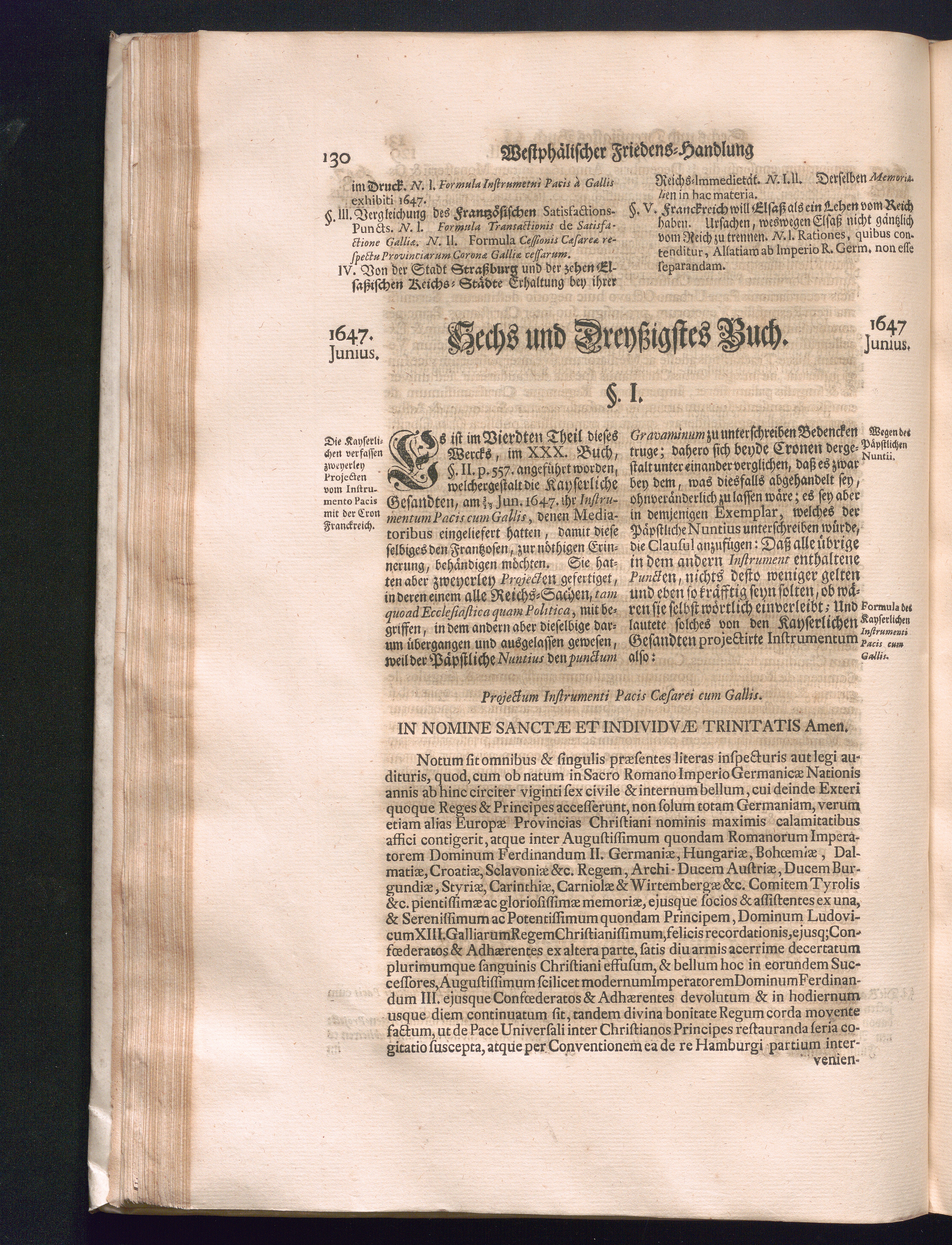 Fünffter Theil (1735) Worinnen enthalten, was vom Schluß des Jahrs 1647. biß in den Monath Junium des Jahrs 1648. zwischen Jhro Römisch-Kayserlichen Majestät, dann den Beyden Cronen Franckreich und Schweden, ingleichen des Heiligen Römischen Reichs Chur-Fürsten, Fürsten und Ständen, zu Oßnabrück und Münster gehandelt worden