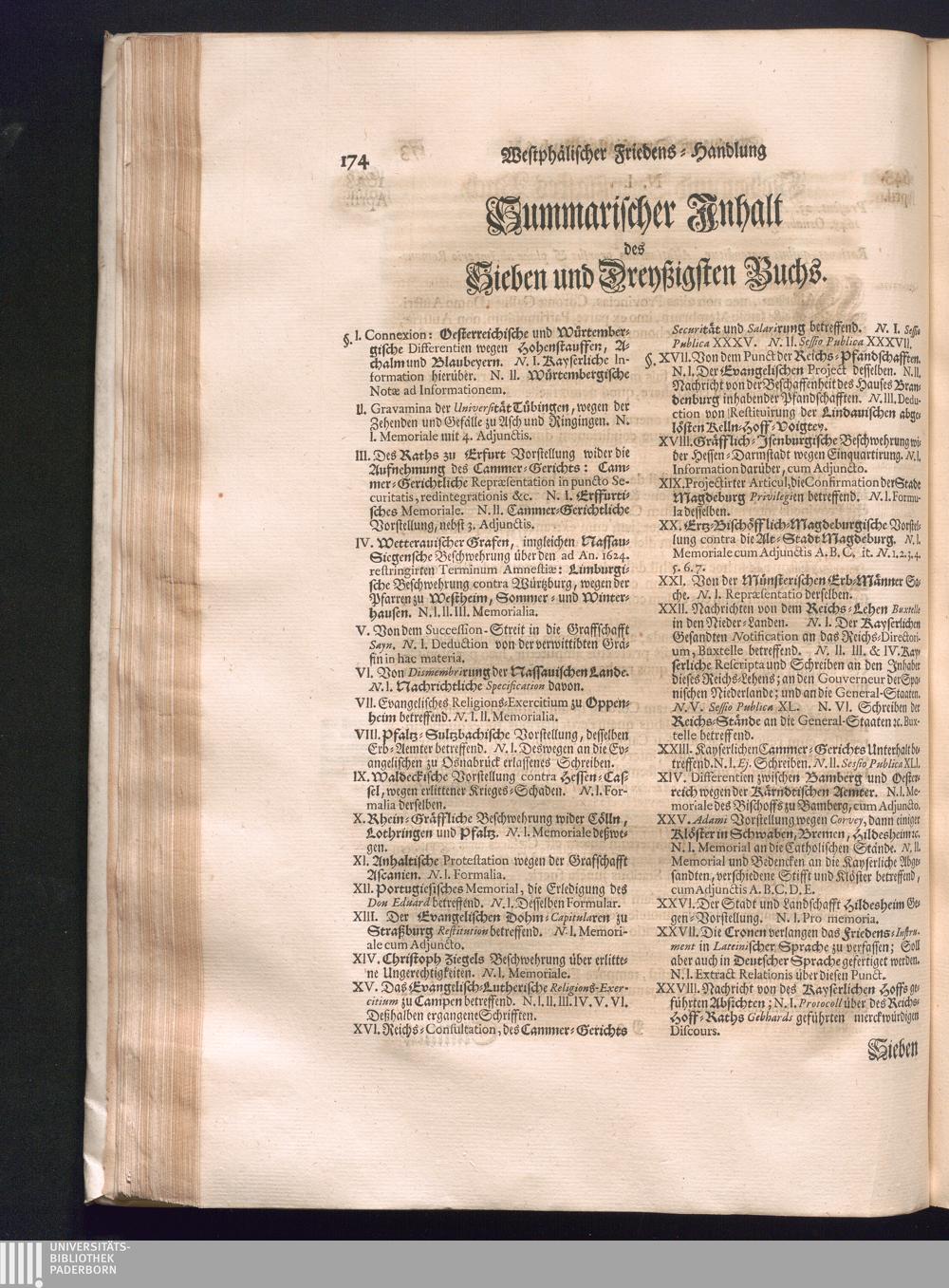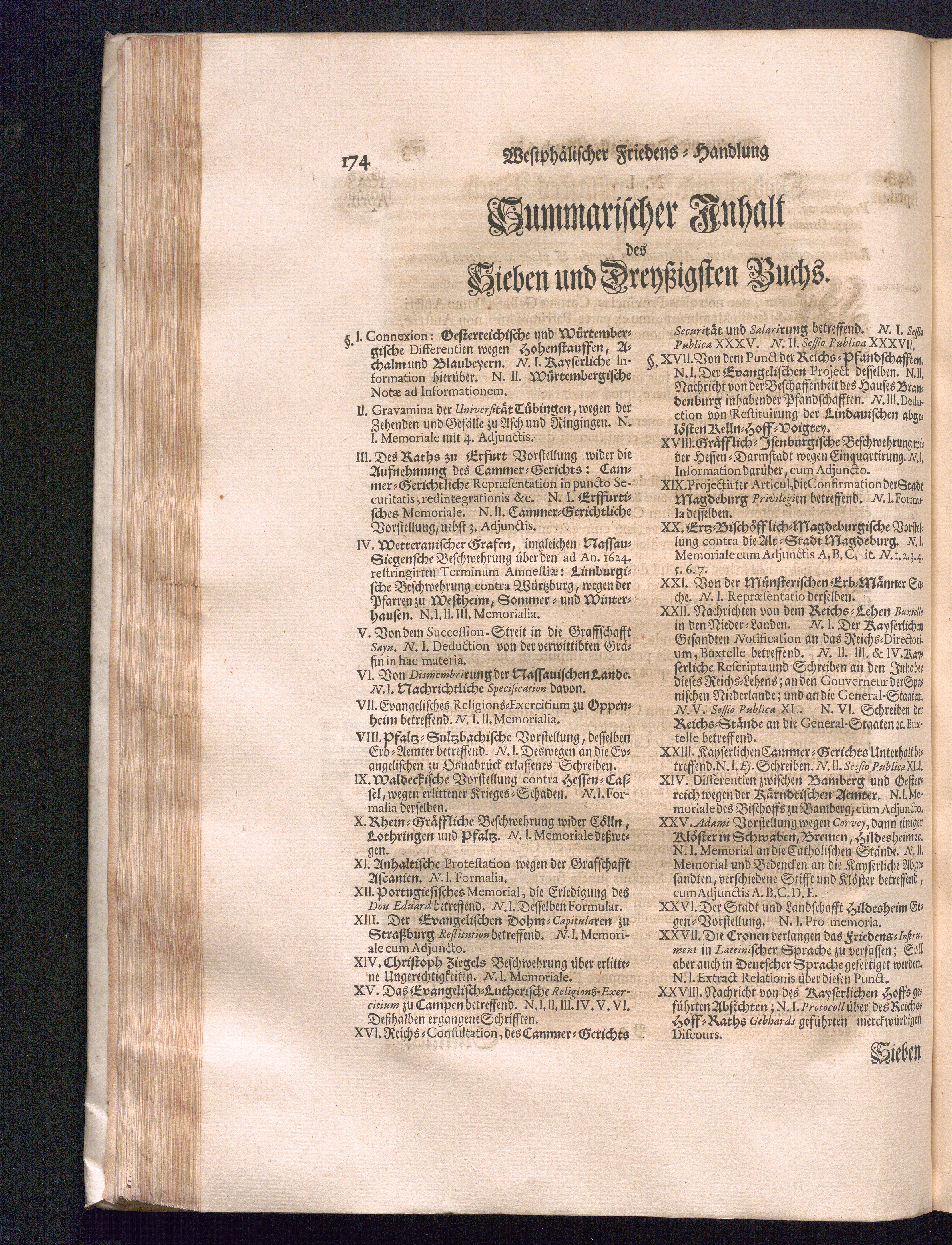 Fünffter Theil (1735) Worinnen enthalten, was vom Schluß des Jahrs 1647. biß in den Monath Junium des Jahrs 1648. zwischen Jhro Römisch-Kayserlichen Majestät, dann den Beyden Cronen Franckreich und Schweden, ingleichen des Heiligen Römischen Reichs Chur-Fürsten, Fürsten und Ständen, zu Oßnabrück und Münster gehandelt worden