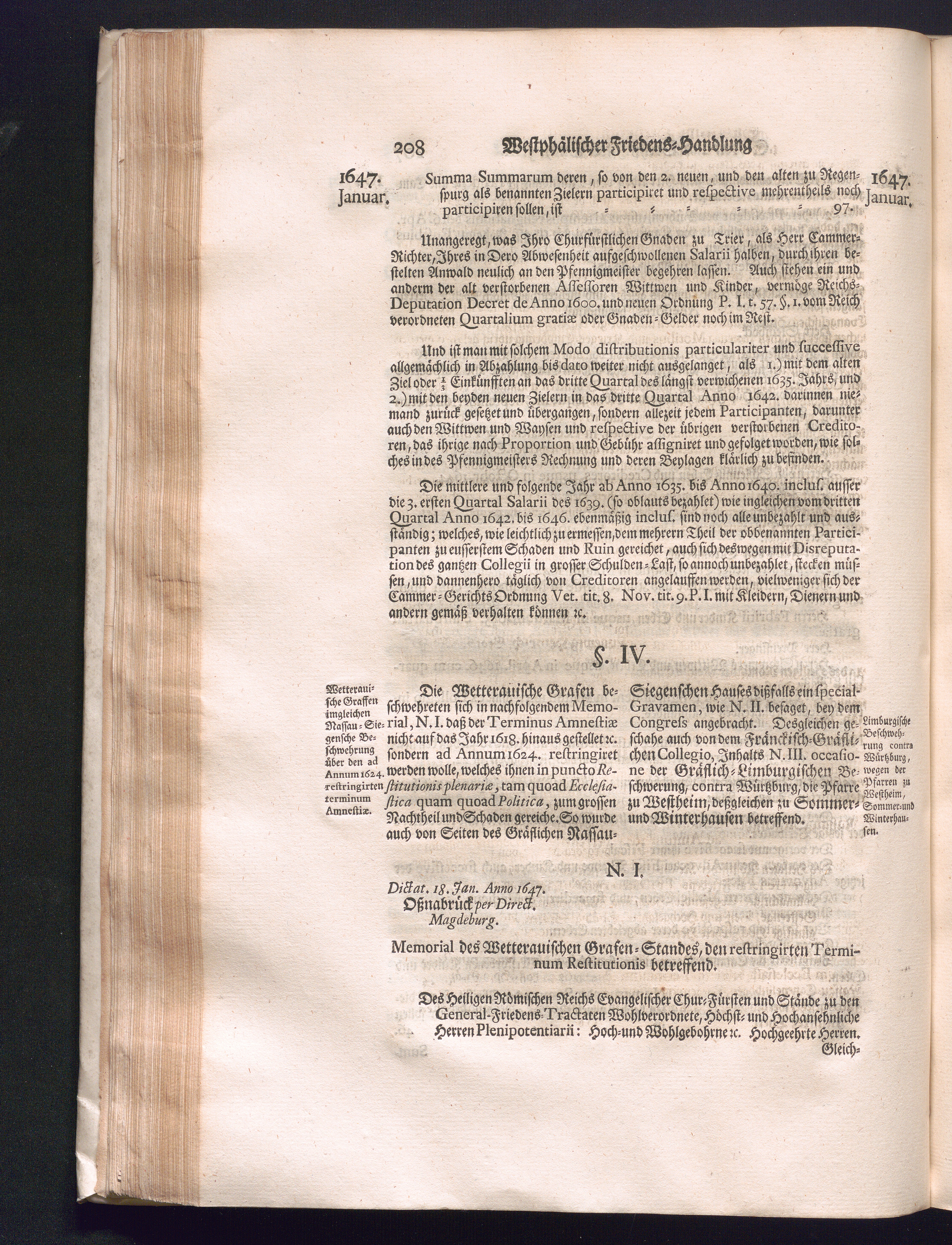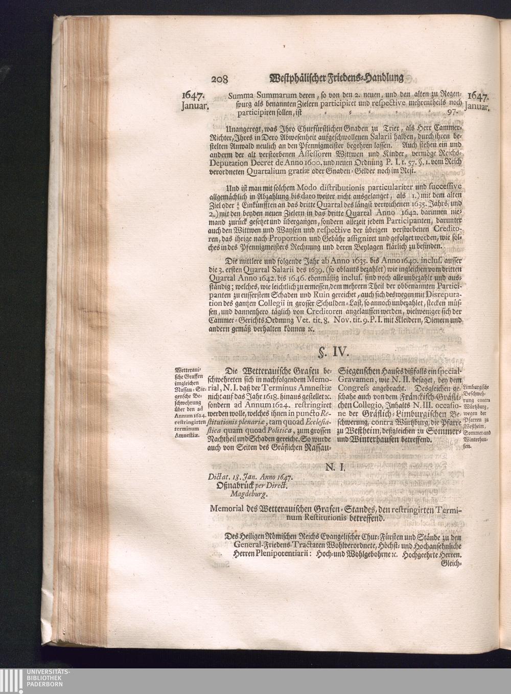 Fünffter Theil (1735) Worinnen enthalten, was vom Schluß des Jahrs 1647. biß in den Monath Junium des Jahrs 1648. zwischen Jhro Römisch-Kayserlichen Majestät, dann den Beyden Cronen Franckreich und Schweden, ingleichen des Heiligen Römischen Reichs Chur-Fürsten, Fürsten und Ständen, zu Oßnabrück und Münster gehandelt worden