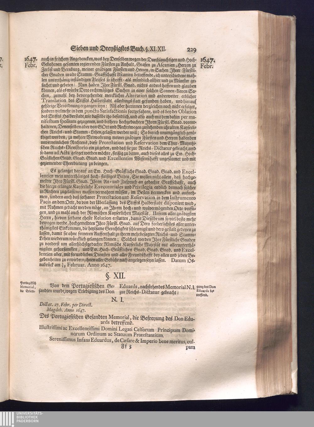 Fünffter Theil (1735) Worinnen enthalten, was vom Schluß des Jahrs 1647. biß in den Monath Junium des Jahrs 1648. zwischen Jhro Römisch-Kayserlichen Majestät, dann den Beyden Cronen Franckreich und Schweden, ingleichen des Heiligen Römischen Reichs Chur-Fürsten, Fürsten und Ständen, zu Oßnabrück und Münster gehandelt worden