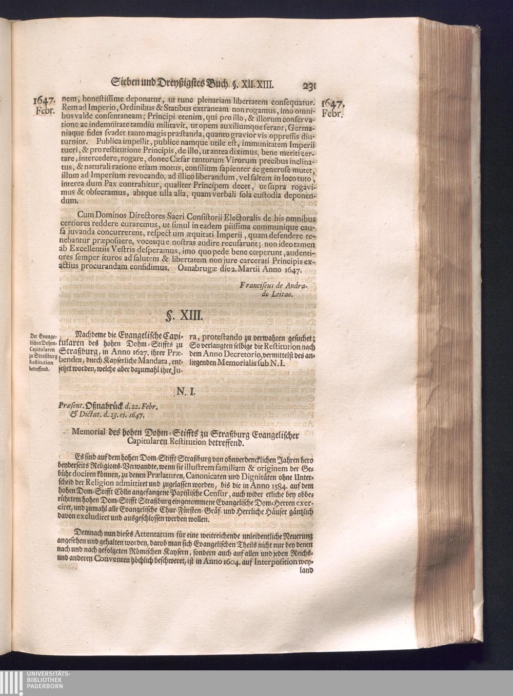 Fünffter Theil (1735) Worinnen enthalten, was vom Schluß des Jahrs 1647. biß in den Monath Junium des Jahrs 1648. zwischen Jhro Römisch-Kayserlichen Majestät, dann den Beyden Cronen Franckreich und Schweden, ingleichen des Heiligen Römischen Reichs Chur-Fürsten, Fürsten und Ständen, zu Oßnabrück und Münster gehandelt worden