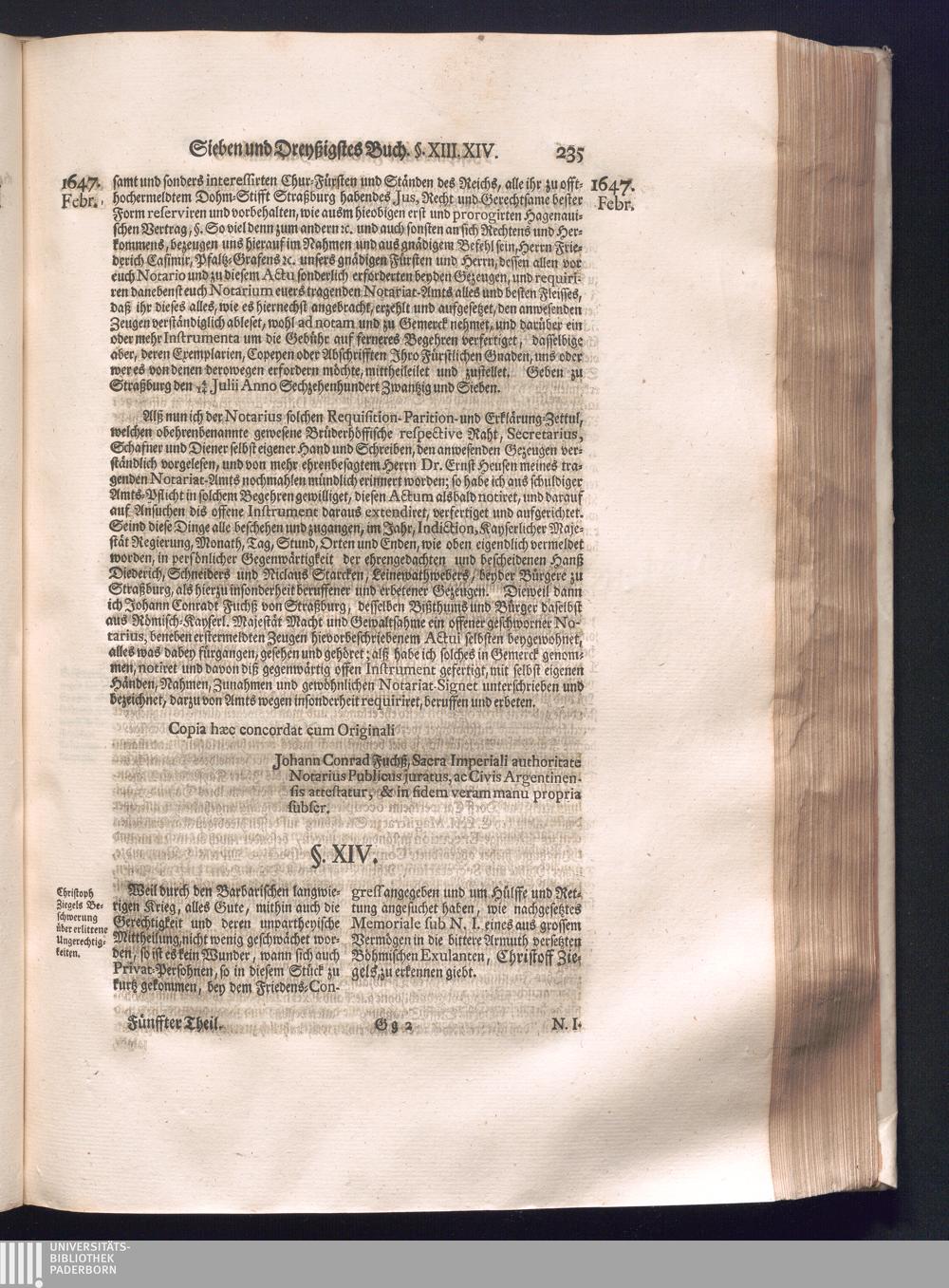 Fünffter Theil (1735) Worinnen enthalten, was vom Schluß des Jahrs 1647. biß in den Monath Junium des Jahrs 1648. zwischen Jhro Römisch-Kayserlichen Majestät, dann den Beyden Cronen Franckreich und Schweden, ingleichen des Heiligen Römischen Reichs Chur-Fürsten, Fürsten und Ständen, zu Oßnabrück und Münster gehandelt worden