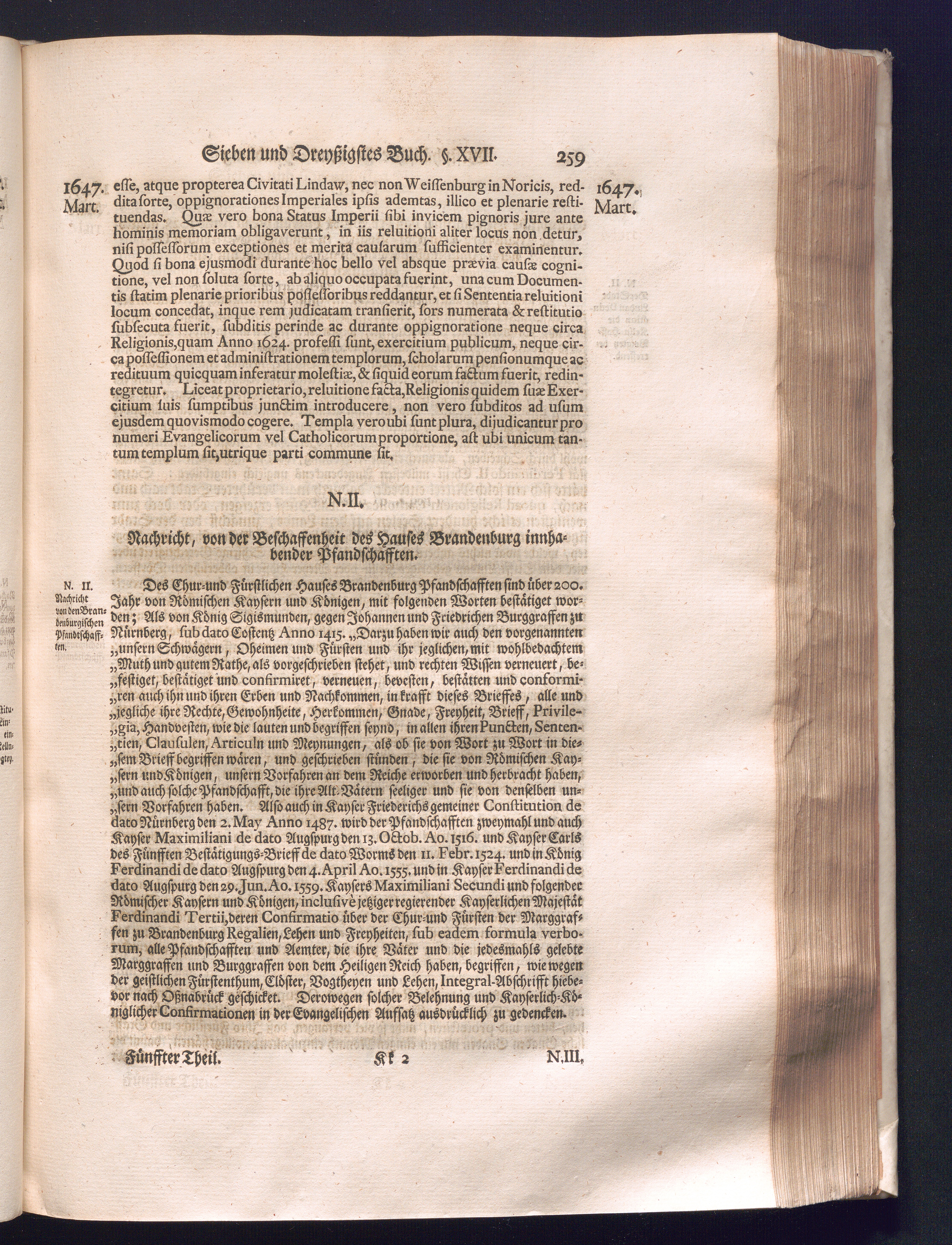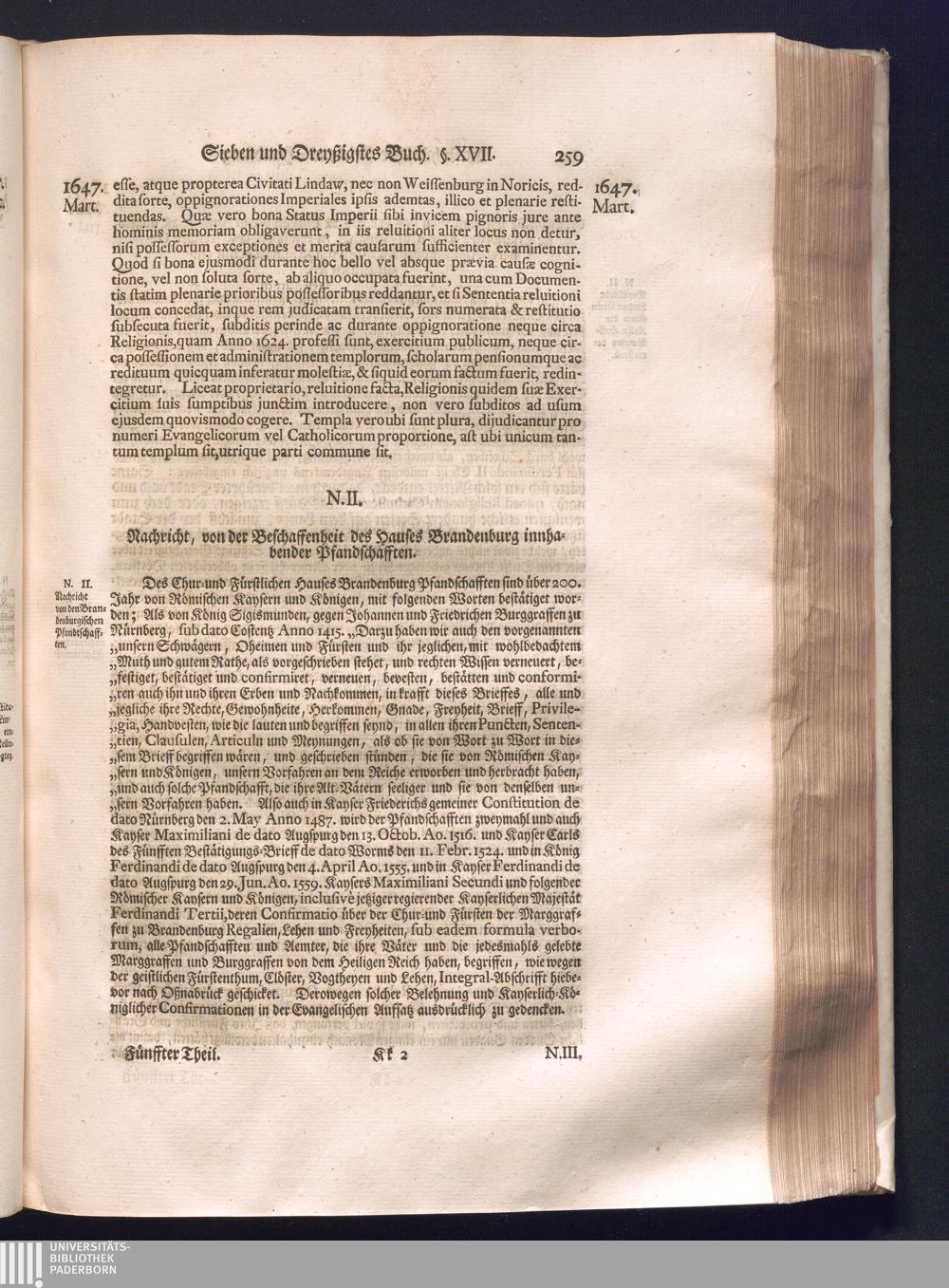Fünffter Theil (1735) Worinnen enthalten, was vom Schluß des Jahrs 1647. biß in den Monath Junium des Jahrs 1648. zwischen Jhro Römisch-Kayserlichen Majestät, dann den Beyden Cronen Franckreich und Schweden, ingleichen des Heiligen Römischen Reichs Chur-Fürsten, Fürsten und Ständen, zu Oßnabrück und Münster gehandelt worden