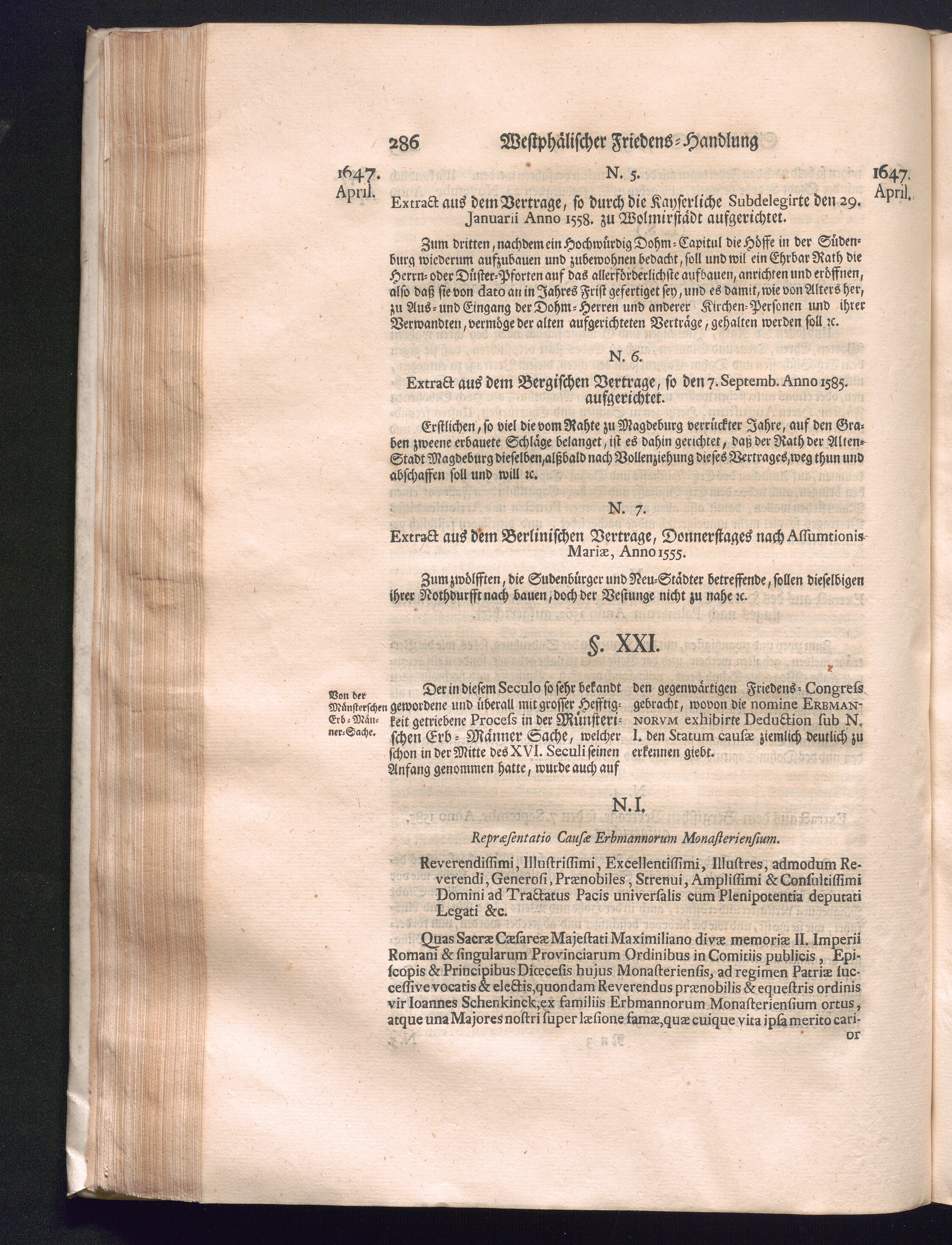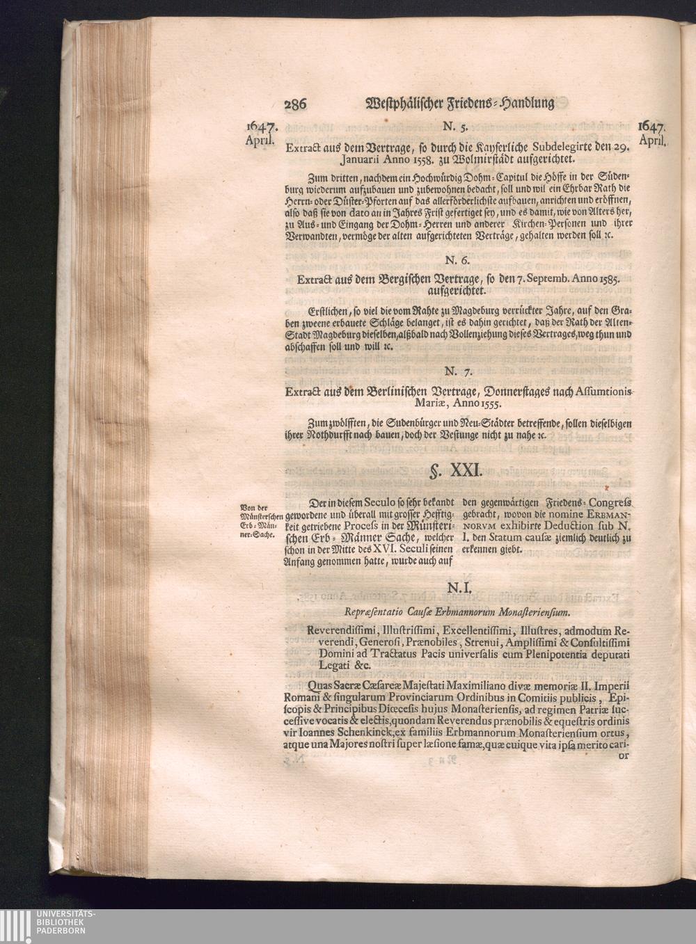 Fünffter Theil (1735) Worinnen enthalten, was vom Schluß des Jahrs 1647. biß in den Monath Junium des Jahrs 1648. zwischen Jhro Römisch-Kayserlichen Majestät, dann den Beyden Cronen Franckreich und Schweden, ingleichen des Heiligen Römischen Reichs Chur-Fürsten, Fürsten und Ständen, zu Oßnabrück und Münster gehandelt worden