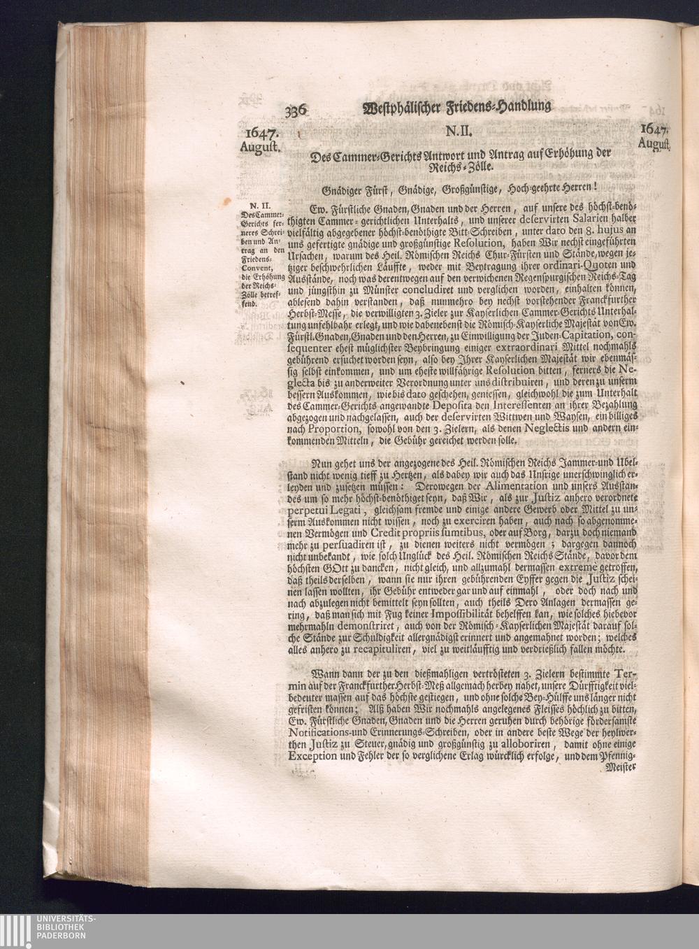 Fünffter Theil (1735) Worinnen enthalten, was vom Schluß des Jahrs 1647. biß in den Monath Junium des Jahrs 1648. zwischen Jhro Römisch-Kayserlichen Majestät, dann den Beyden Cronen Franckreich und Schweden, ingleichen des Heiligen Römischen Reichs Chur-Fürsten, Fürsten und Ständen, zu Oßnabrück und Münster gehandelt worden