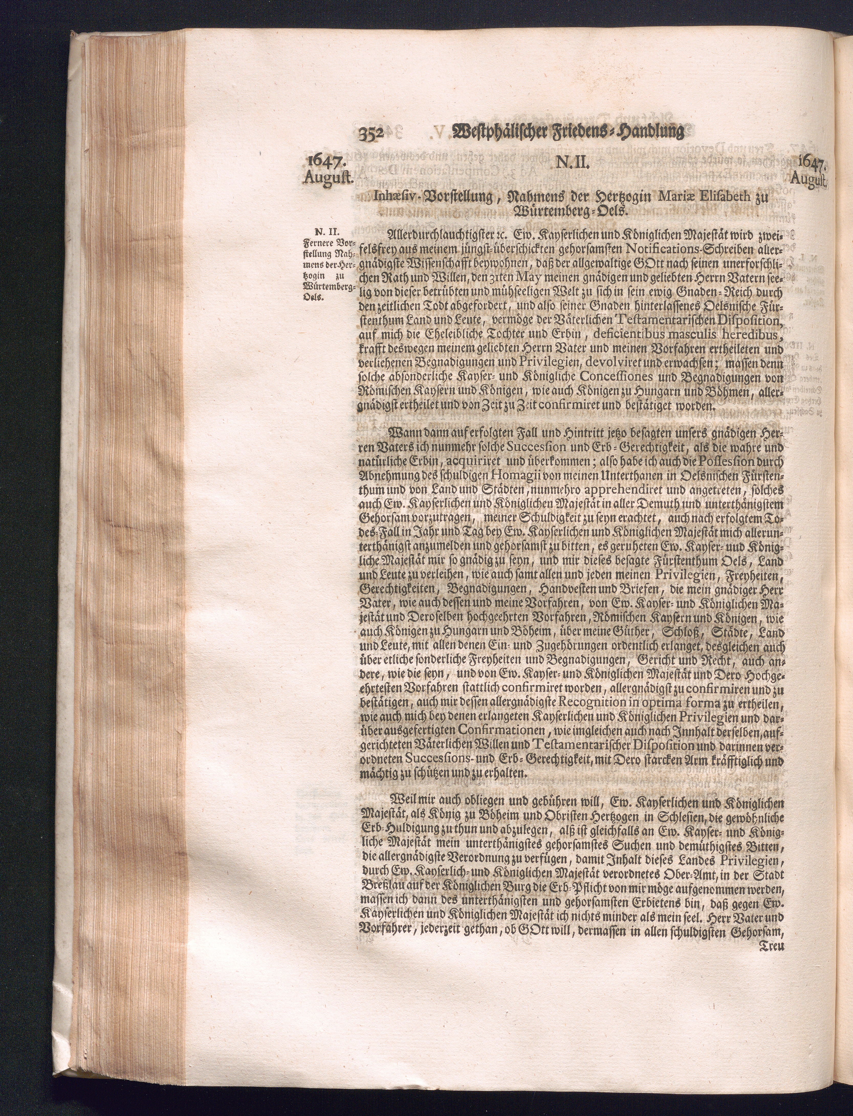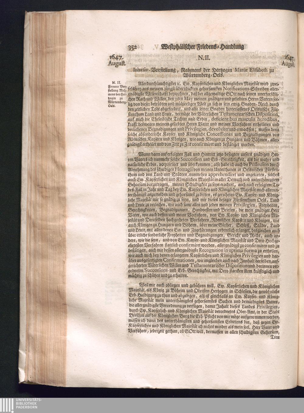 Fünffter Theil (1735) Worinnen enthalten, was vom Schluß des Jahrs 1647. biß in den Monath Junium des Jahrs 1648. zwischen Jhro Römisch-Kayserlichen Majestät, dann den Beyden Cronen Franckreich und Schweden, ingleichen des Heiligen Römischen Reichs Chur-Fürsten, Fürsten und Ständen, zu Oßnabrück und Münster gehandelt worden