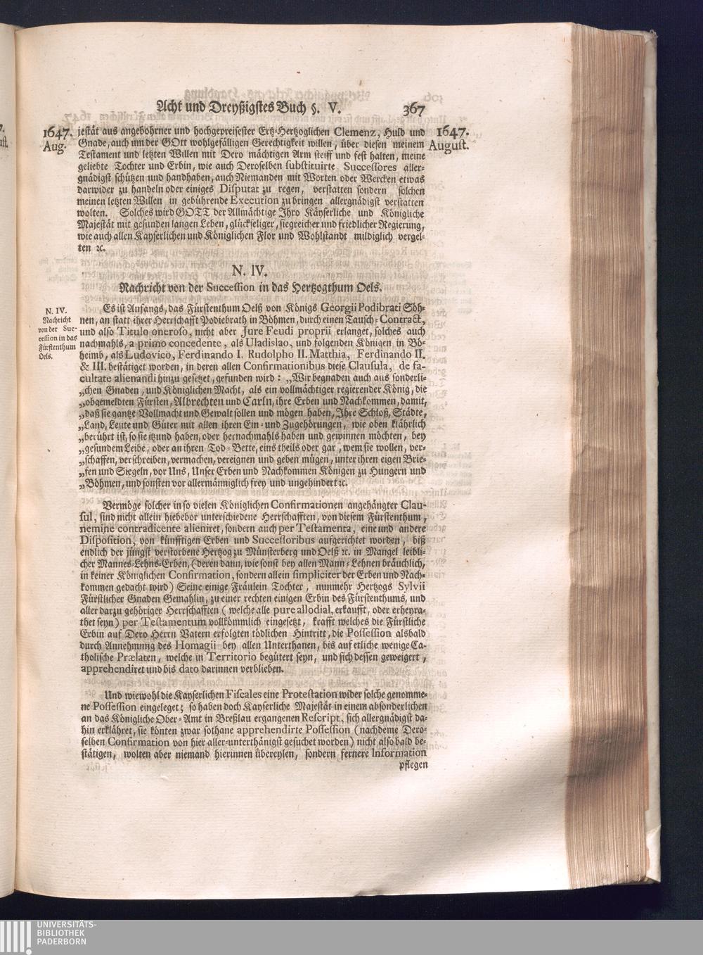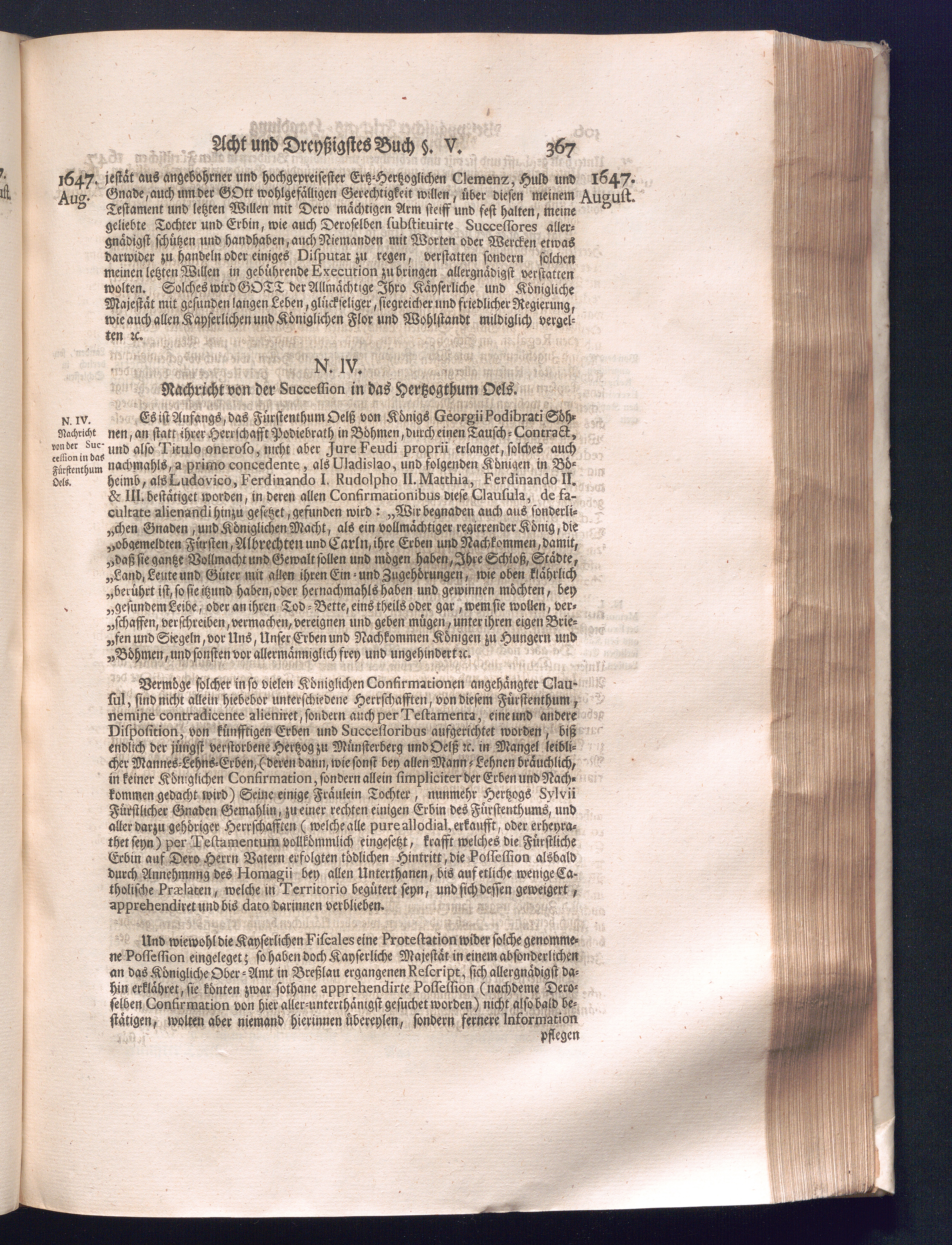 Fünffter Theil (1735) Worinnen enthalten, was vom Schluß des Jahrs 1647. biß in den Monath Junium des Jahrs 1648. zwischen Jhro Römisch-Kayserlichen Majestät, dann den Beyden Cronen Franckreich und Schweden, ingleichen des Heiligen Römischen Reichs Chur-Fürsten, Fürsten und Ständen, zu Oßnabrück und Münster gehandelt worden