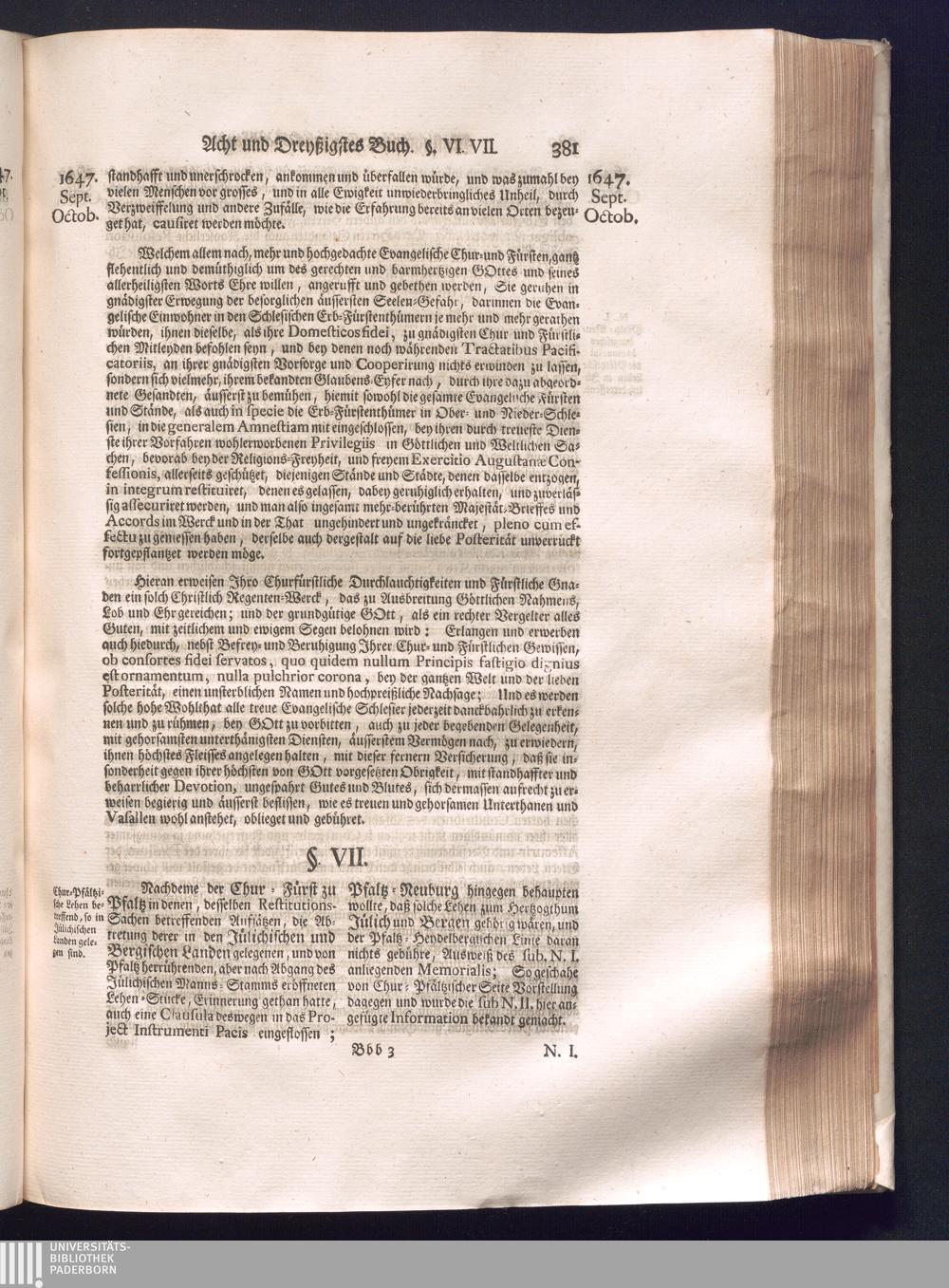 Fünffter Theil (1735) Worinnen enthalten, was vom Schluß des Jahrs 1647. biß in den Monath Junium des Jahrs 1648. zwischen Jhro Römisch-Kayserlichen Majestät, dann den Beyden Cronen Franckreich und Schweden, ingleichen des Heiligen Römischen Reichs Chur-Fürsten, Fürsten und Ständen, zu Oßnabrück und Münster gehandelt worden
