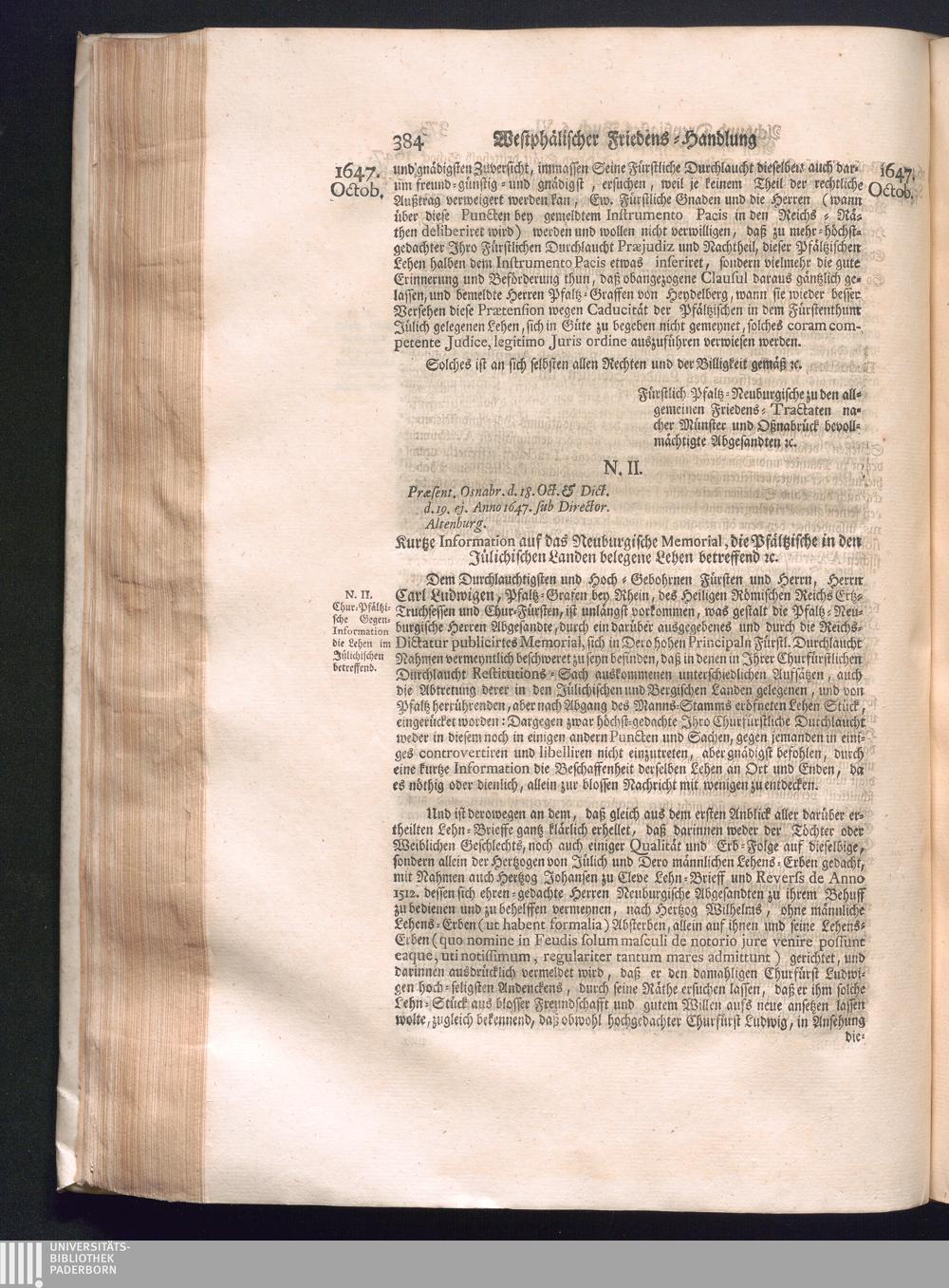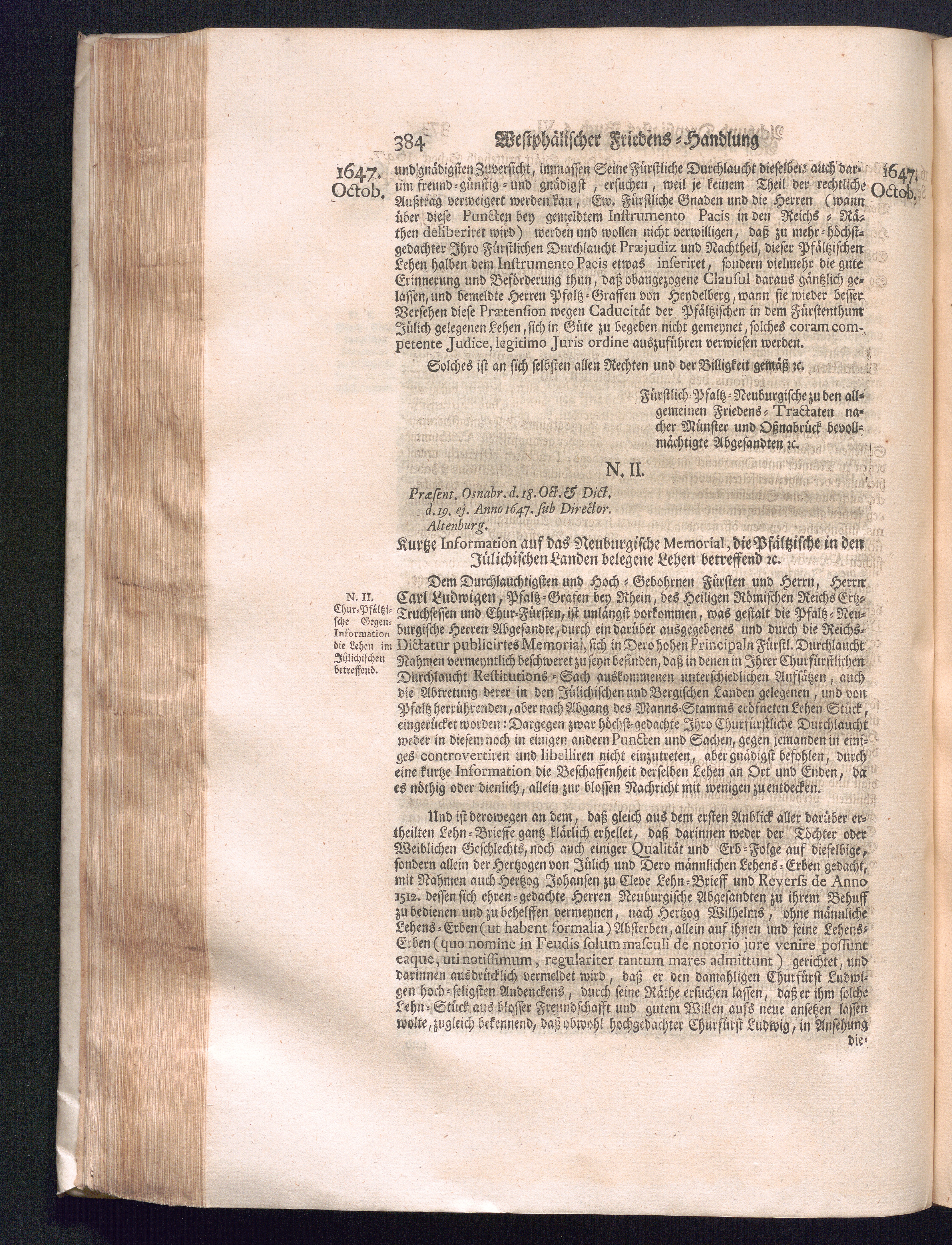 Fünffter Theil (1735) Worinnen enthalten, was vom Schluß des Jahrs 1647. biß in den Monath Junium des Jahrs 1648. zwischen Jhro Römisch-Kayserlichen Majestät, dann den Beyden Cronen Franckreich und Schweden, ingleichen des Heiligen Römischen Reichs Chur-Fürsten, Fürsten und Ständen, zu Oßnabrück und Münster gehandelt worden