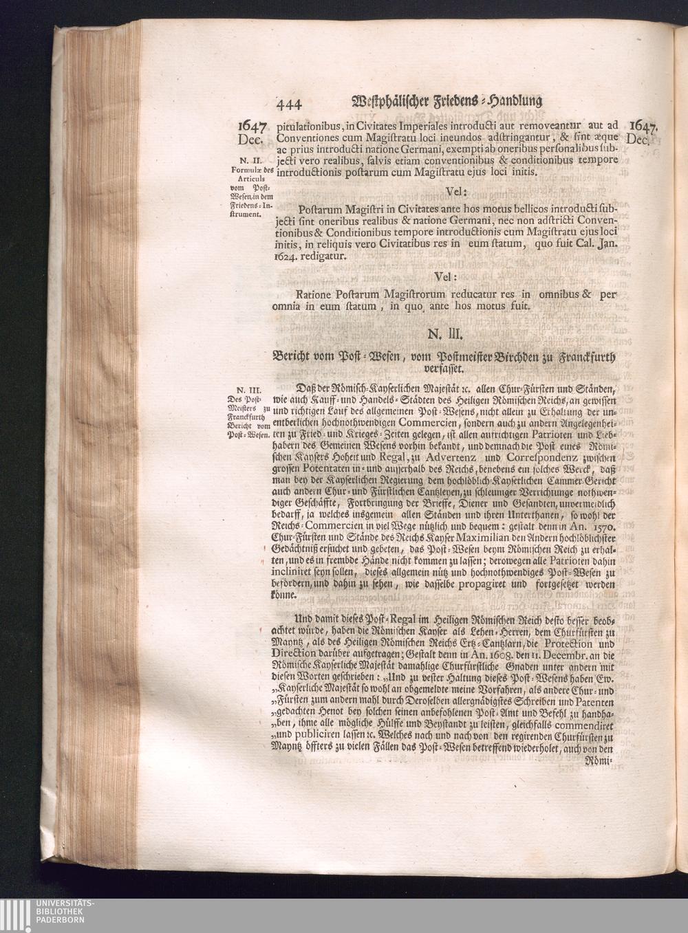Fünffter Theil (1735) Worinnen enthalten, was vom Schluß des Jahrs 1647. biß in den Monath Junium des Jahrs 1648. zwischen Jhro Römisch-Kayserlichen Majestät, dann den Beyden Cronen Franckreich und Schweden, ingleichen des Heiligen Römischen Reichs Chur-Fürsten, Fürsten und Ständen, zu Oßnabrück und Münster gehandelt worden